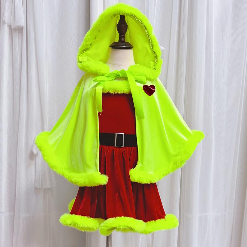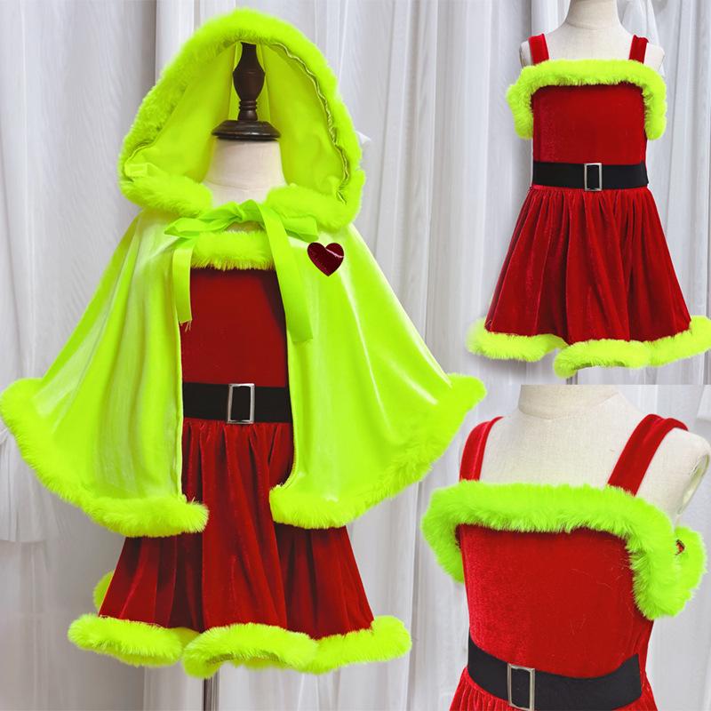 Disfraz infantil de Navidad, cosplay de Grinch, capa de Grinch, vestido de Papá Noel.
