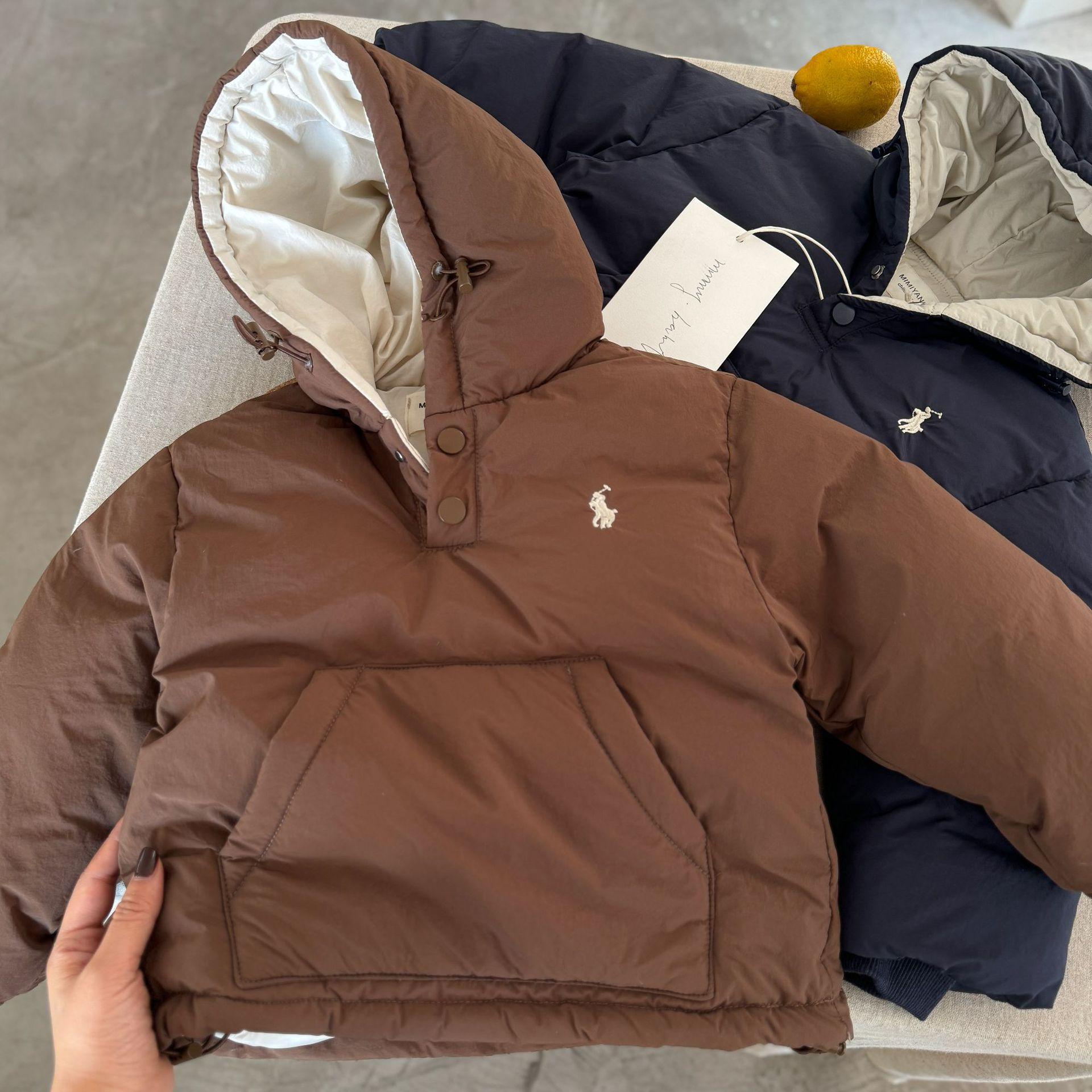 Chaqueta de plumón para niños 2024, nuevo producto de invierno con capucha bordada para niños y niñas.