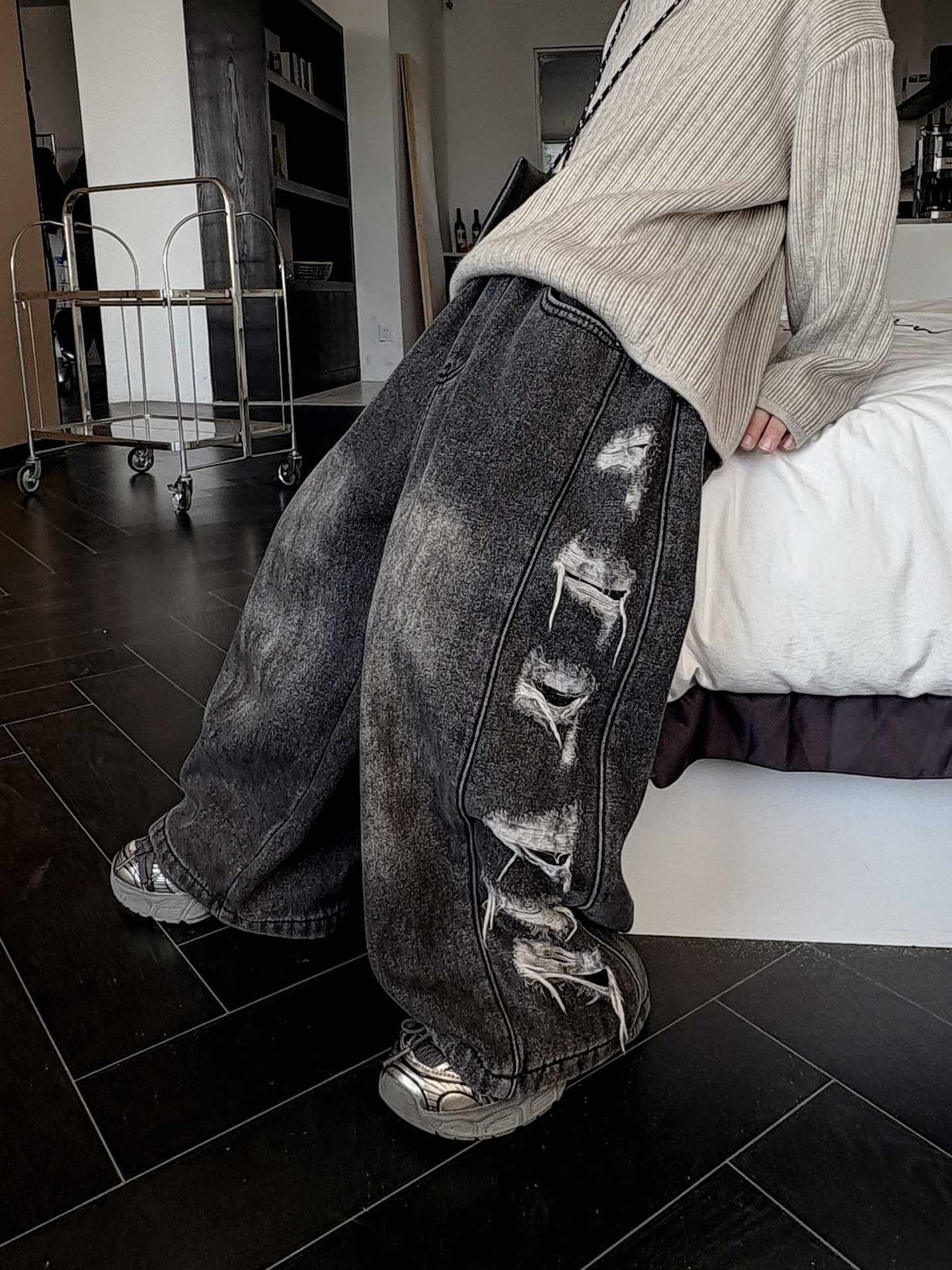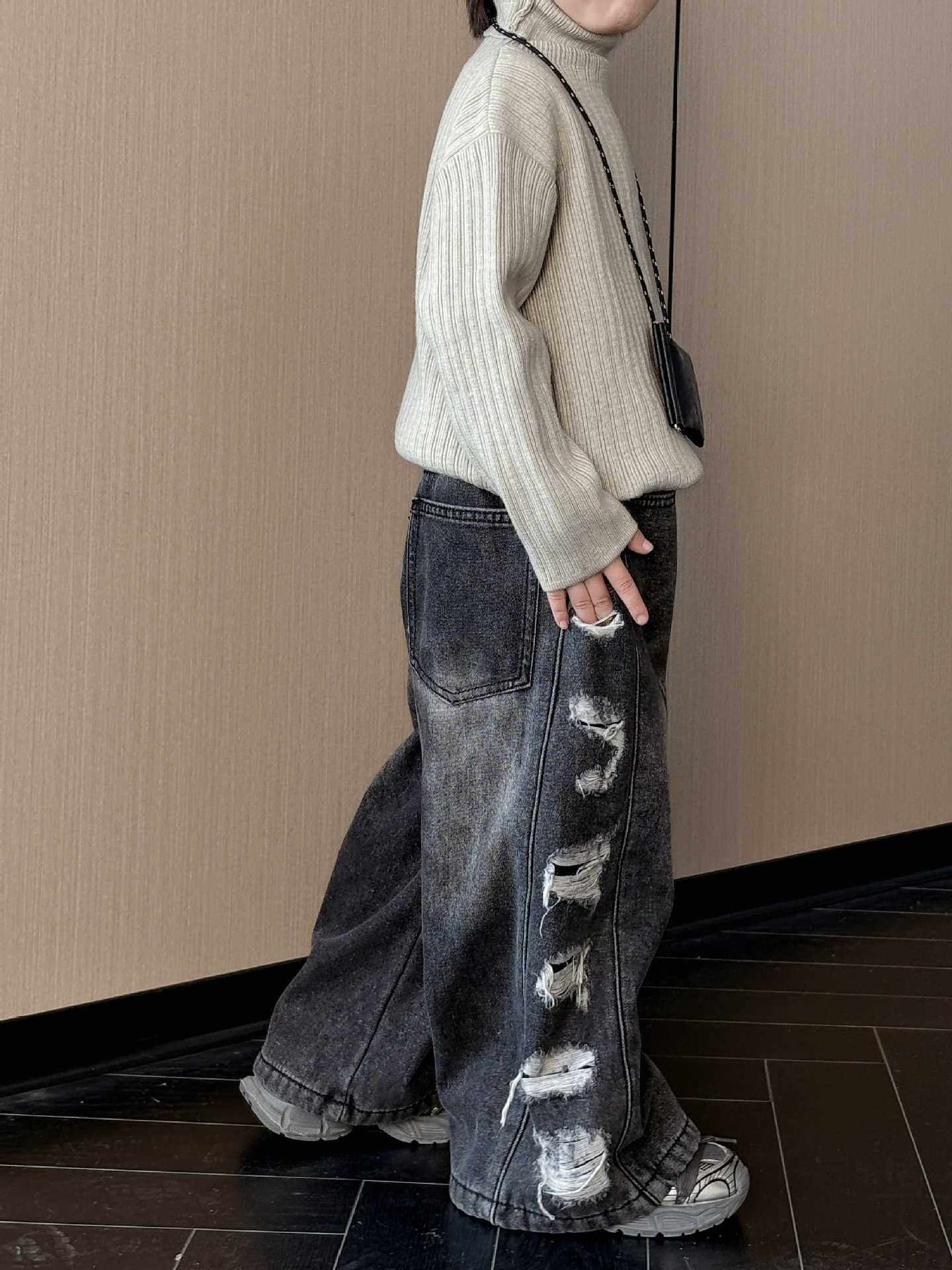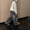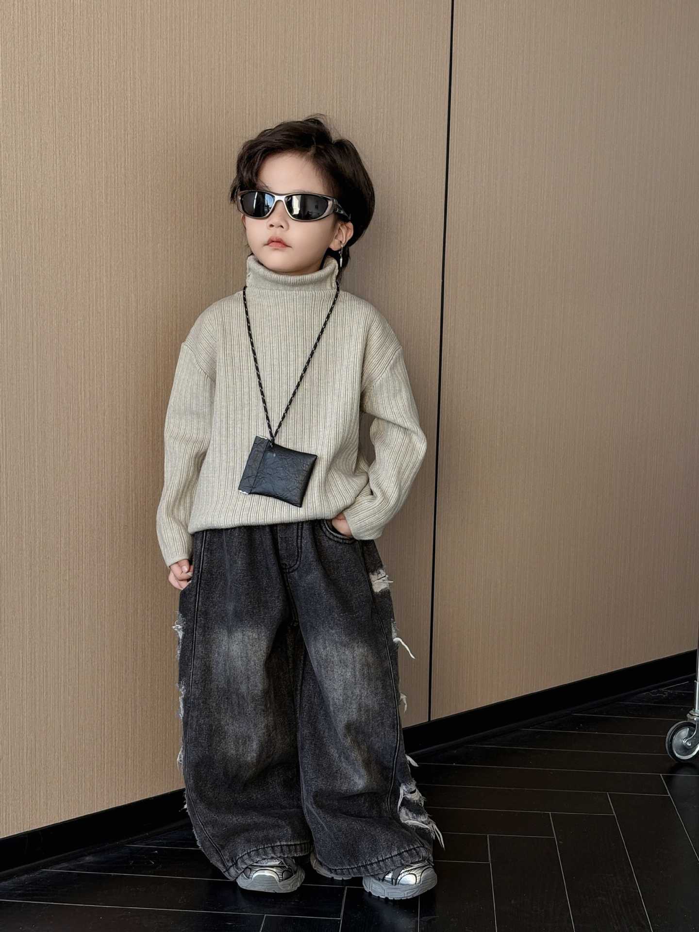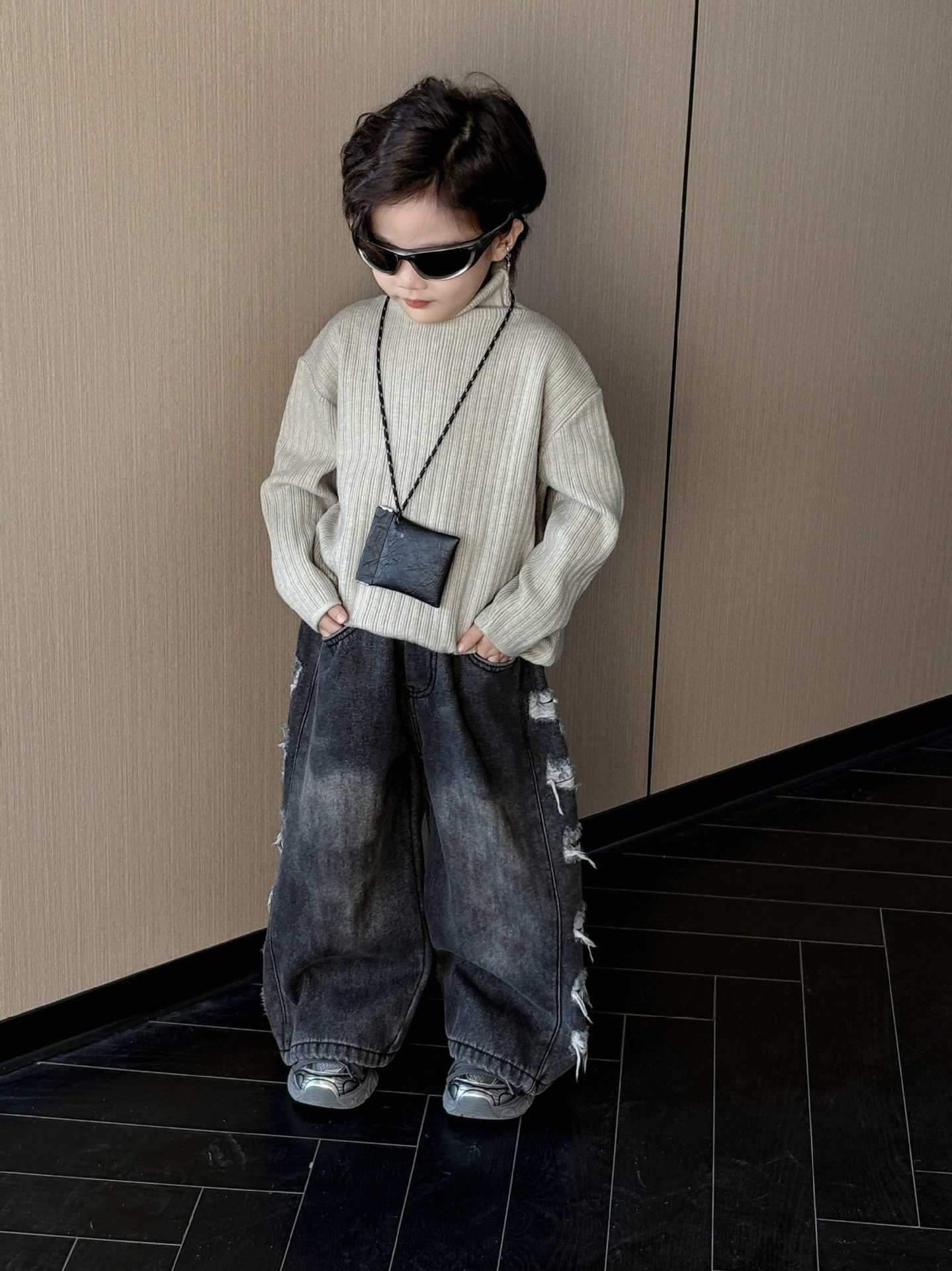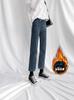Muyang 2024 Invierno Estilo Coreano Niños Vintage Americano Rotos Pierna Recta Forro Polar Jeans Modernos Desgastados