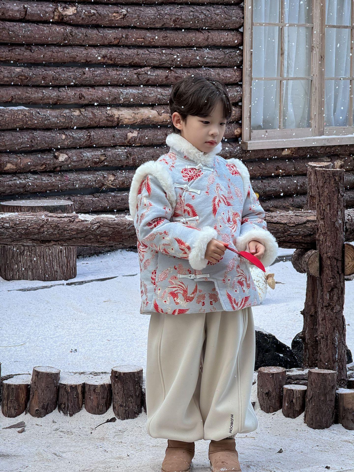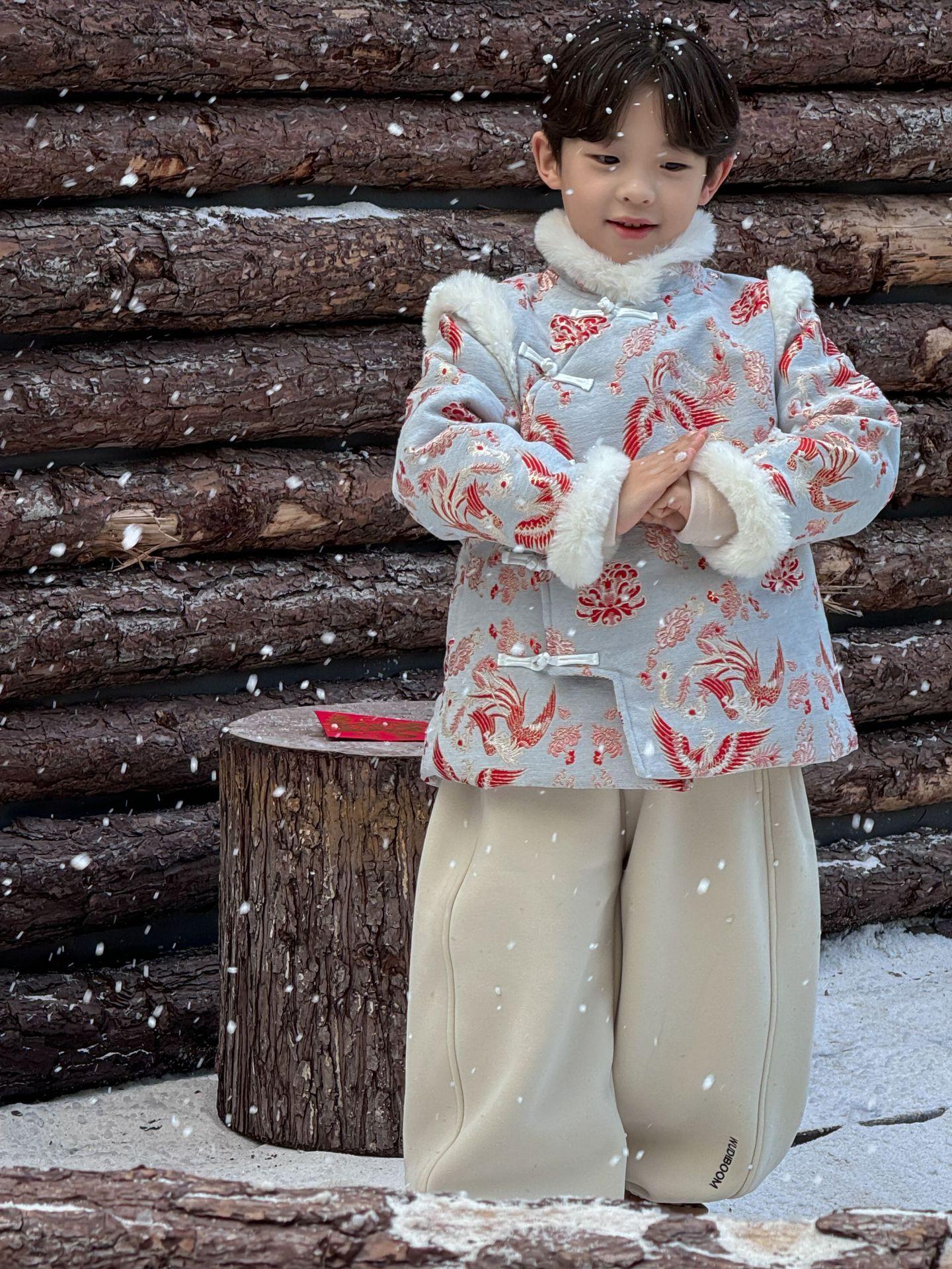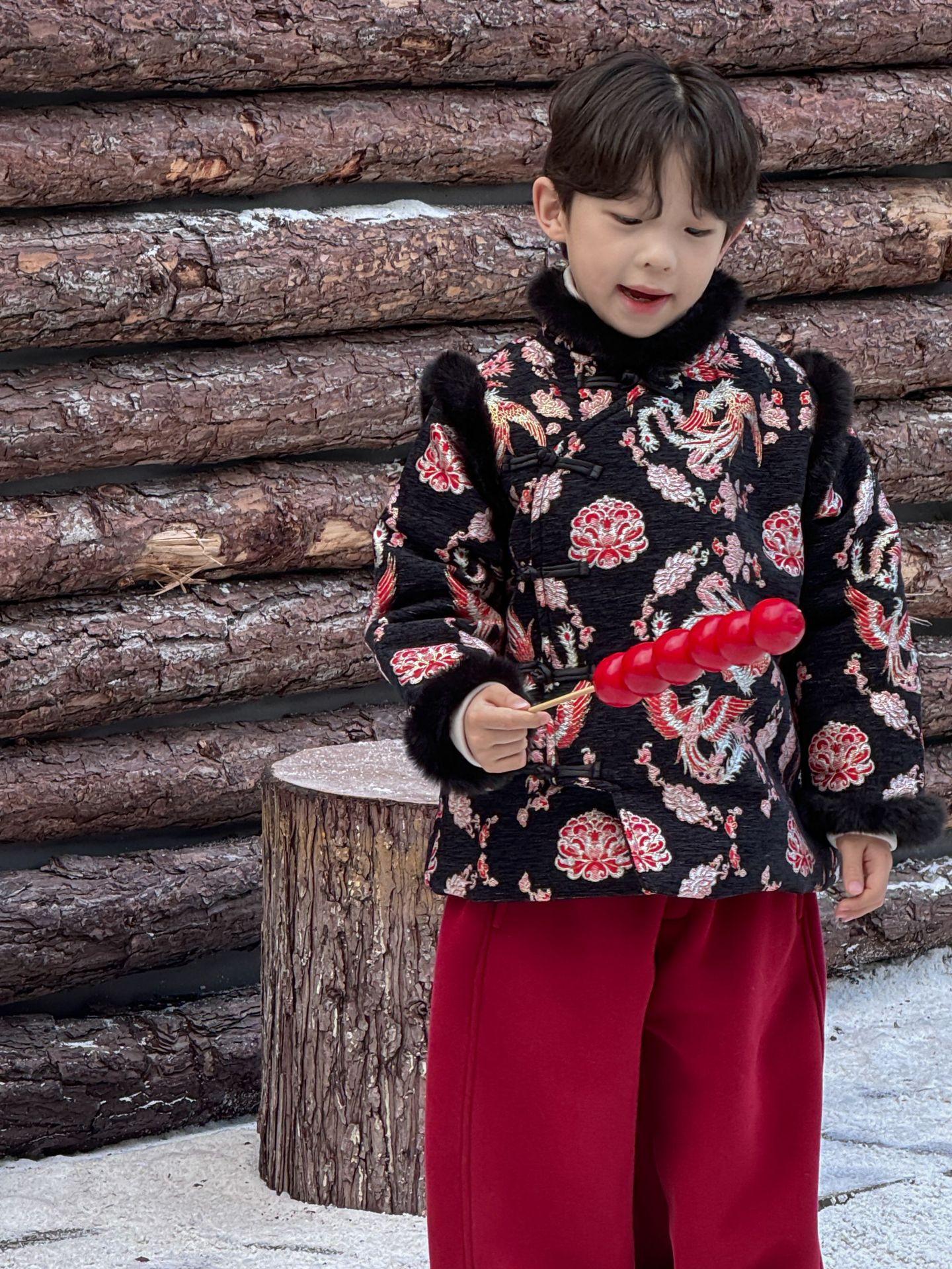 24 Invierno Nuevo Estilo Niños Niños Ropa Infantil Estilo Coreano Abrigo Corto de Algodón y Lana Nueva Temporada de Año Nuevo