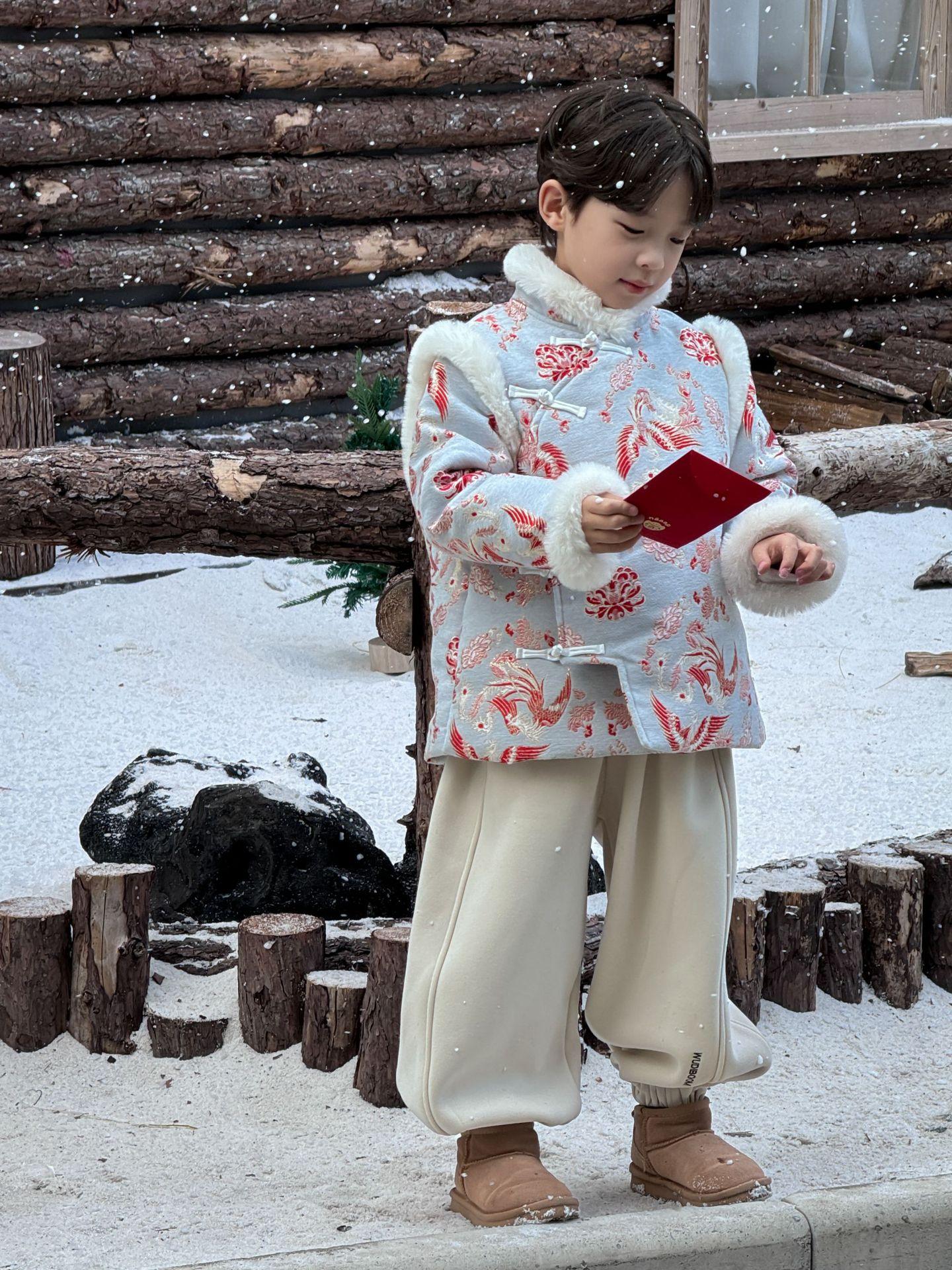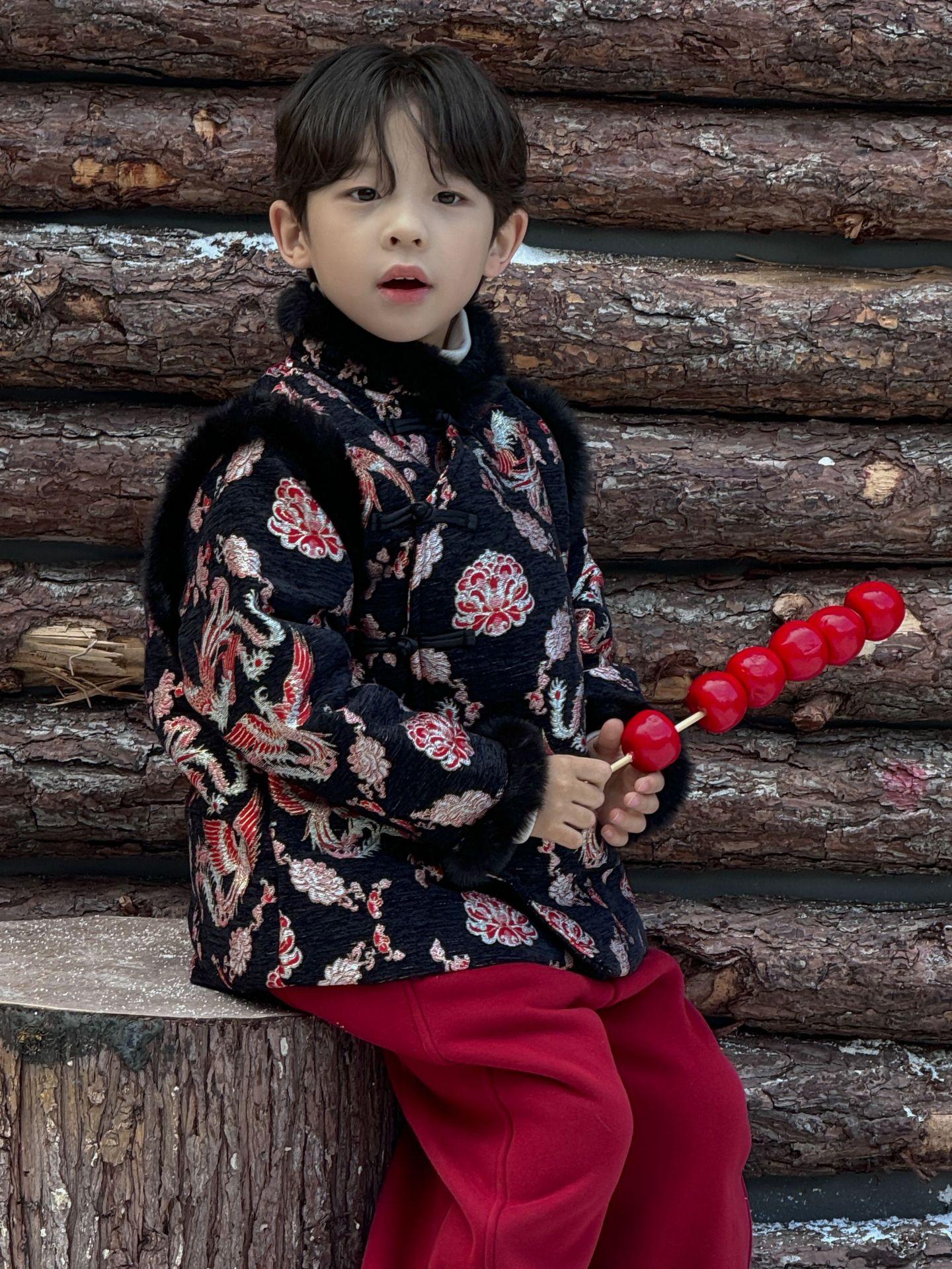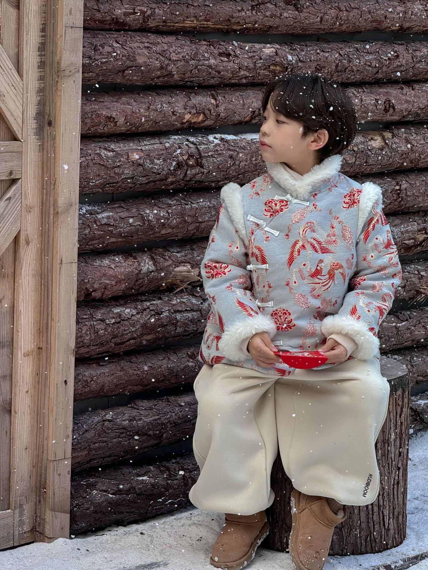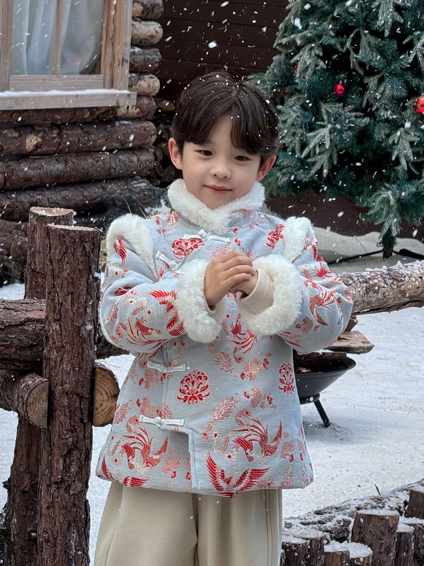 24 Invierno Nuevo Estilo Niños Niños Ropa Infantil Estilo Coreano Abrigo Corto de Algodón y Lana Nueva Temporada de Año Nuevo