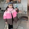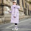 Ropa de Abrigo para Niñas Otoño e Invierno 2025 Nuevo Estilo Algodón y Grueso Piel de Conejo de Alta Gama Largo Medio Abrigo de Algodón Ligero para Niñas Mayores