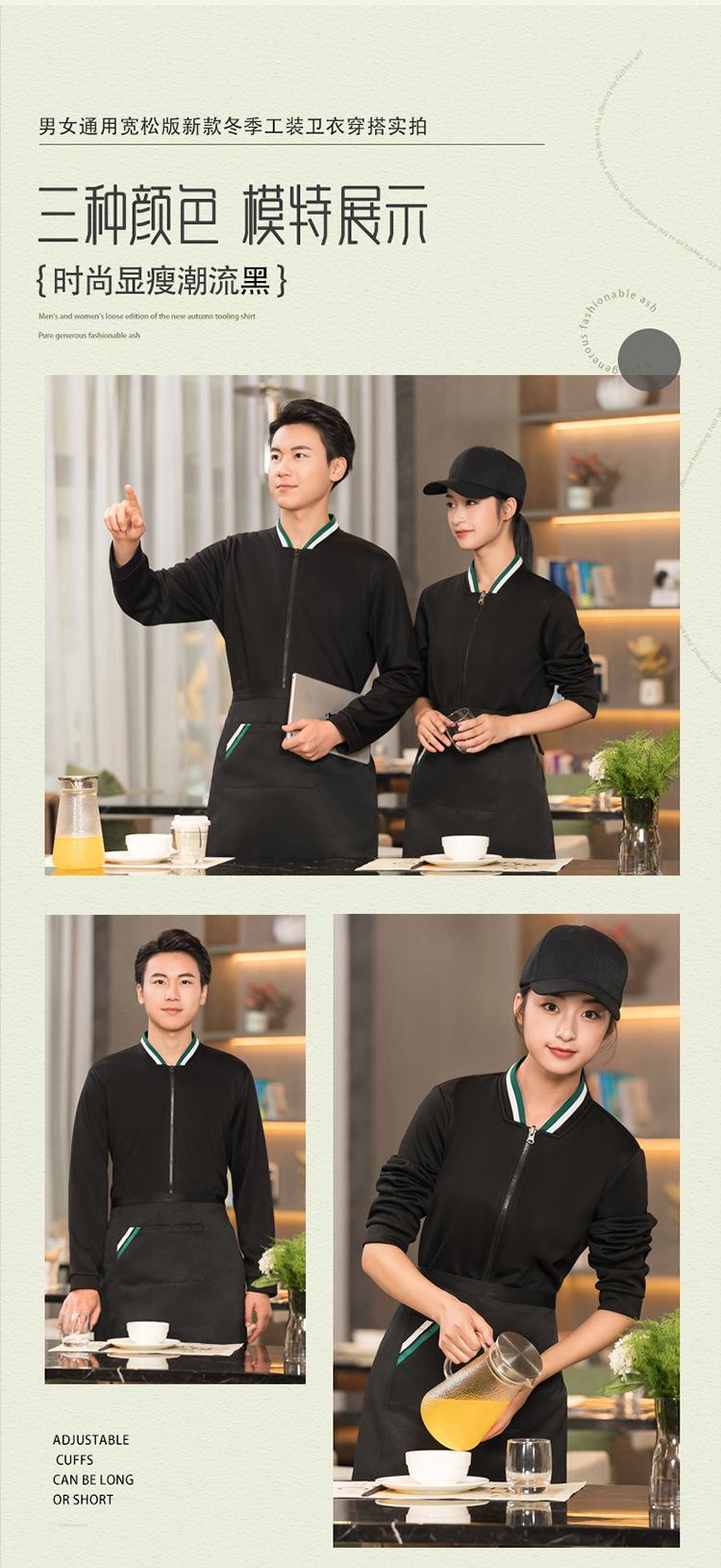Sudadera Ropa de Trabajo Otoño e Invierno Catering Restaurante Restaurante de Olla Caliente Té con Leche Supermercado Camarero Ropa Exterior de Manga Larga Ropa de Trabajo con Forro Polar