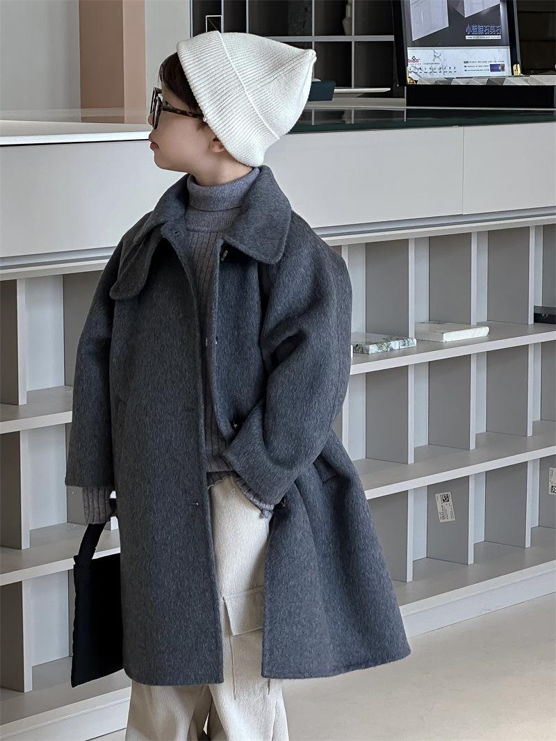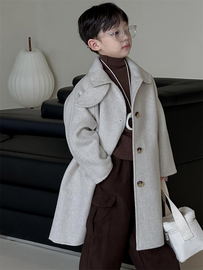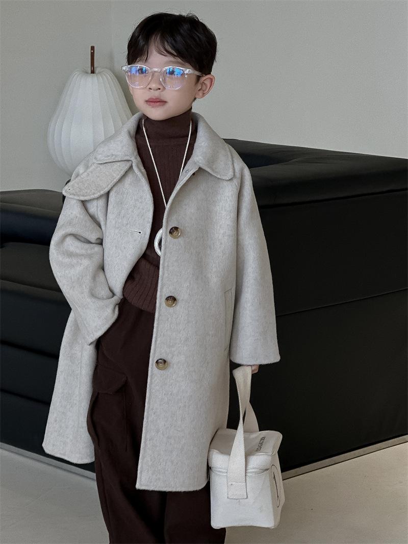 Ropa para Niños Cheese and Meow 2024 Nueva Chaqueta Cálida Invierno Niños Temperamento Estilo Coreano Lana Abrigo de Lana de Doble Cara Moderno