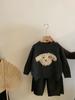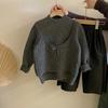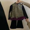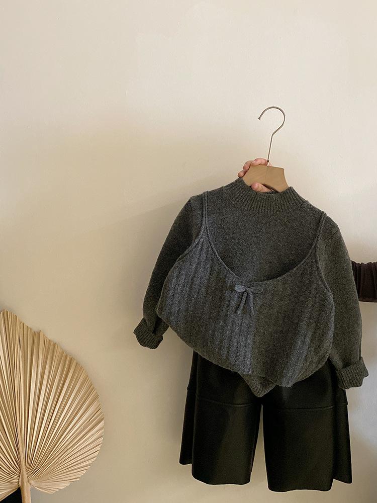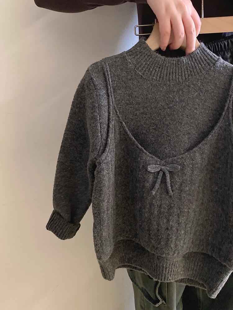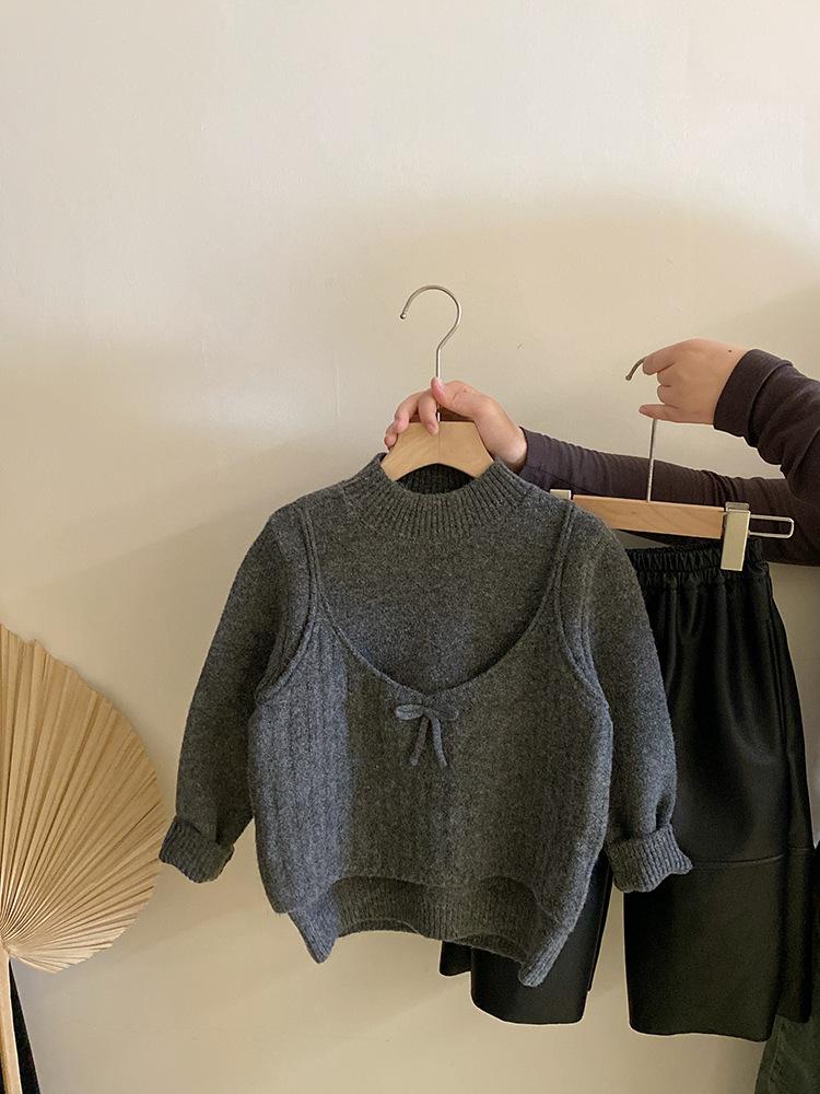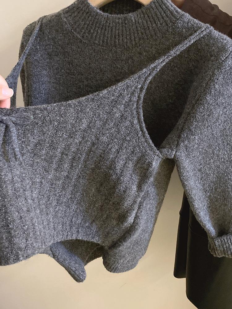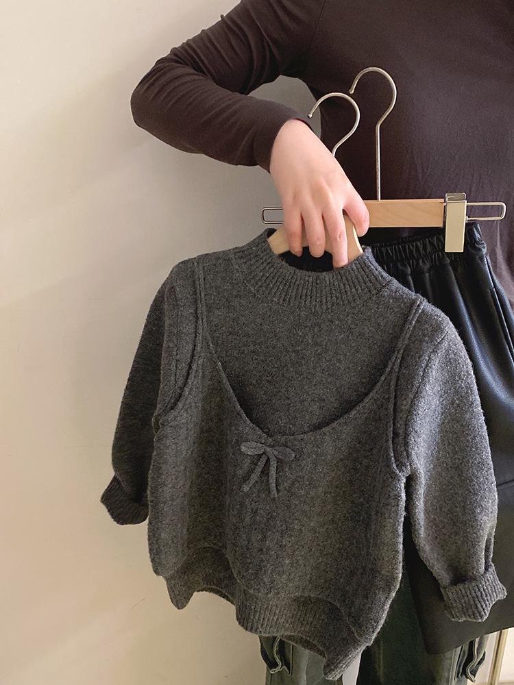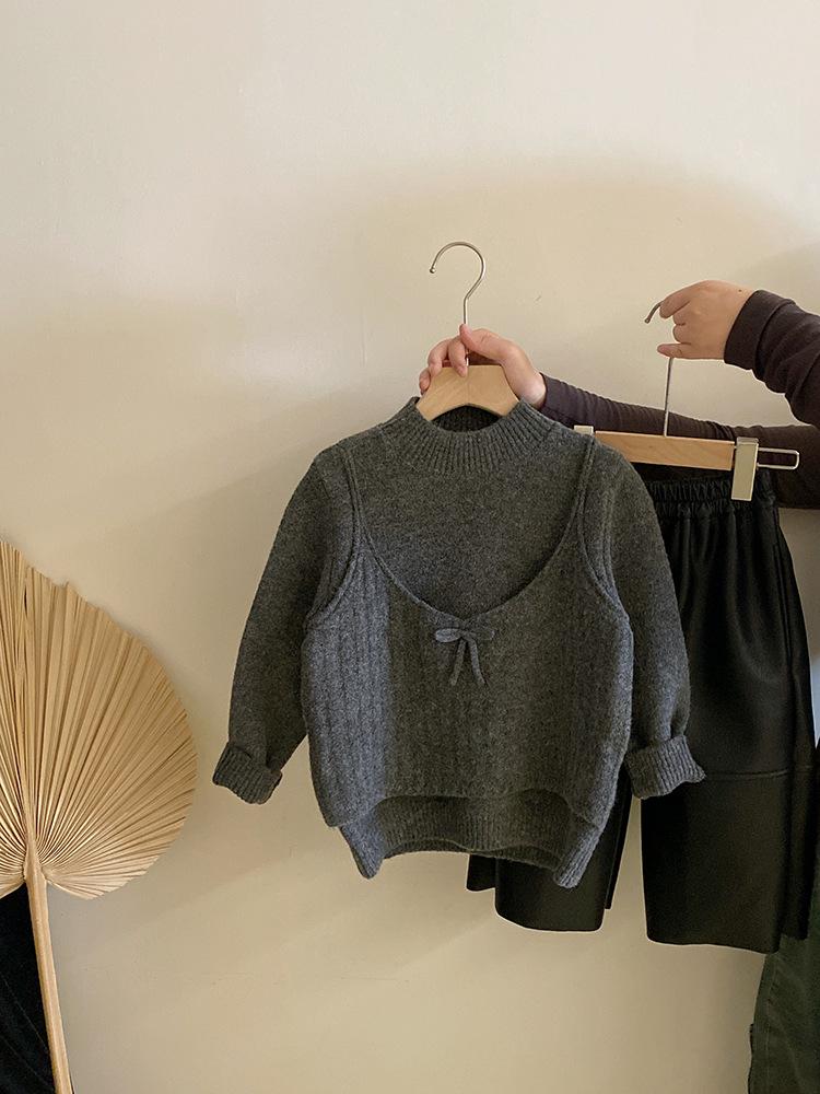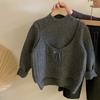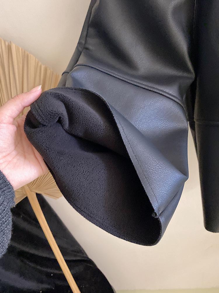 Suéter de punto con dos lazos falsos de temperamento coreano, otoño e invierno 2024, nuevo pantalón de cuero cálido con forro polar, traje de estilo occidental