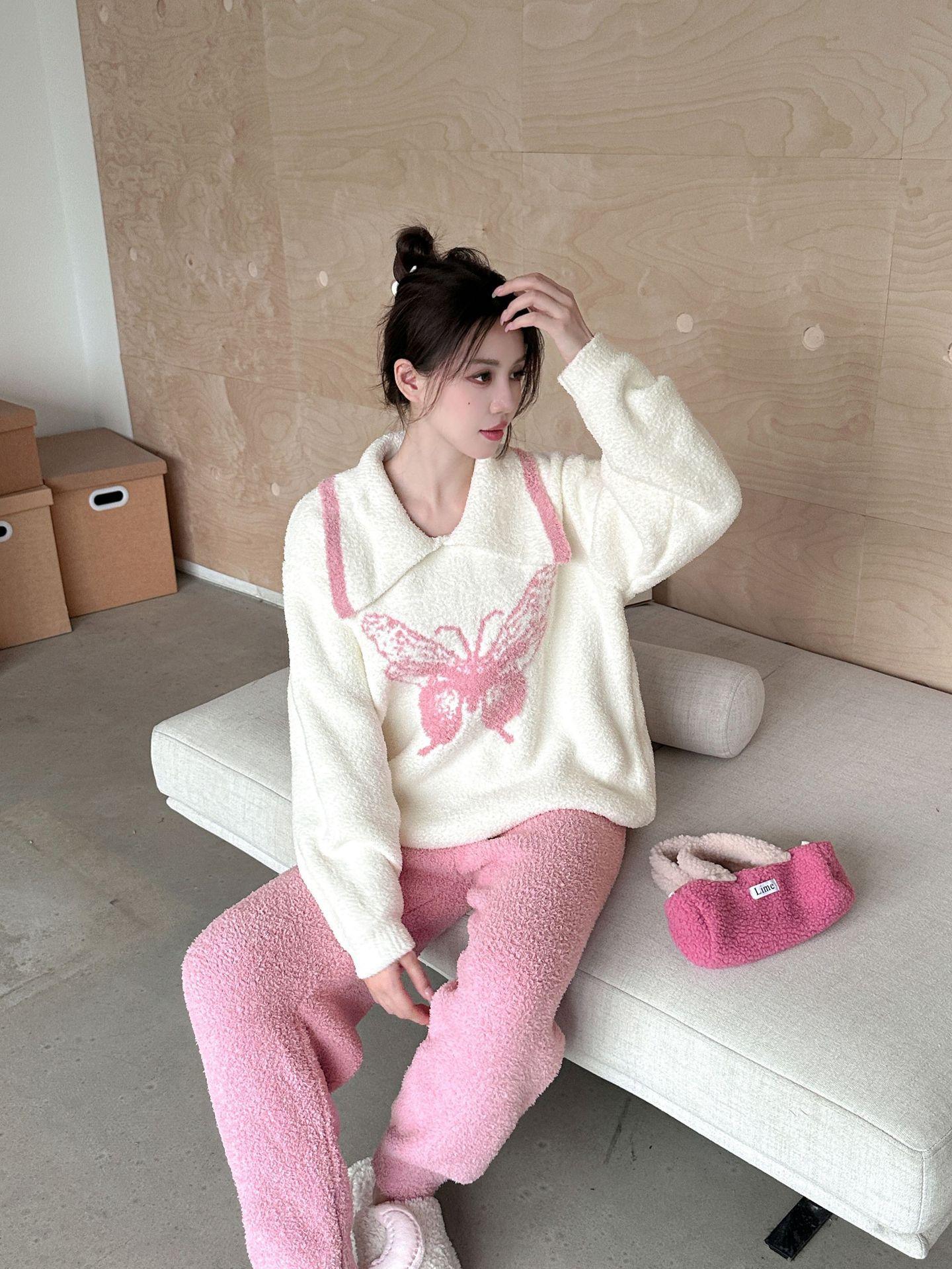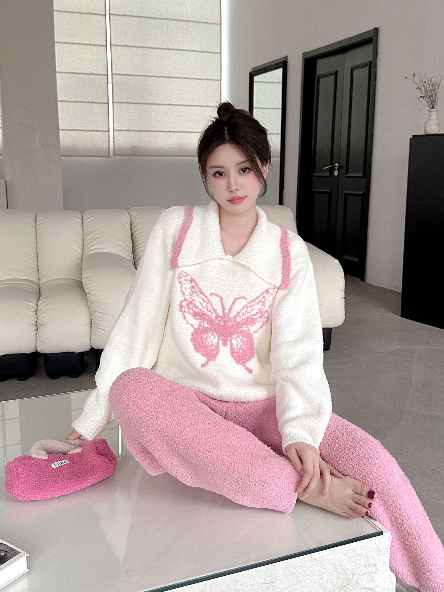 Pijamas suaves para mujer, otoño e invierno, cárdigan de terciopelo de medio lado, ropa cálida para el hogar, manga larga, estilo Chanel de invierno, traje grueso