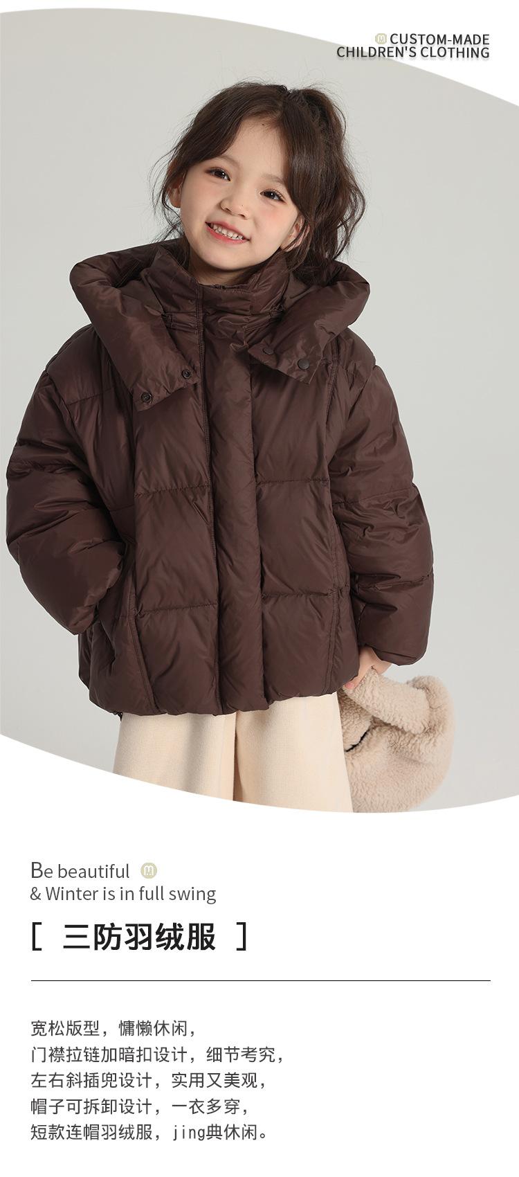 Nueva Chaqueta Corta para Niñas a Prueba de Tres para Ropa de Invierno 2024 Invierno Nueva Chaqueta Cálida Acolchada con Capucha Versátil para Niños