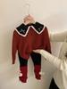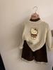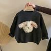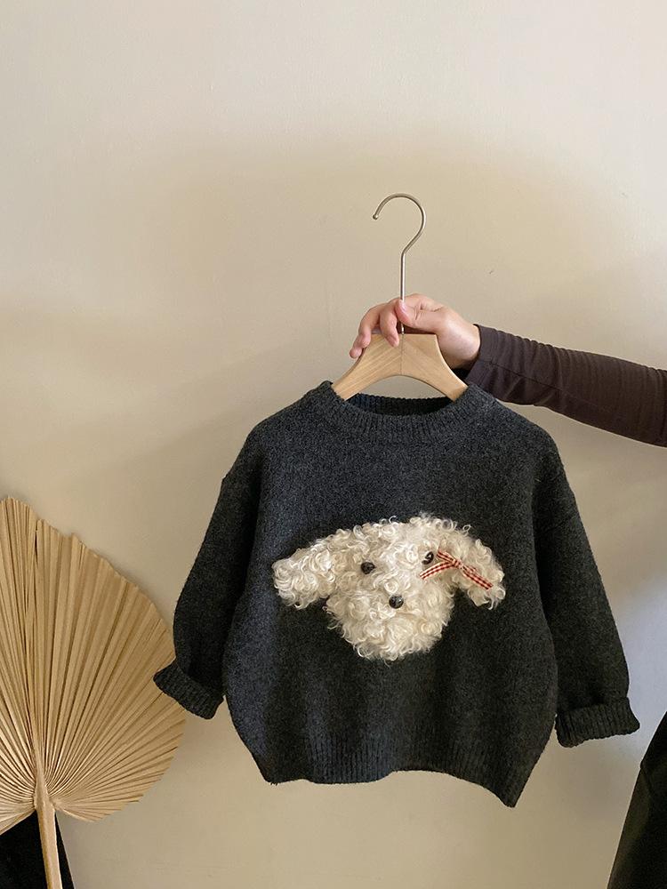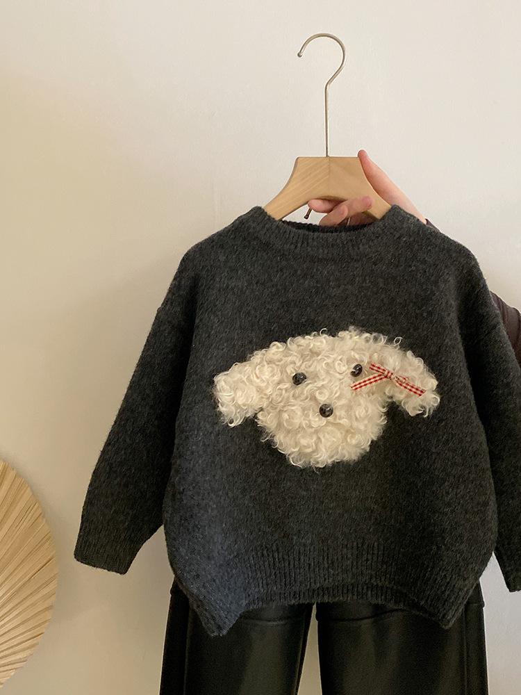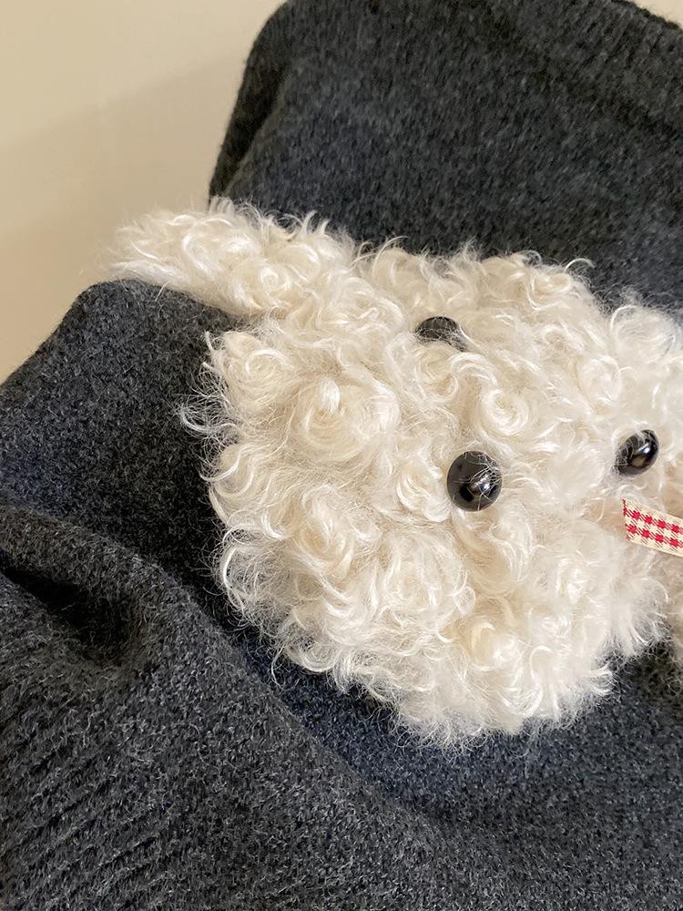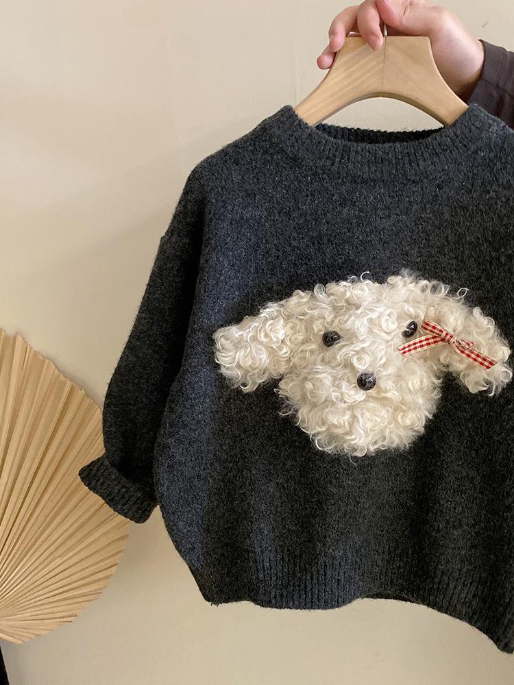 Suéter de punto con bonito cachorro de peluche tridimensional para niñas, otoño e invierno 2024, nuevo pantalón de cuero cálido con forro polar, traje estilo occidental
