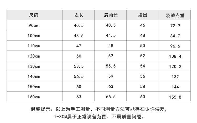 90cm, 100cm, 110cm, 120cm, 130cm, 140cm, 150cm, 160cm