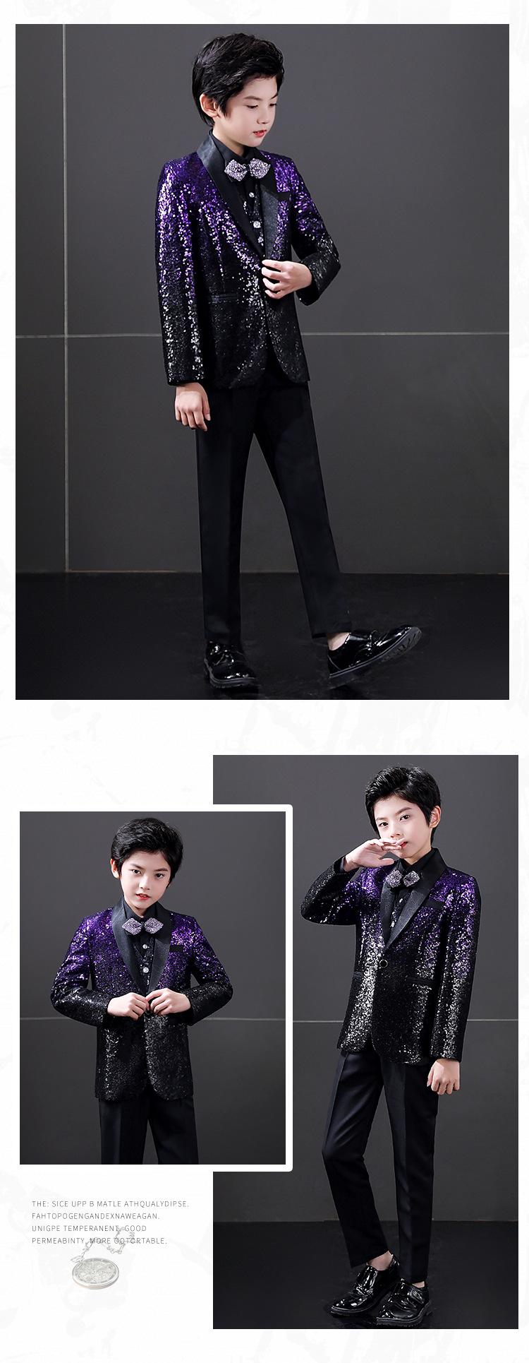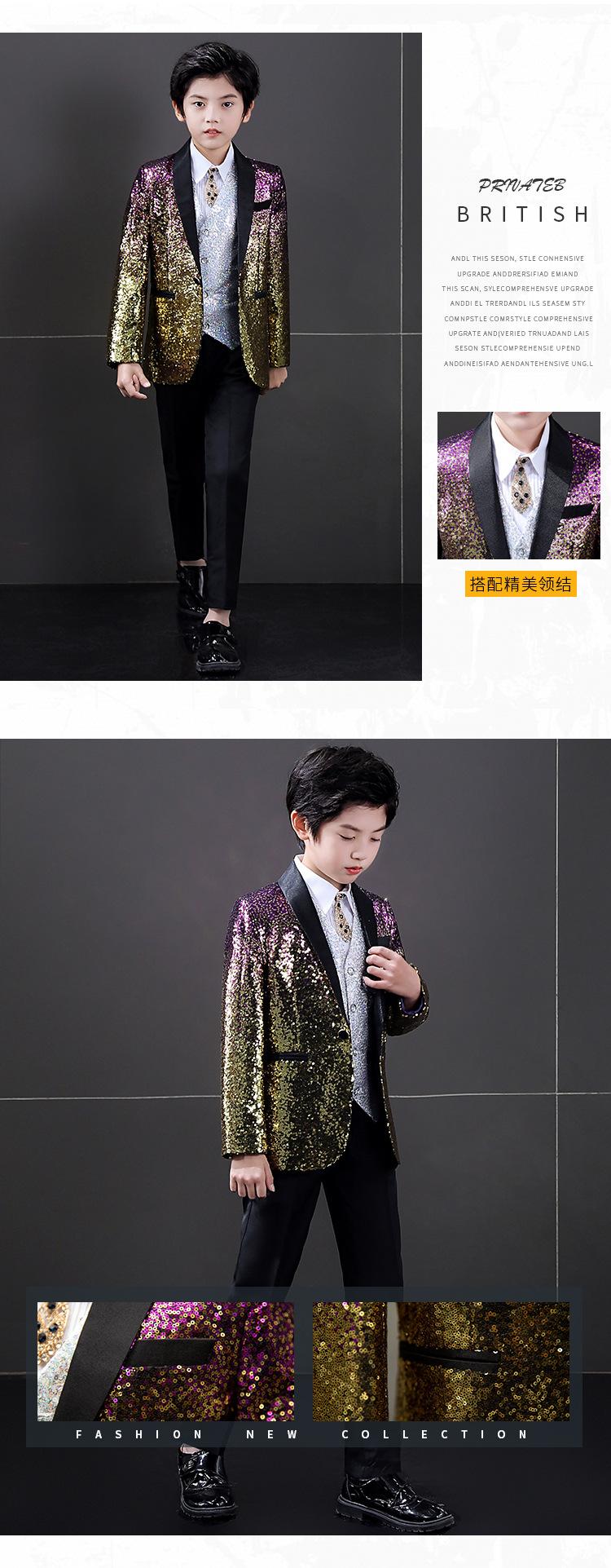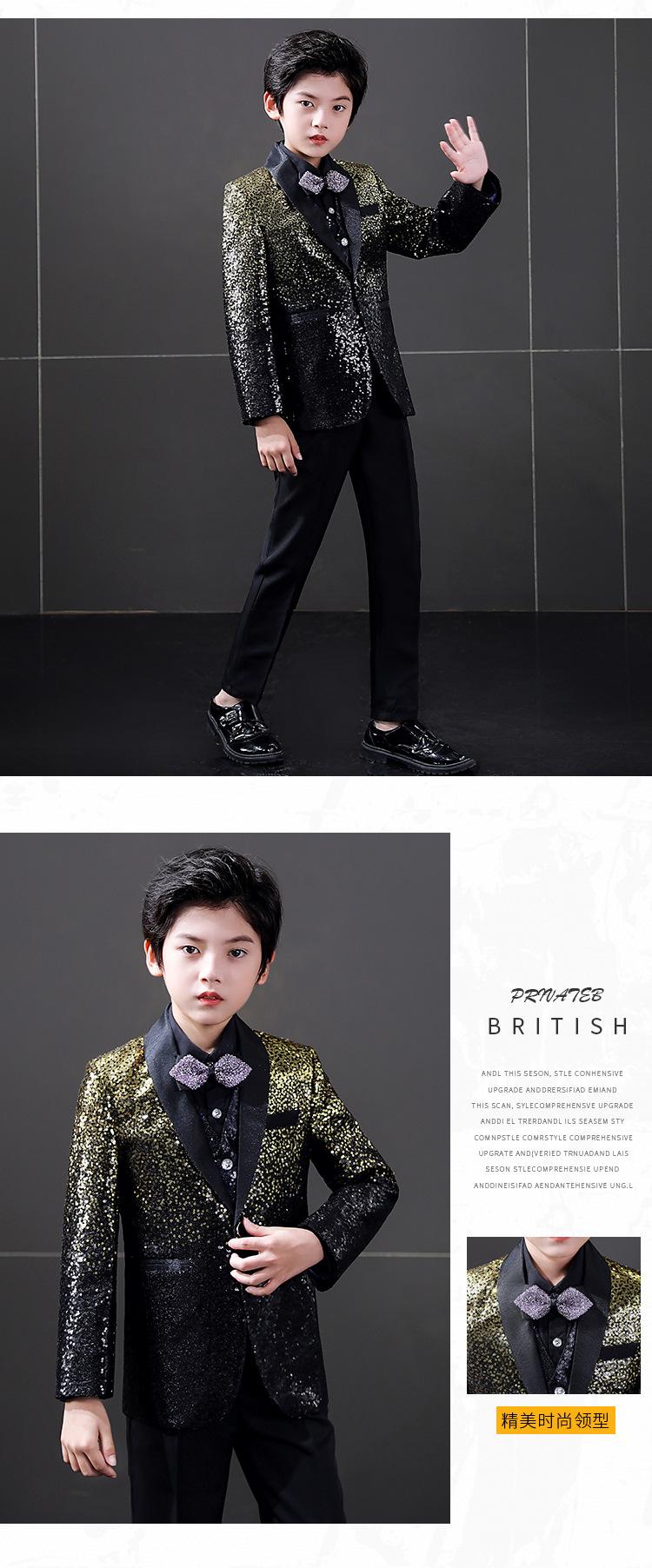Traje para niños Estilo británico Vestido de anfitrión para niño Traje pequeño de lentejuelas para pasarela Traje para actuación de piano