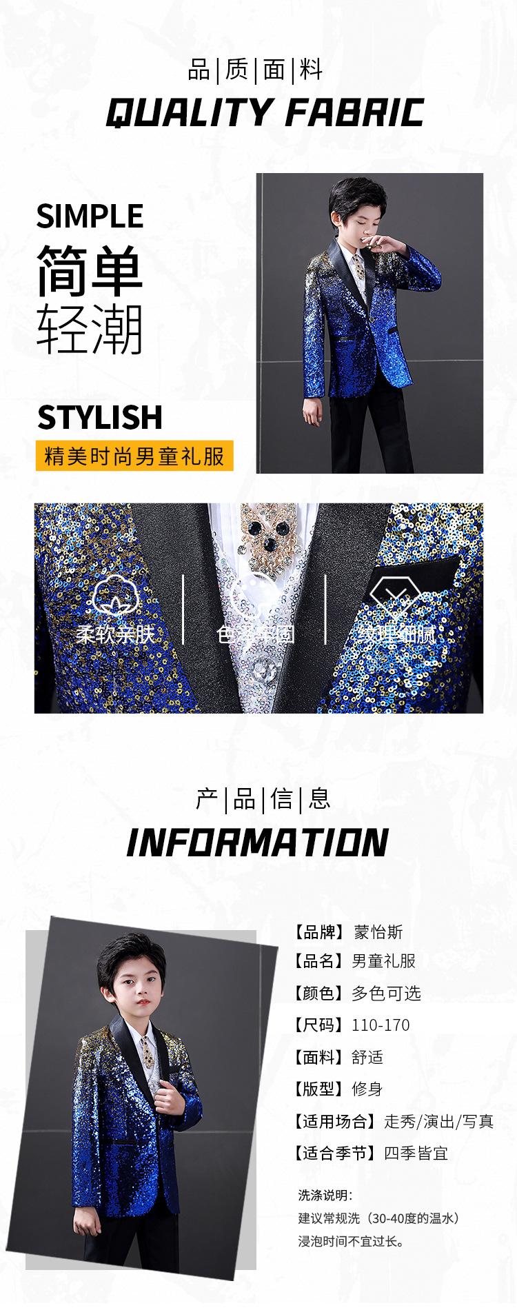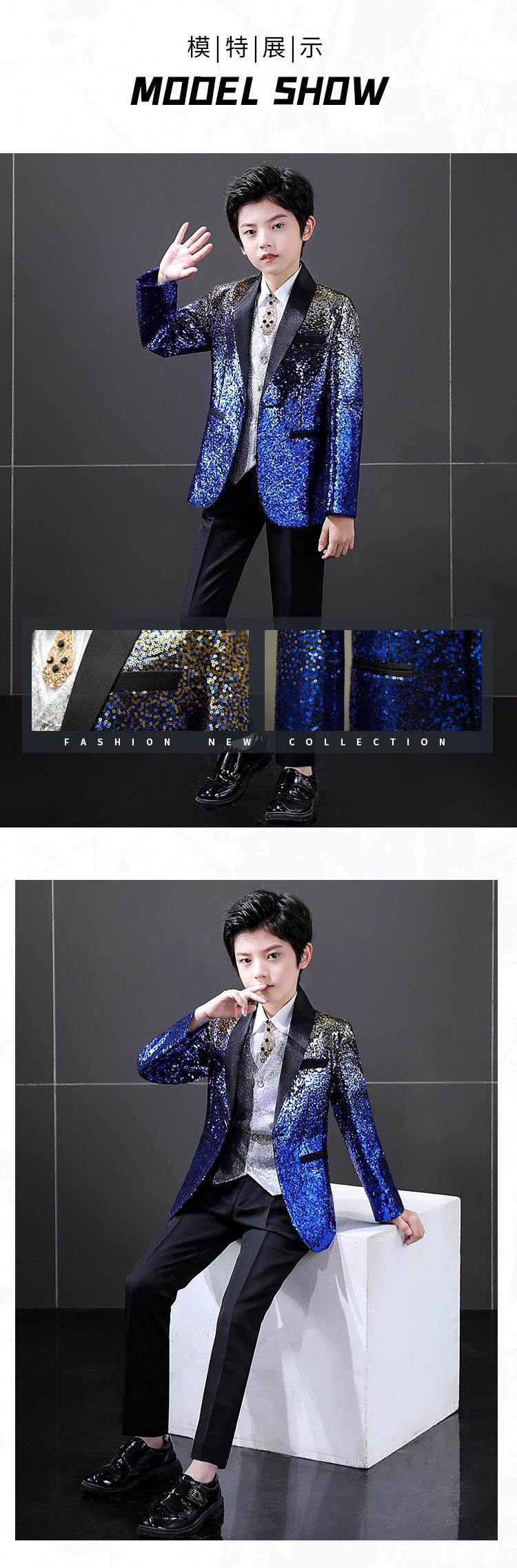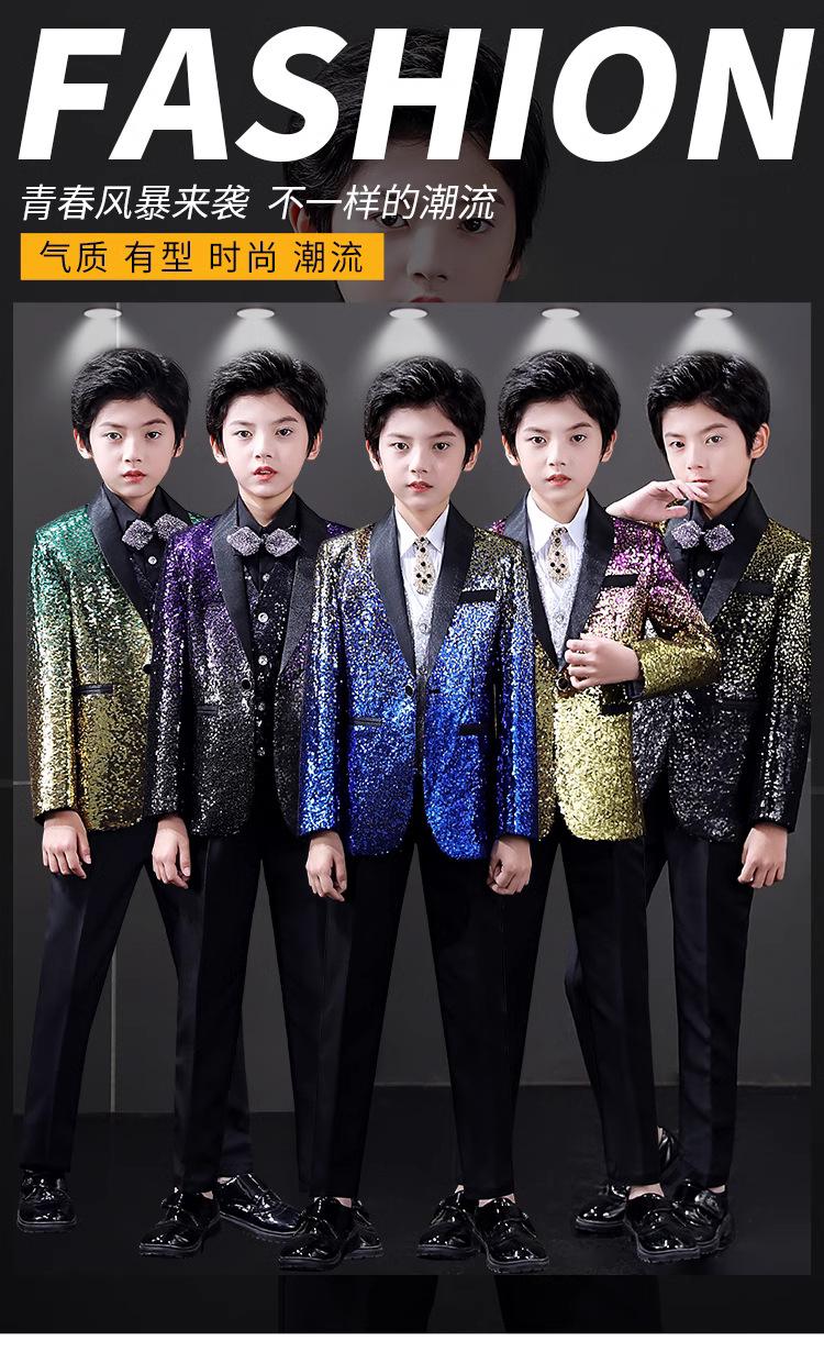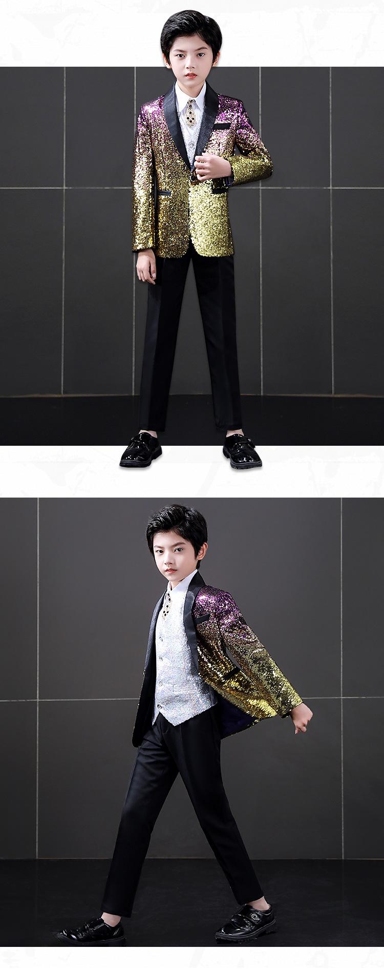 Traje para niños Estilo británico Vestido de anfitrión para niño Traje pequeño de lentejuelas para pasarela Traje para actuación de piano