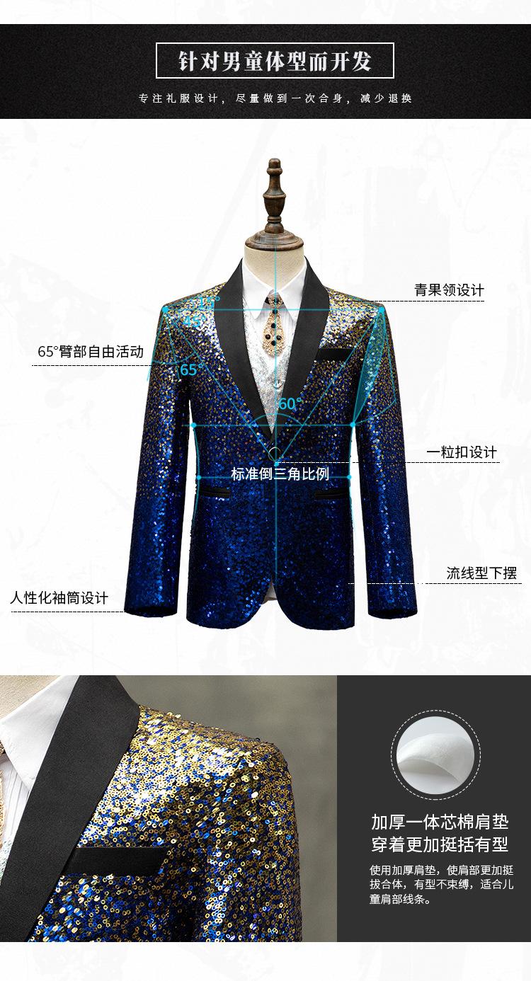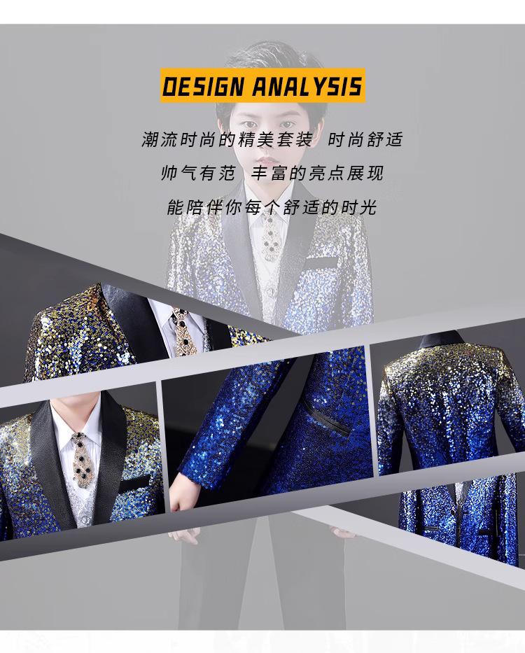 D four-piece suit + shirt + pants + bow tie (blue + Gold)