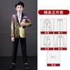 A five-piece suit + pants + shirt + vest + bow tie (Green + Gold)