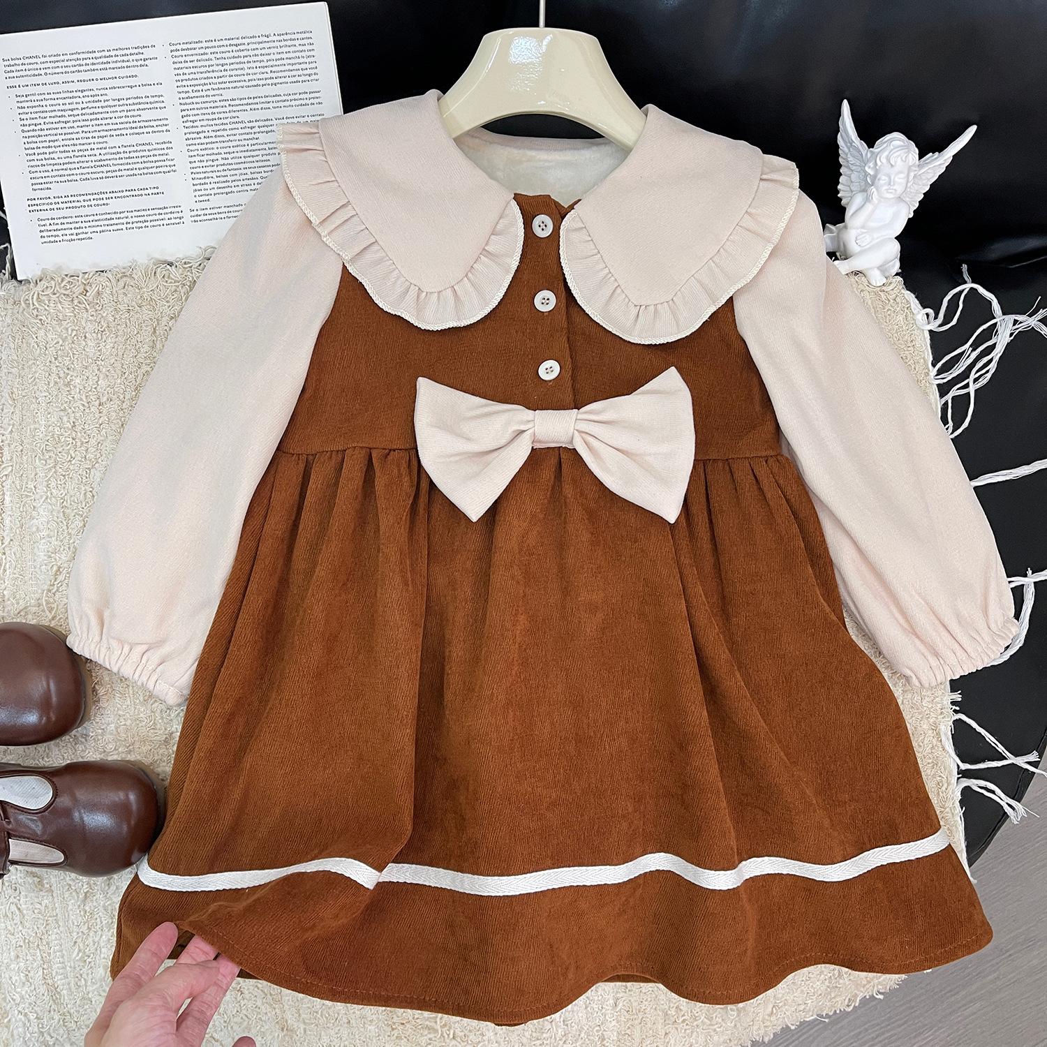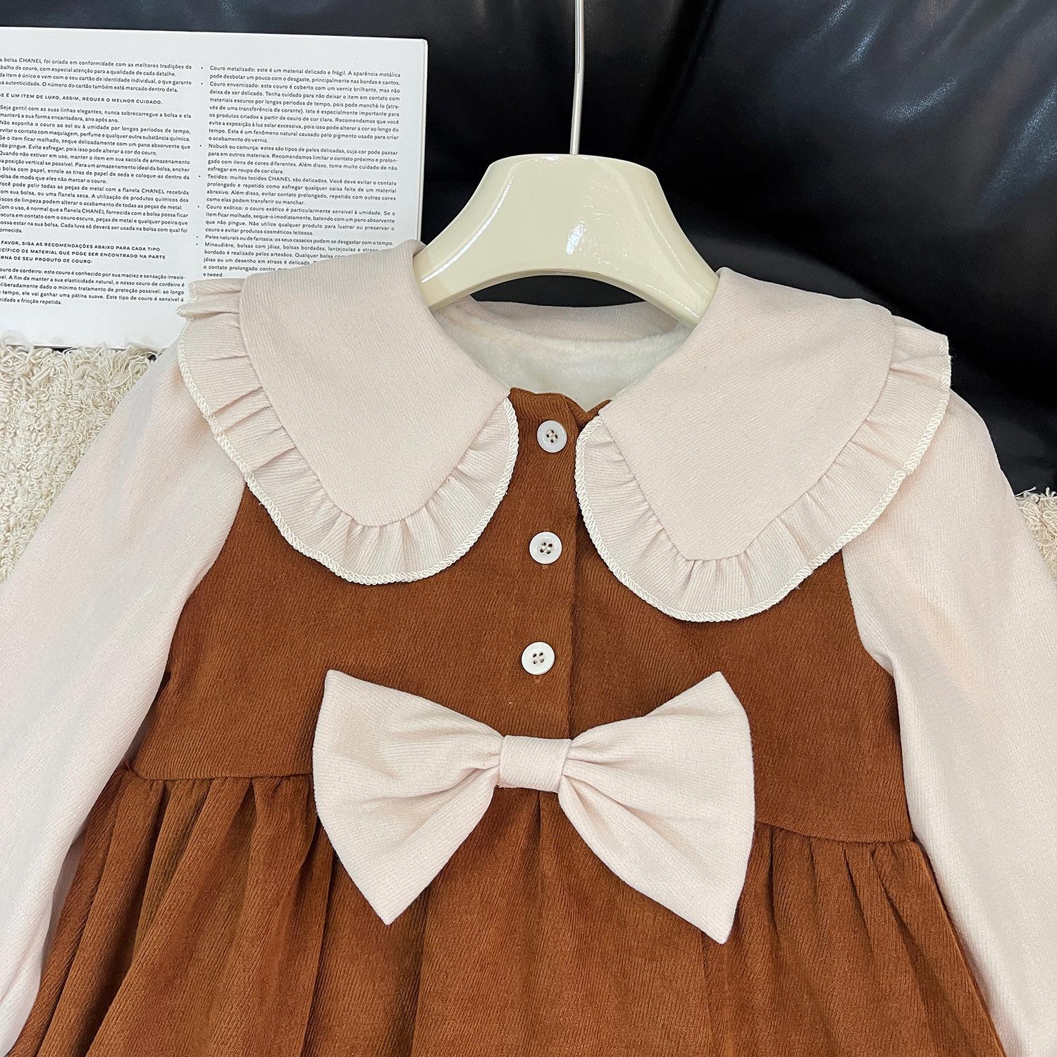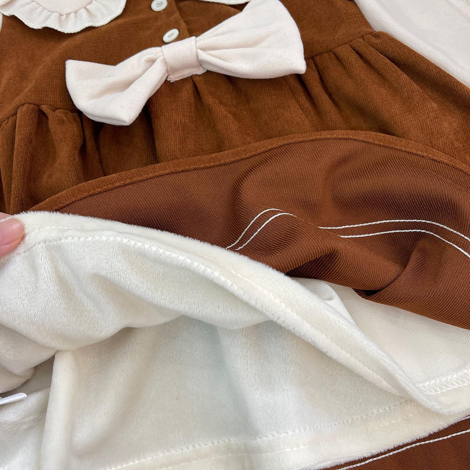 Vestido de Invierno Nuevo y Elegante para Niñas 2025, Vestido Infantil de Forro Polar de Manga Larga con Parches Gruesos, Vestido de Princesa para Bebé
