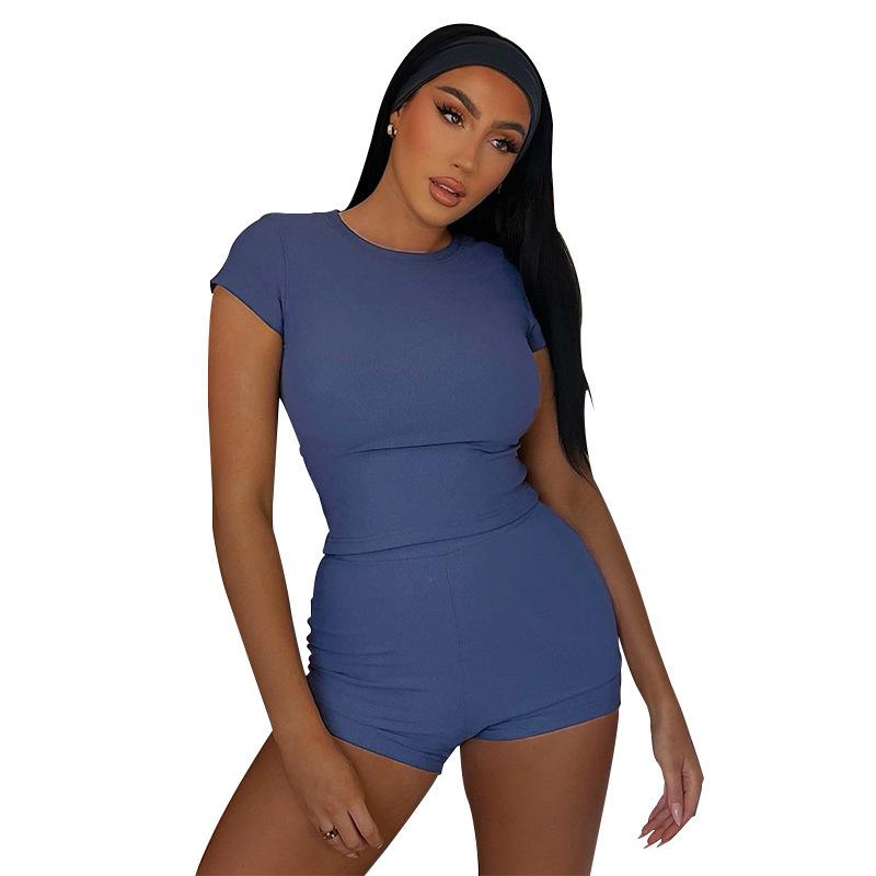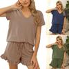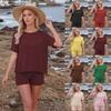 Amazon Ropa de Mujer Estilo Europeo y Americano 2025 Primavera y Verano Nuevo Traje Casual de Pantalones Cortos de Manga Corta de Color Sólido