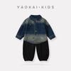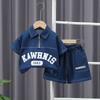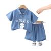 Traje de mezclilla de manga corta de color sólido para bebé 2025 verano nuevo comercio exterior ropa de verano para niños al por mayor niños guapos verano