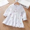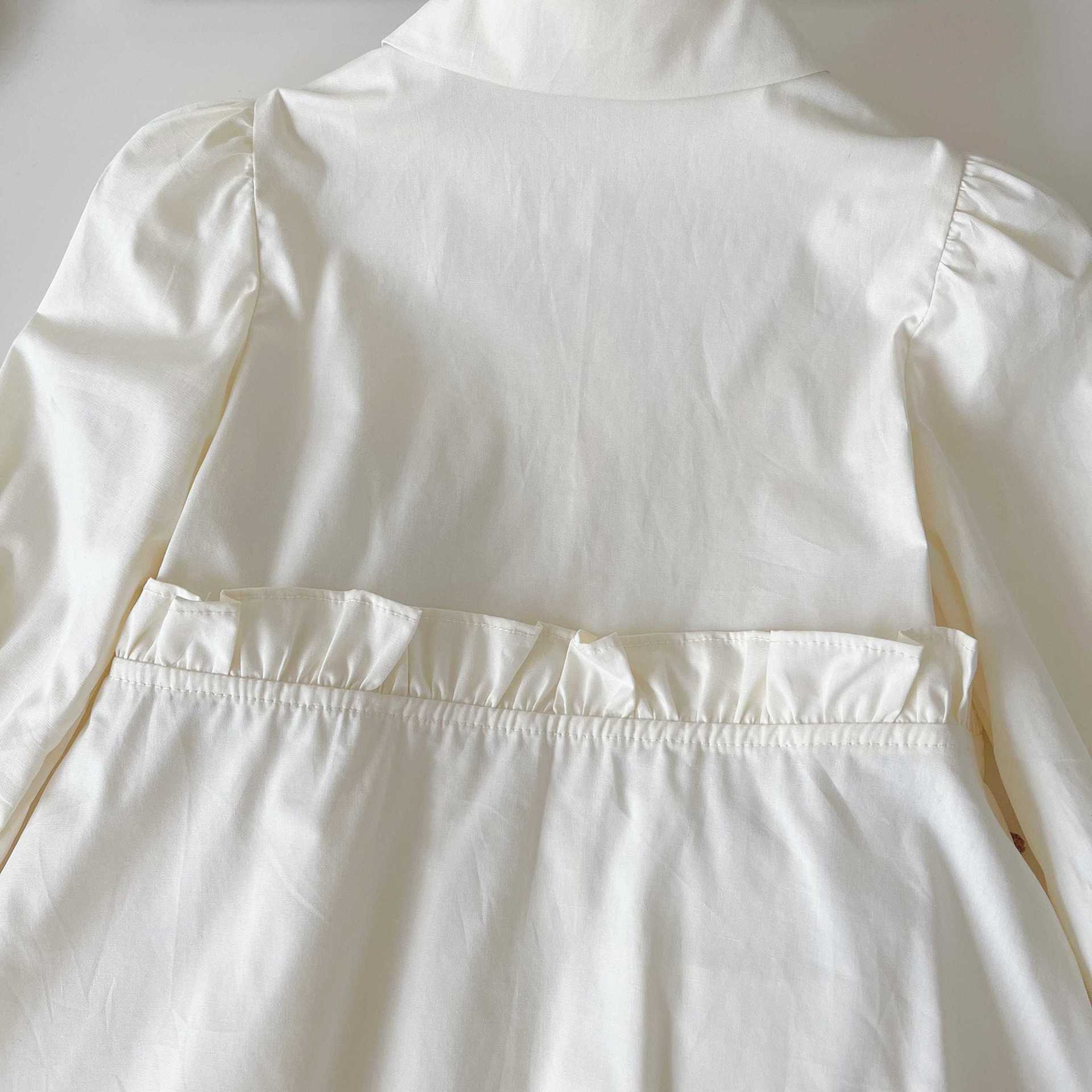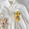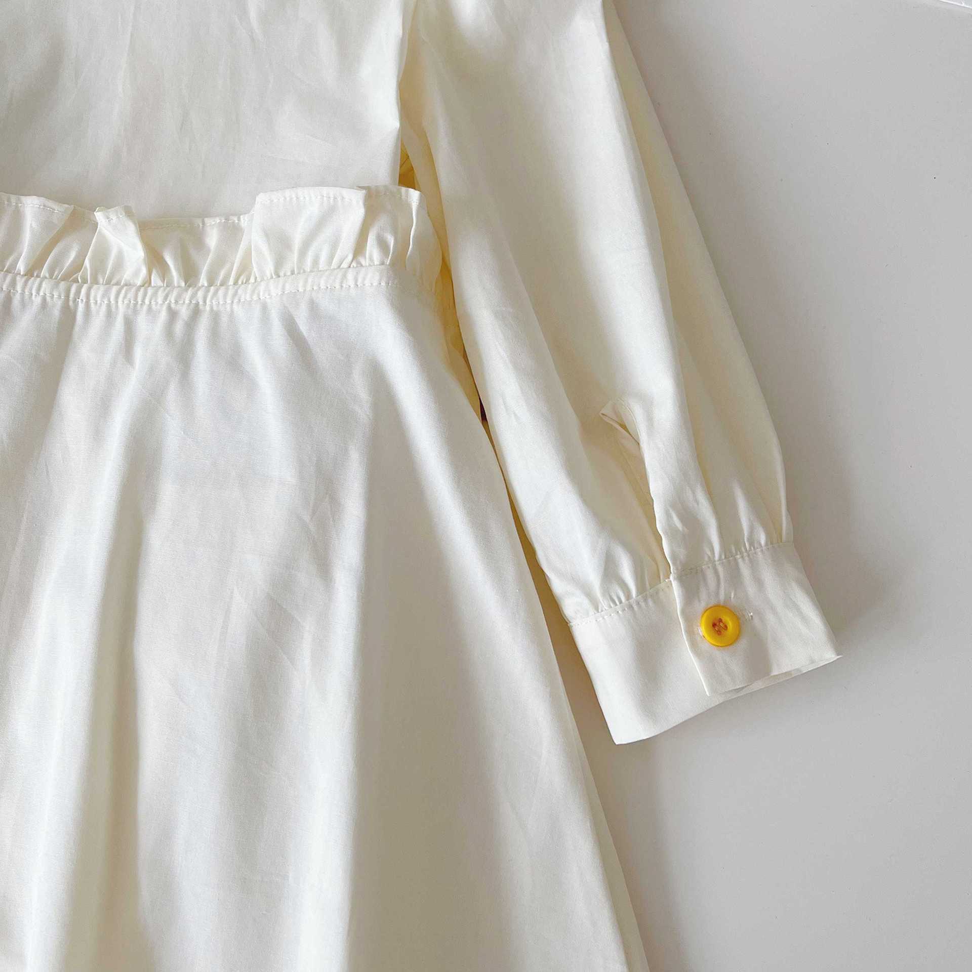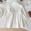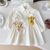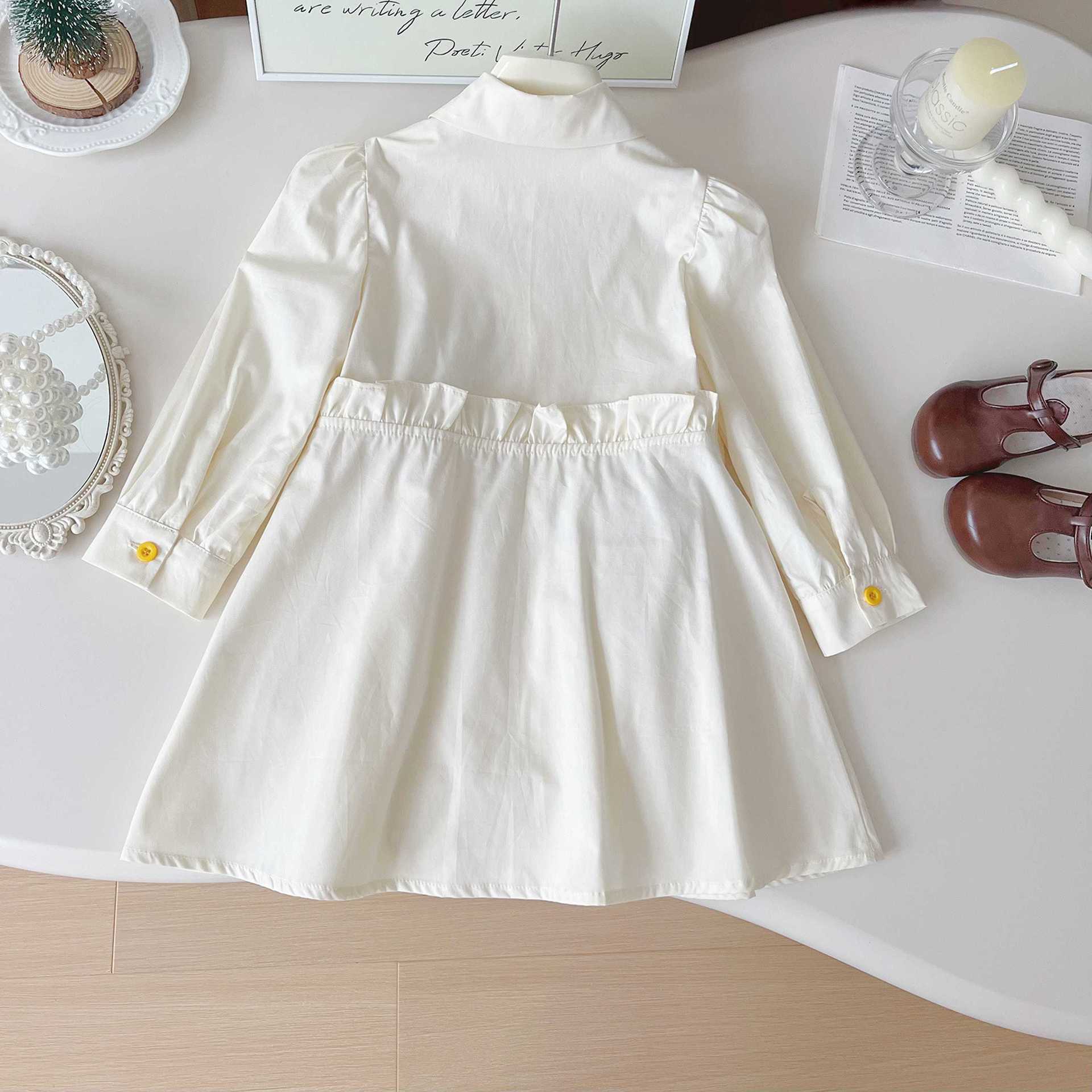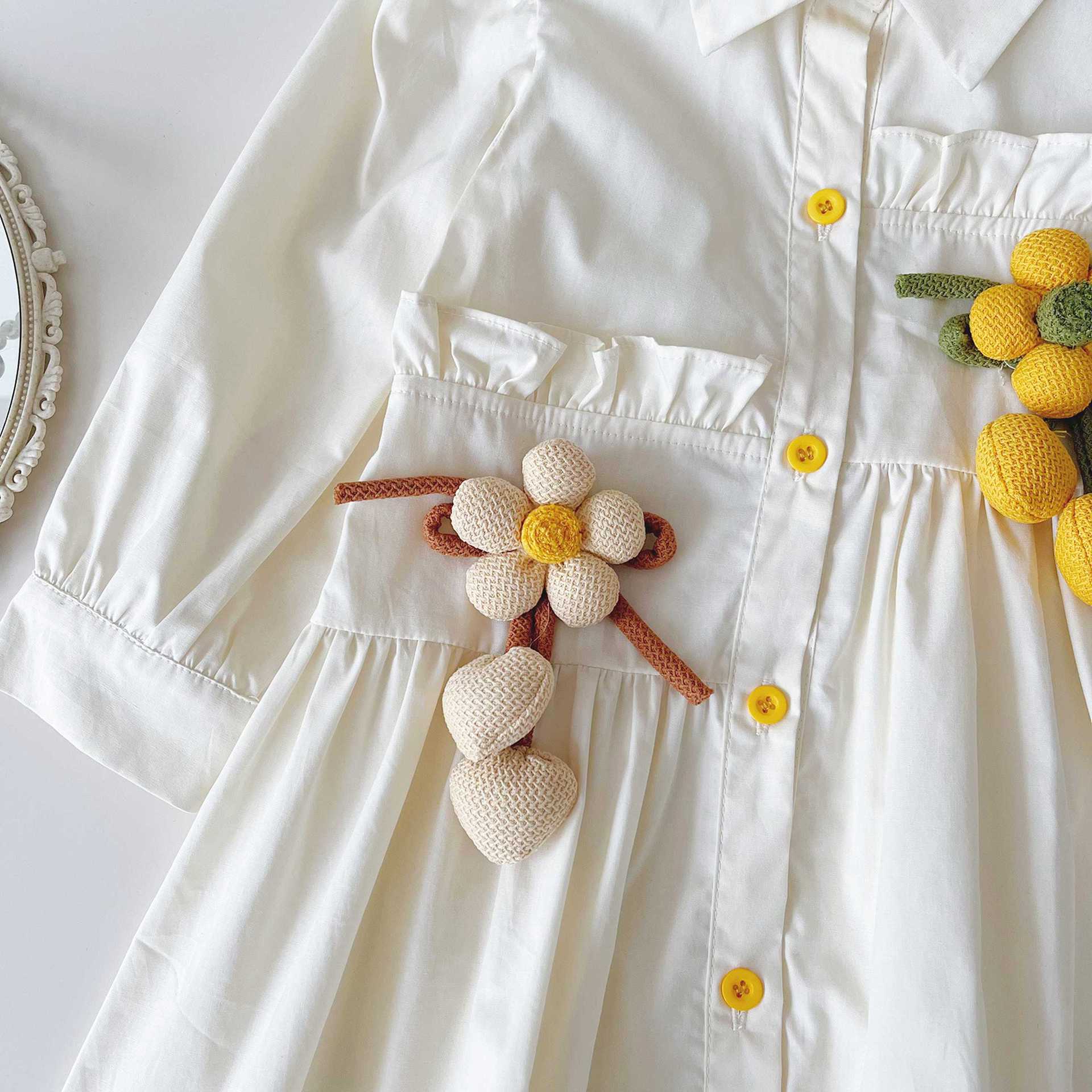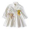 Estilo Primavera y Otoño 2025 Camisa Falda de Manga Larga para Niña Flor Tridimensional en la Cintura Vestido de Botonadura Sencilla Moderno