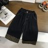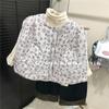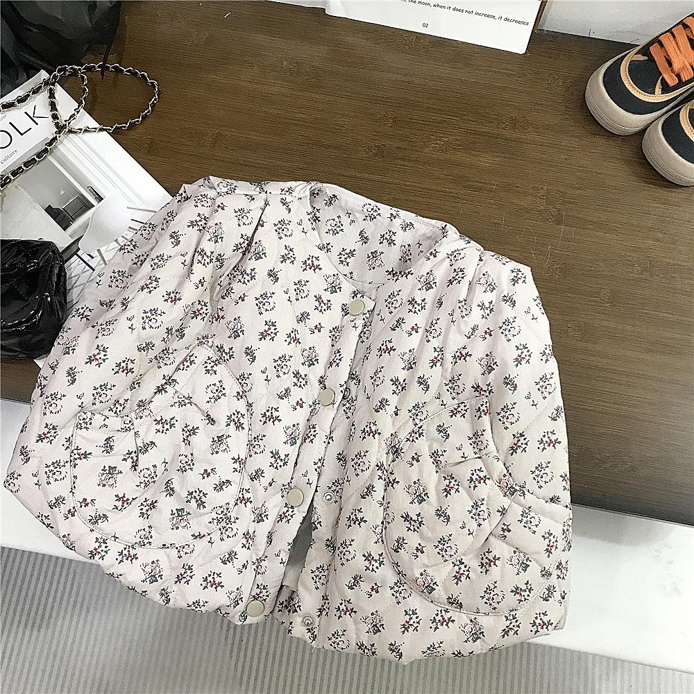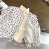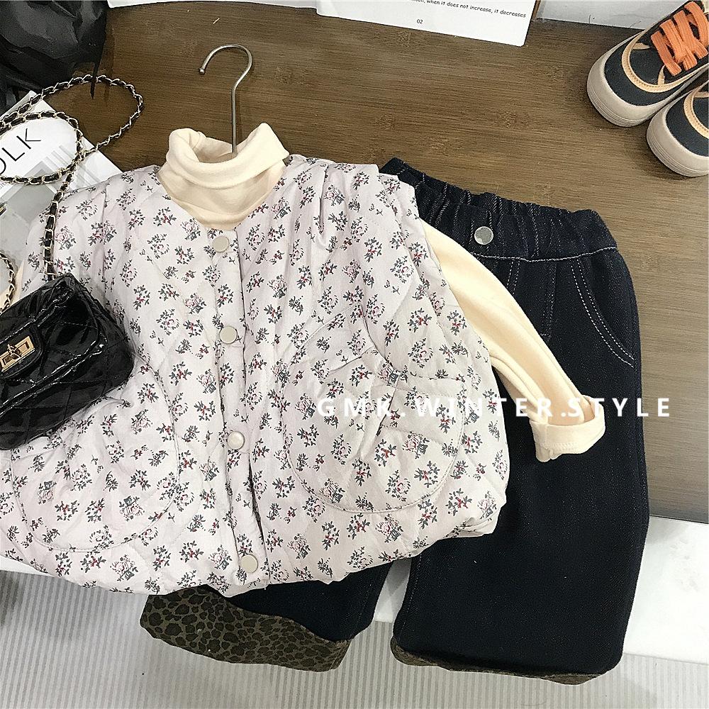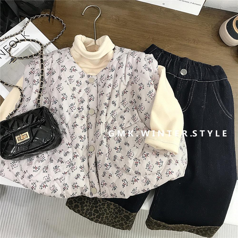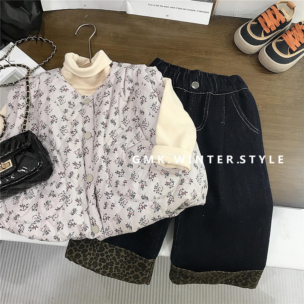 Floral bread vest, Leopard print cuffed fleece jeans, Pile collar bottoming shirt beige