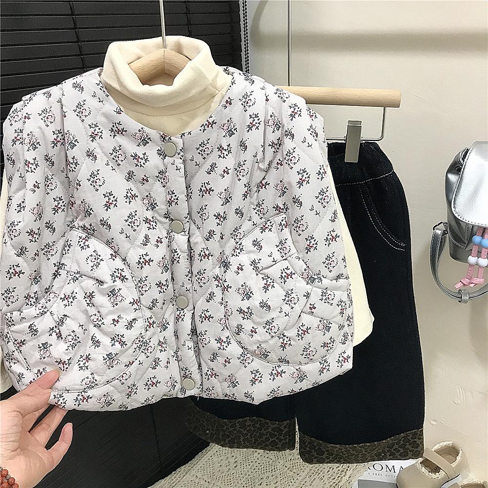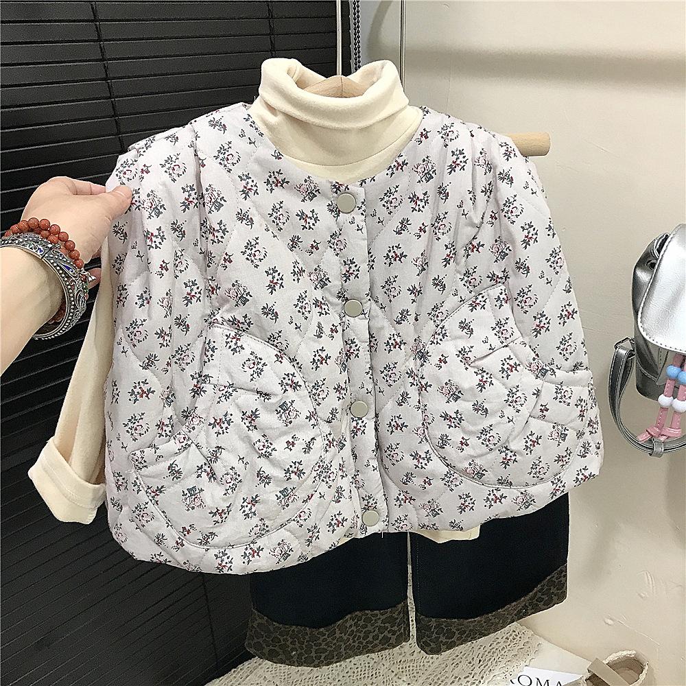 Chaleco de Algodón Acolchado para Niñas Otoño e Invierno Nuevo Estilo Mori Vintage Chaqueta Chaleco de Algodón de Invierno para Bebé