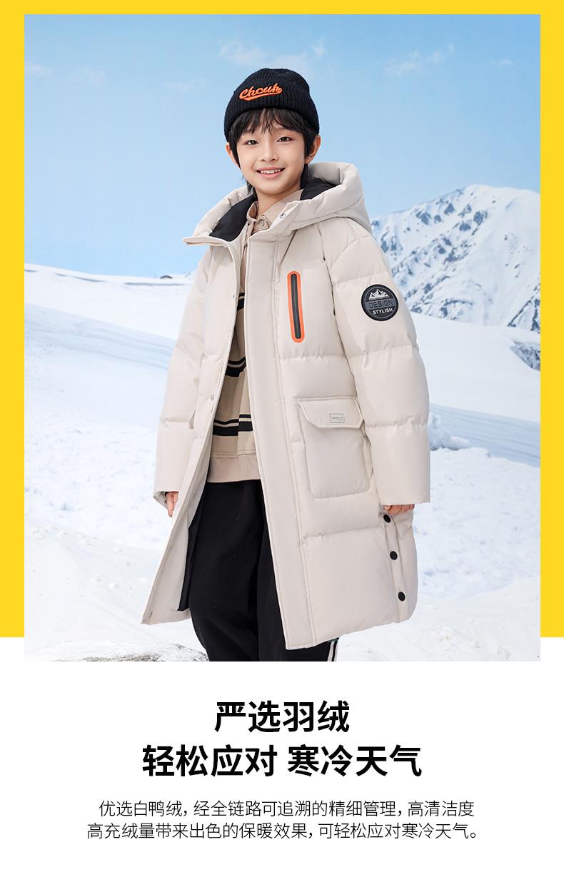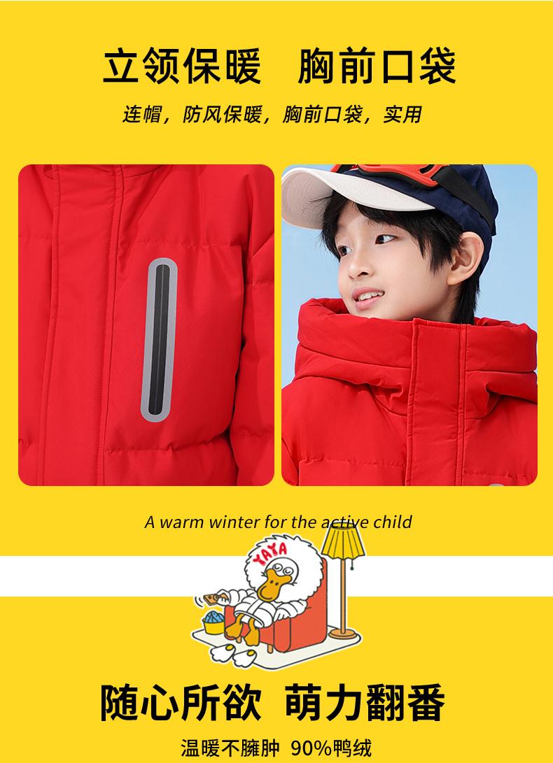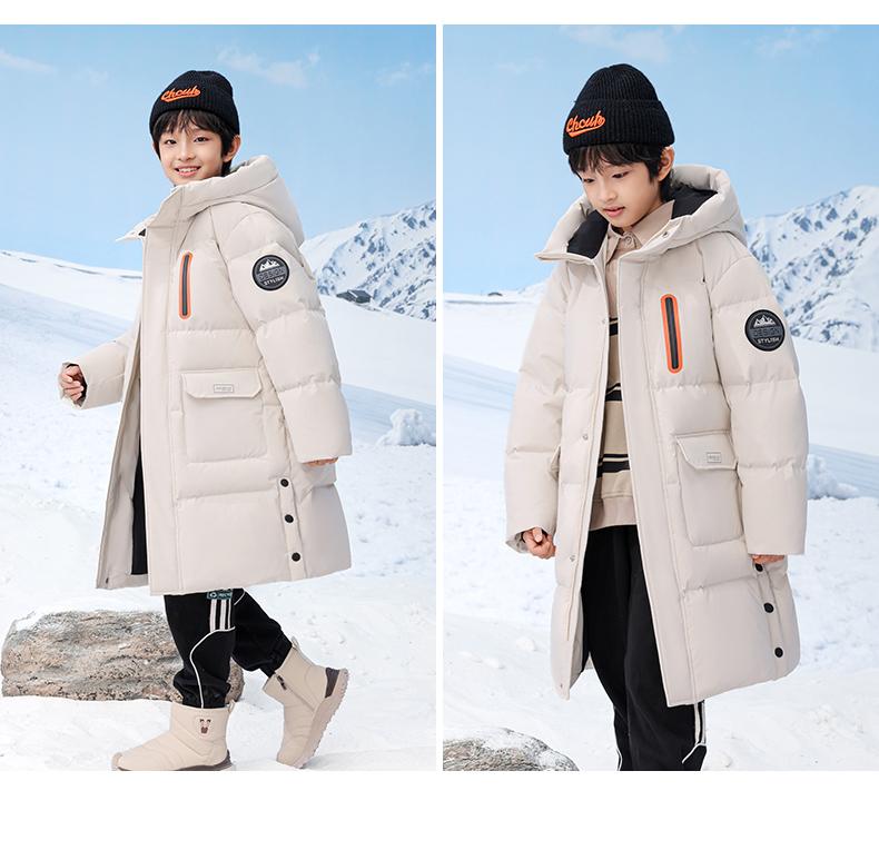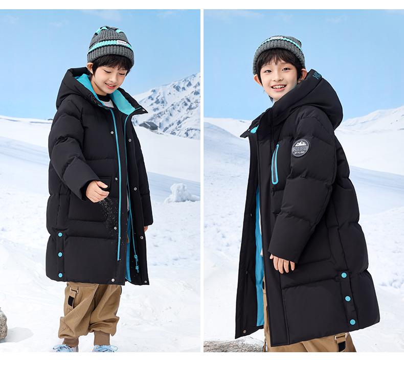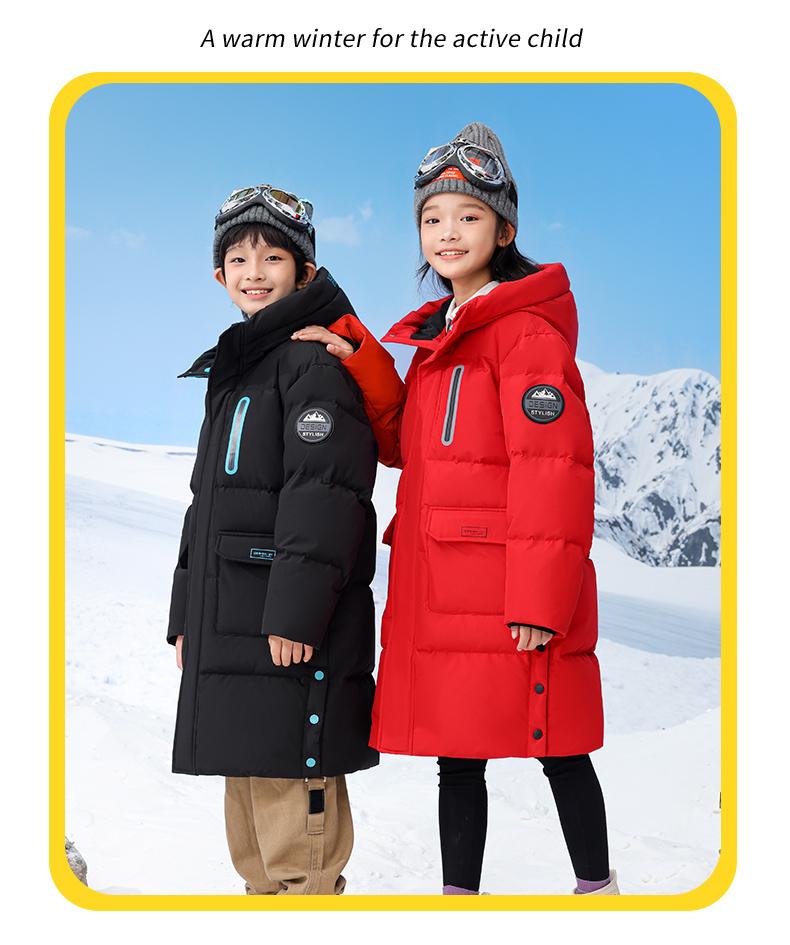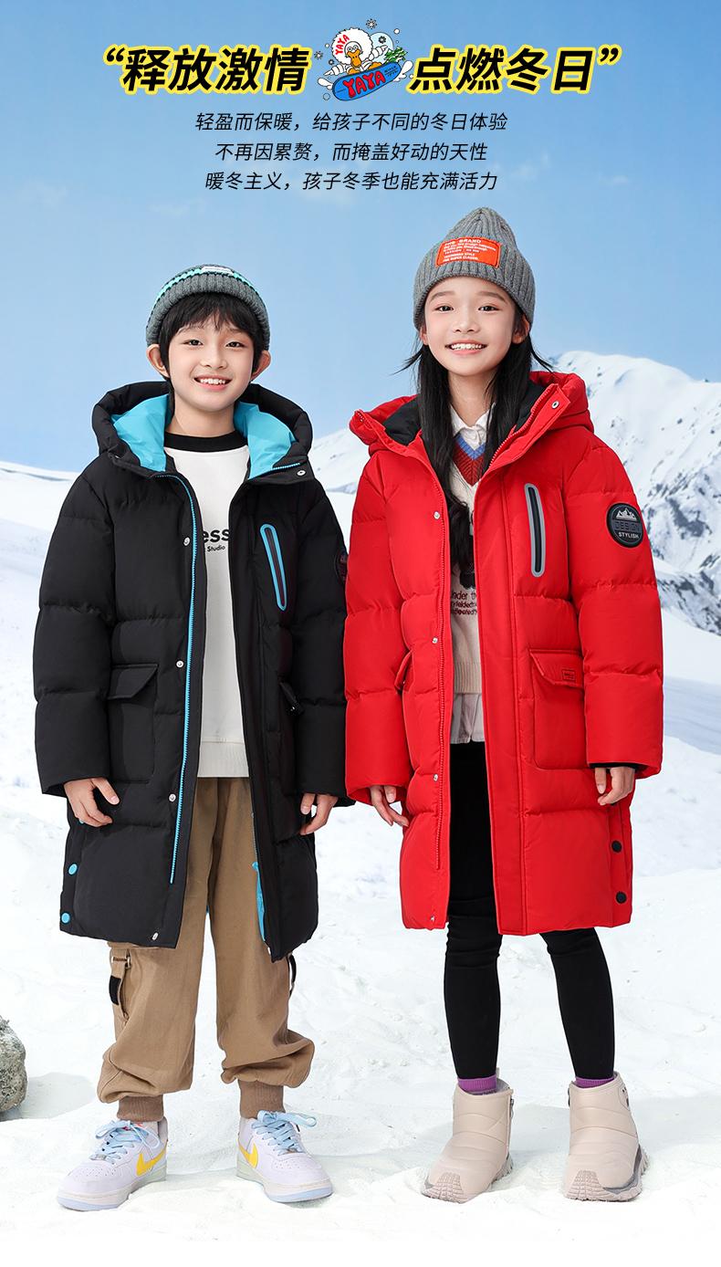 Chaqueta de plumón para niños Duck Children's Wear, invierno 2024, nueva chaqueta informal con capucha de longitud media a la moda para niños y niñas.