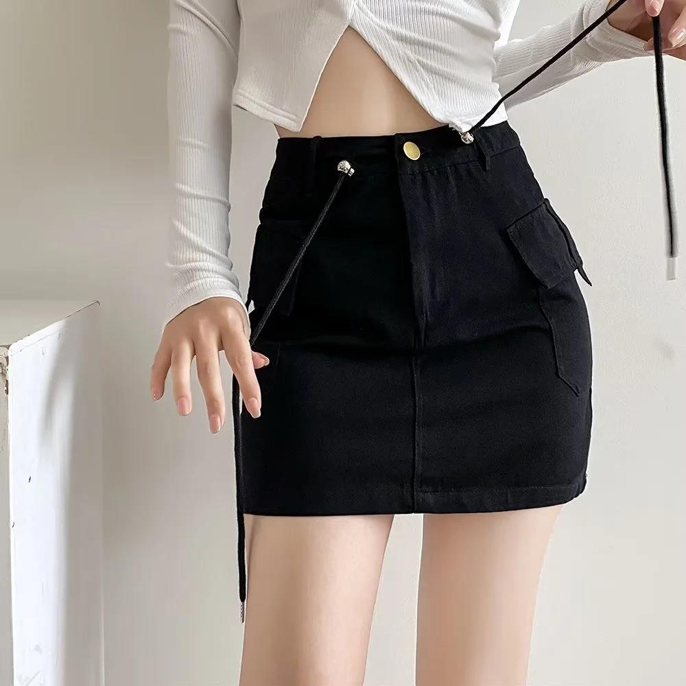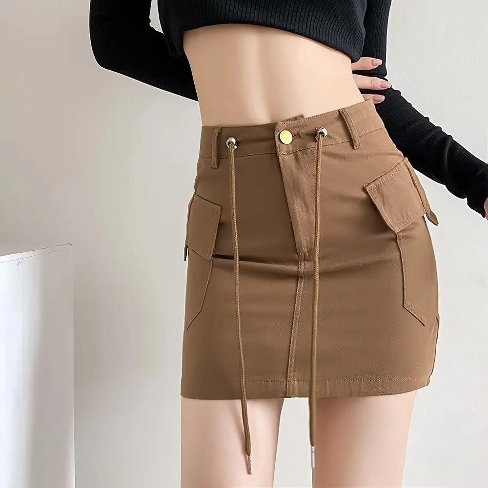 Falda de trabajo para mujer, primavera y otoño de 2024, nueva falda americana retro de cintura alta en forma de A, falda de media cadera, verano