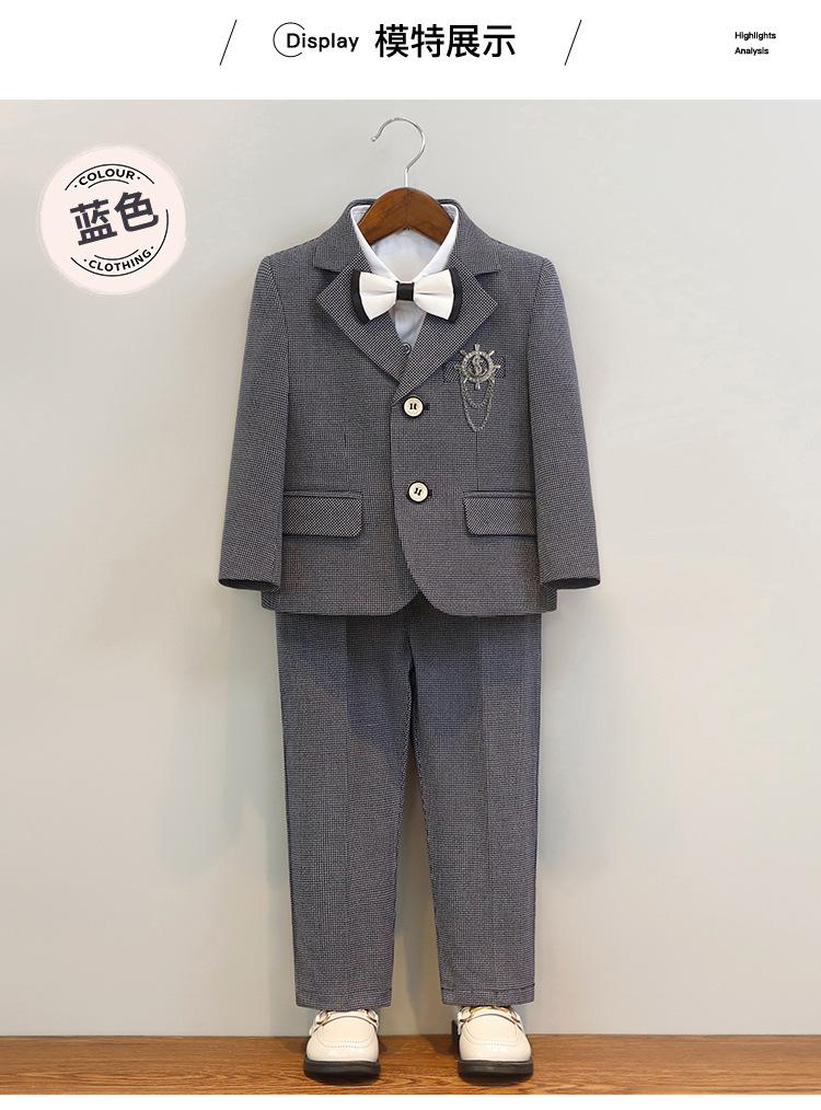 6-piece blue suit set (white shirt + jacket + vest + trousers + bow tie + brooch)