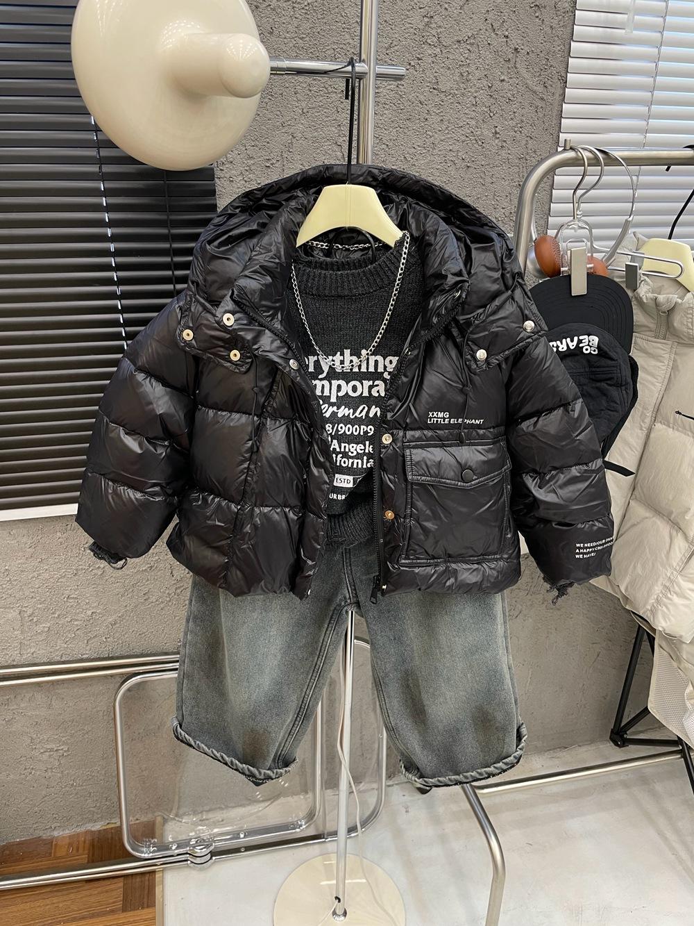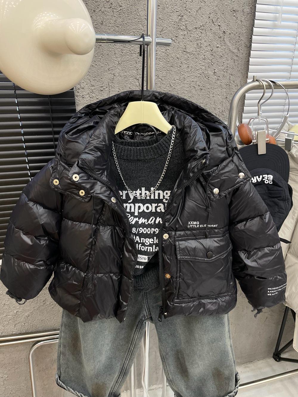 Chamarra Impermeable Brillante con Capucha sin Lavado Facial Plumón de Pato Blanco 2024 Invierno Nuevo Chaqueta de Plumón Coreana para Niños Trendy