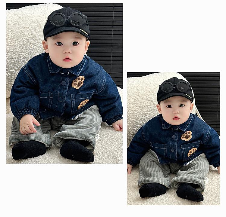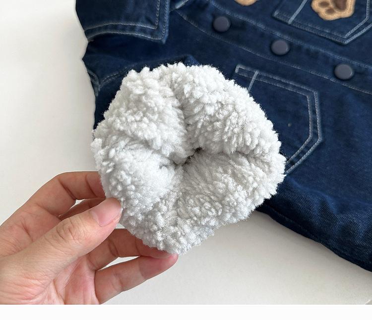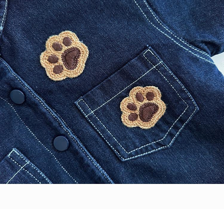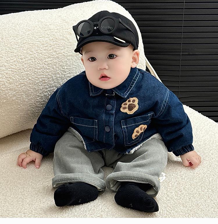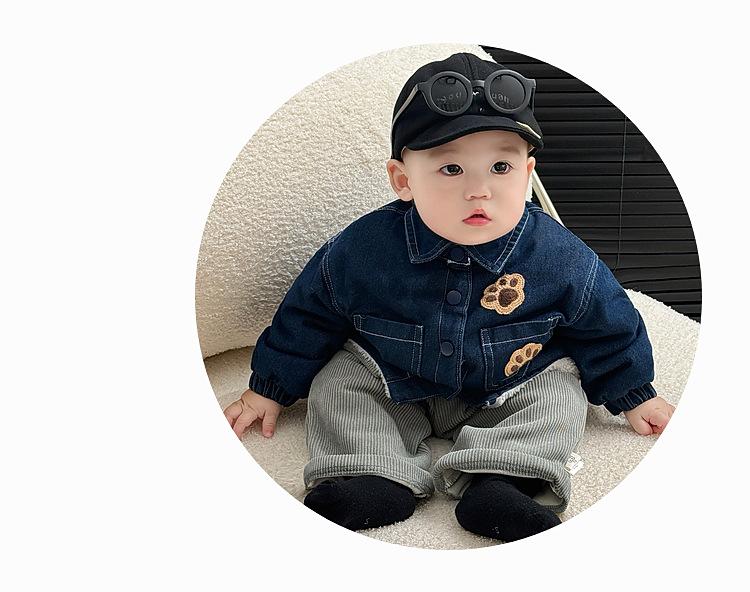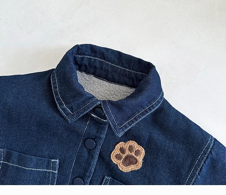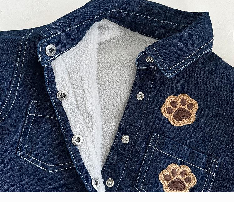 Ropa de Invierno para Niños Chaqueta de Mezclilla Forrada de Polar con Dibujos Animados Huellitas Pequeñas Estilo Occidental para Hombre Bebé Camisa Gruesa Top Cálido