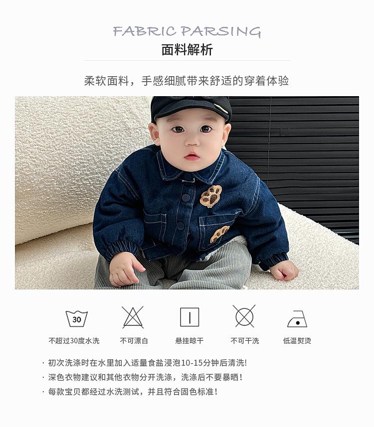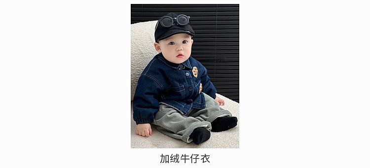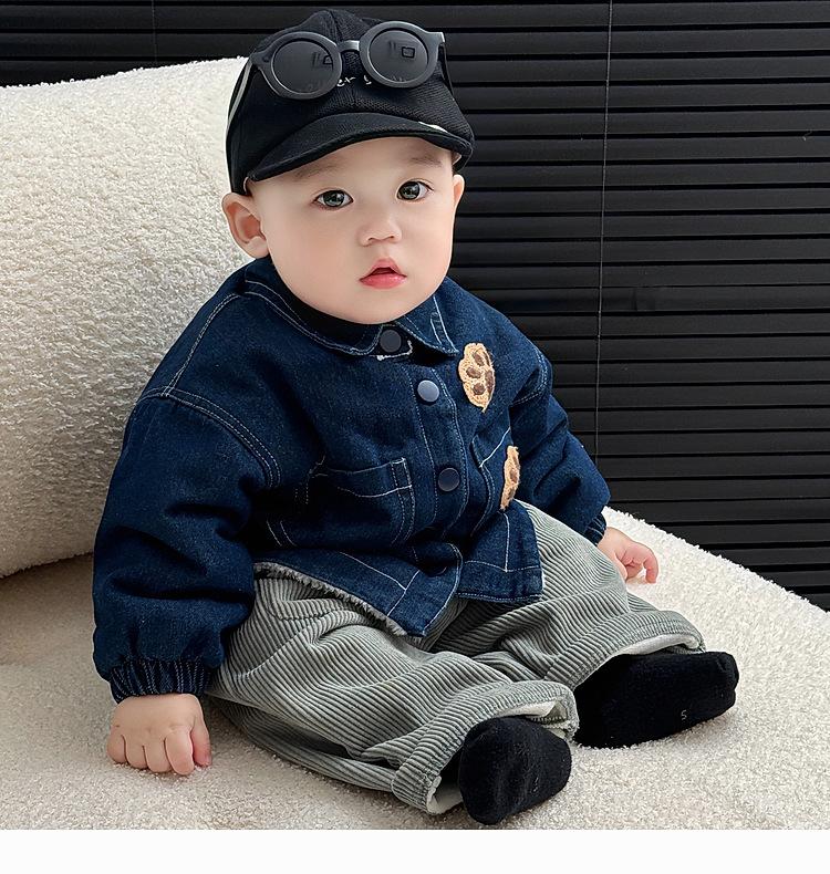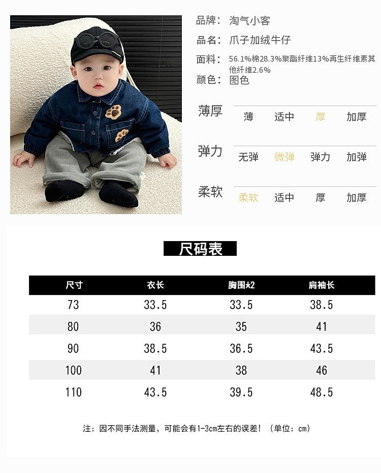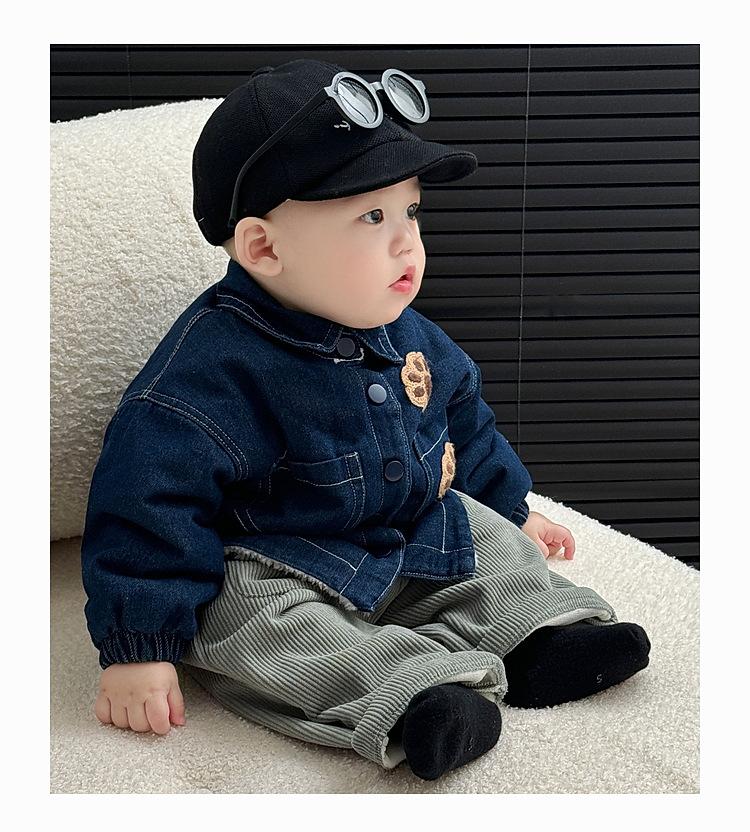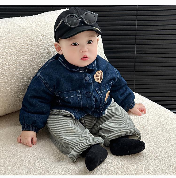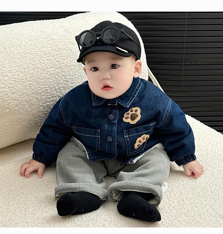 Ropa de Invierno para Niños Chaqueta de Mezclilla Forrada de Polar con Dibujos Animados Huellitas Pequeñas Estilo Occidental para Hombre Bebé Camisa Gruesa Top Cálido