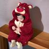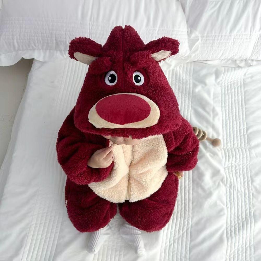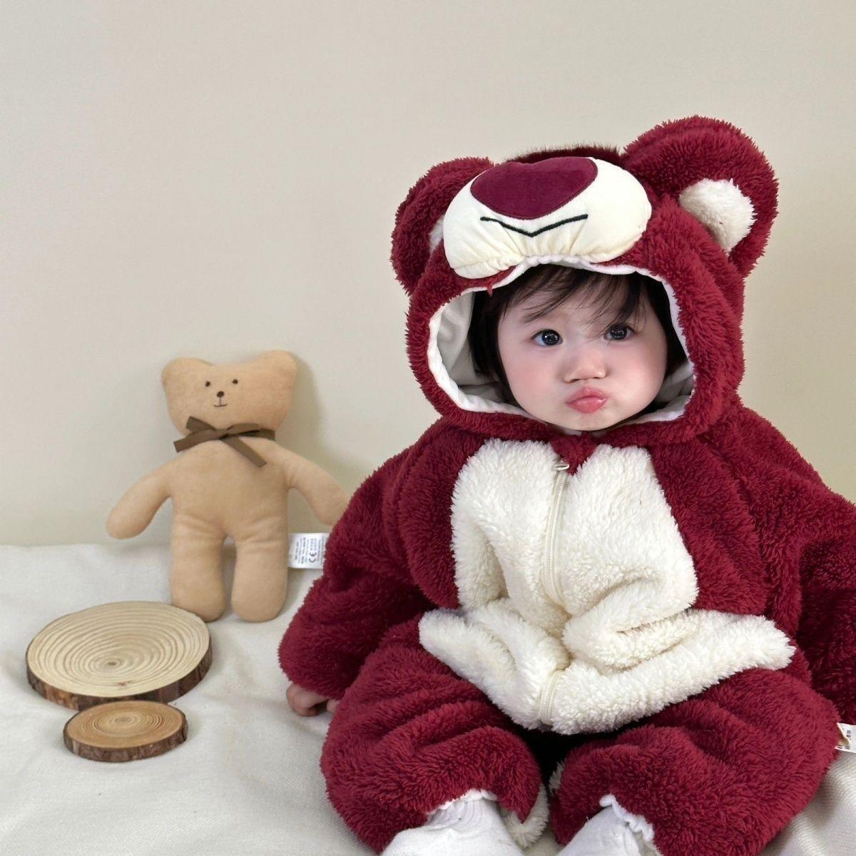 Ropa de invierno para bebé, ropa combinada para niños y bebés, ropa acolchada de algodón grueso con forro polar, ropa de escalada de oso de fresa súper linda