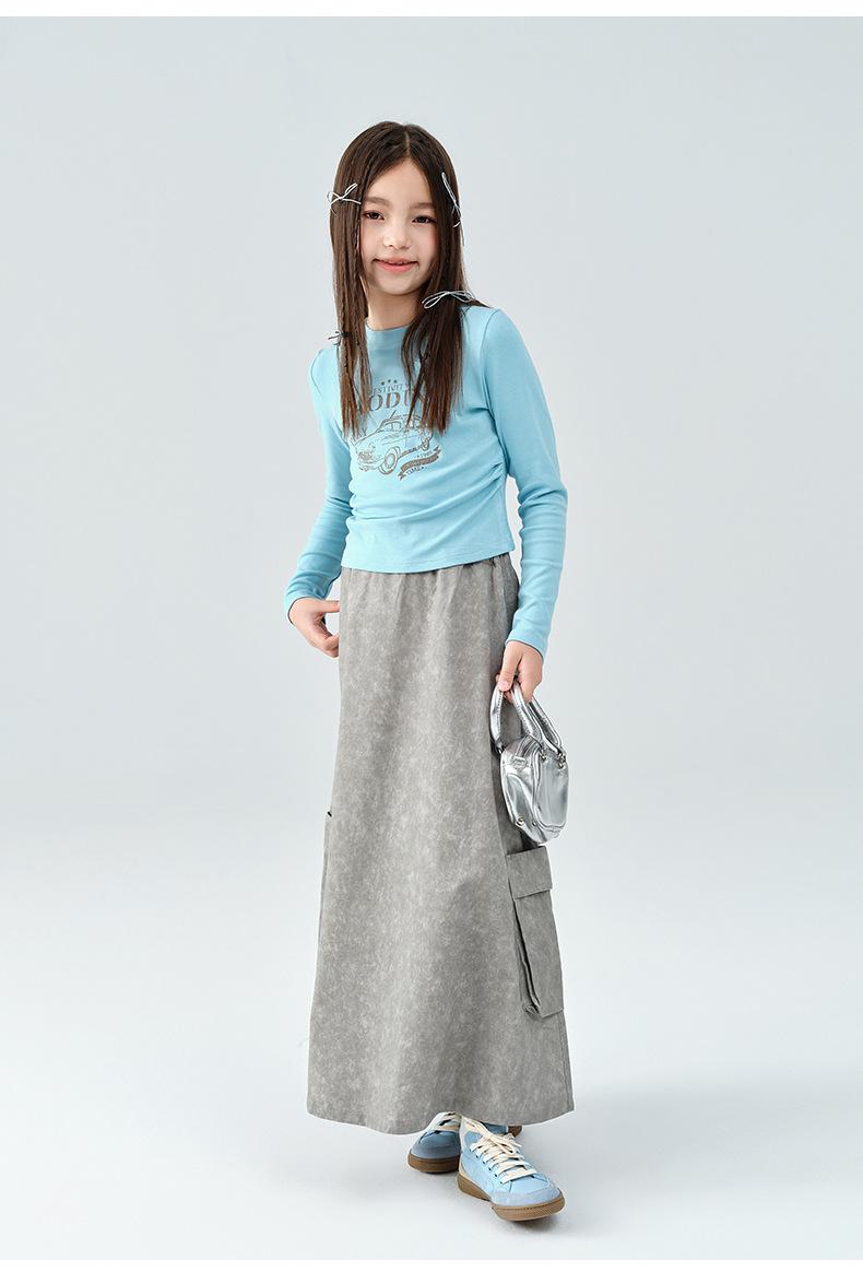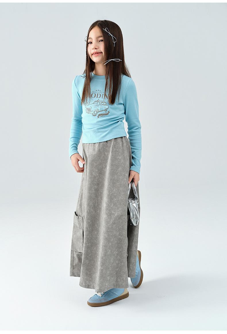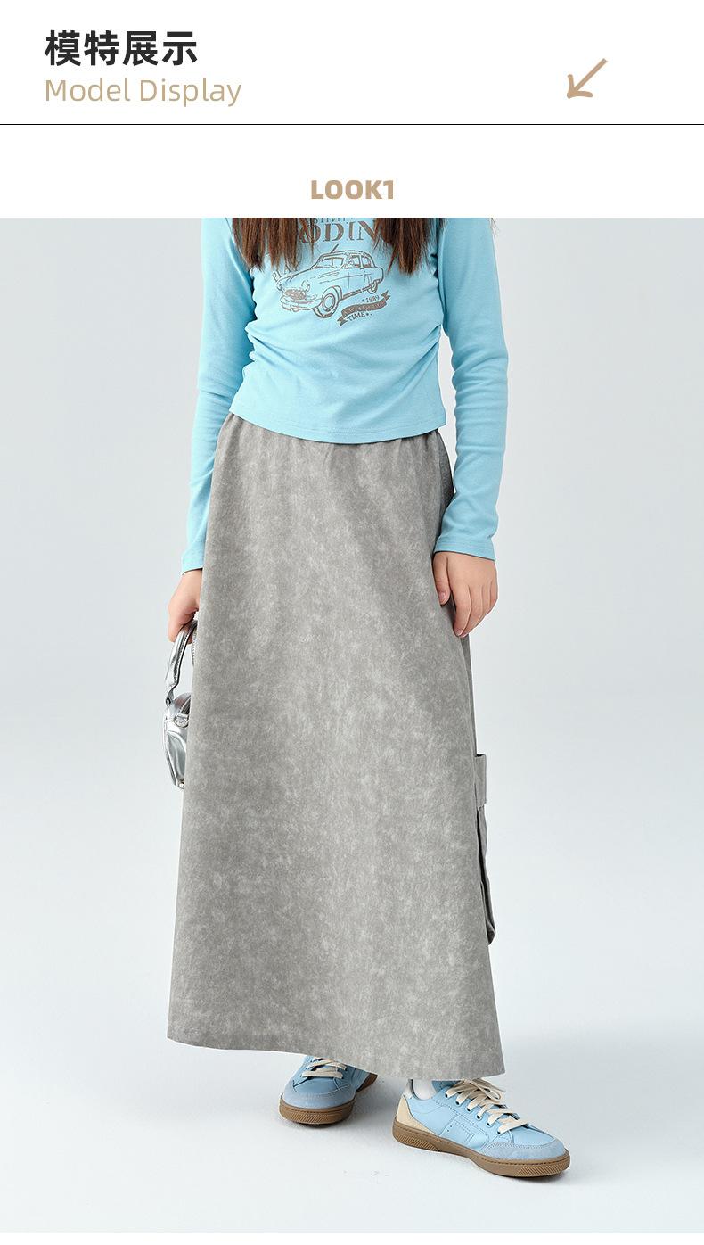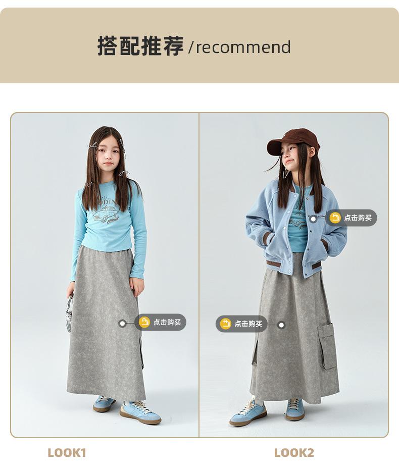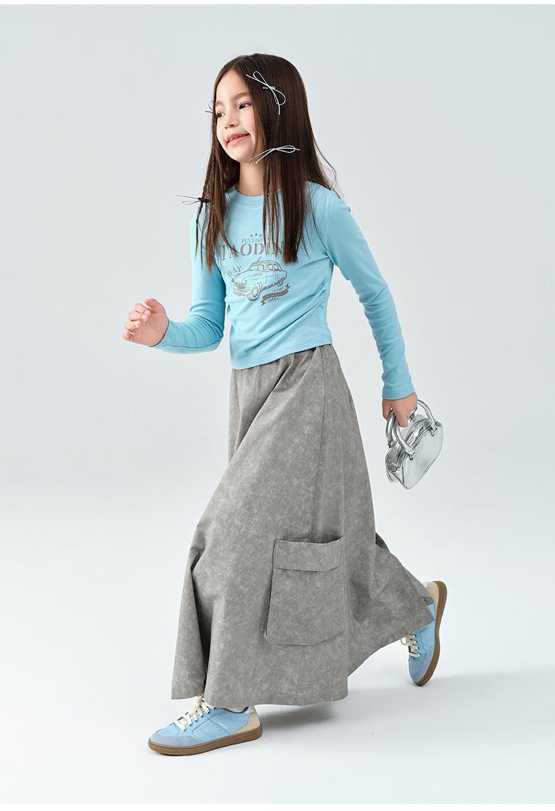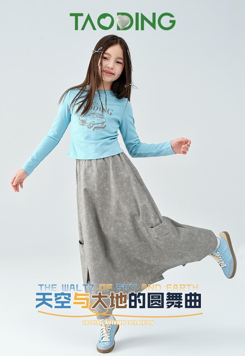 Falda de niña de Amoy Otoño Nuevo Estilo Artístico Retro Suelta en A Mediana y Niño Grande Suelta Vestido Degradado