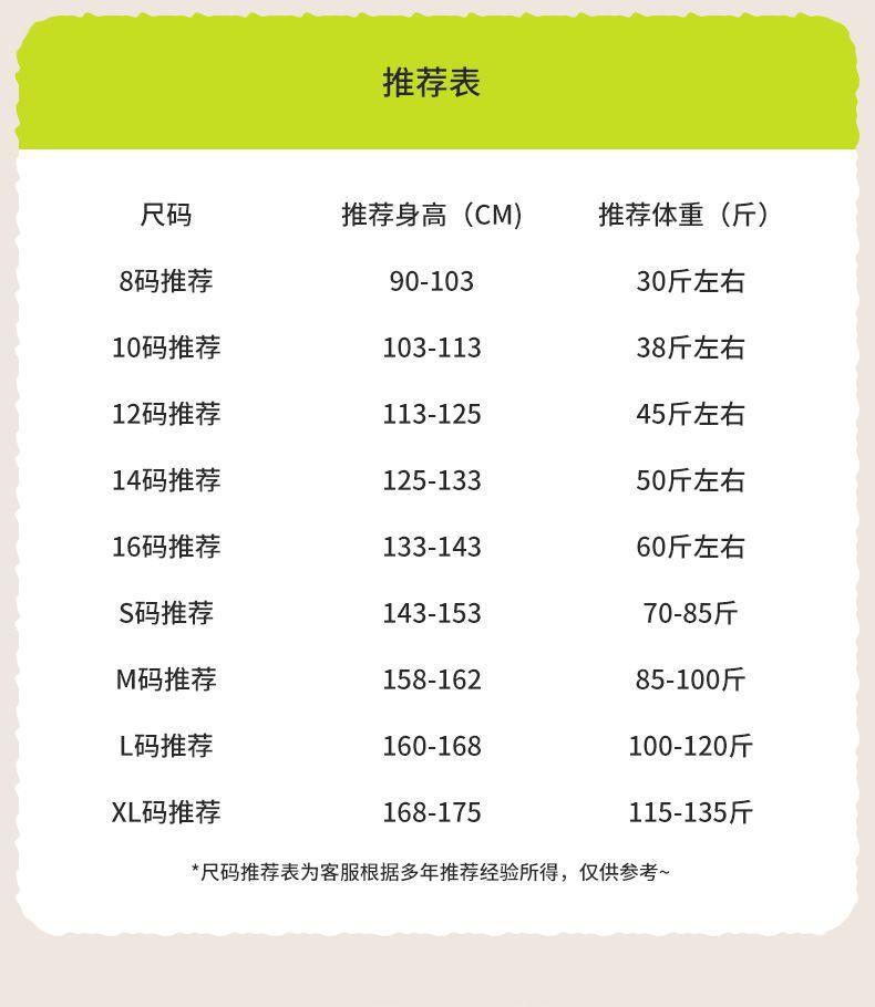 Children's size 10 (height 100-110cm), Children's size 12 (height 110-125cm), Children's size 14 (height 120-1...