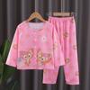 Pijama de Primavera para Niños Lindo Cárdigan de Dibujos Animados Solapa Manga Larga Ropa de Casa para Niños Conjunto de Dos Piezas