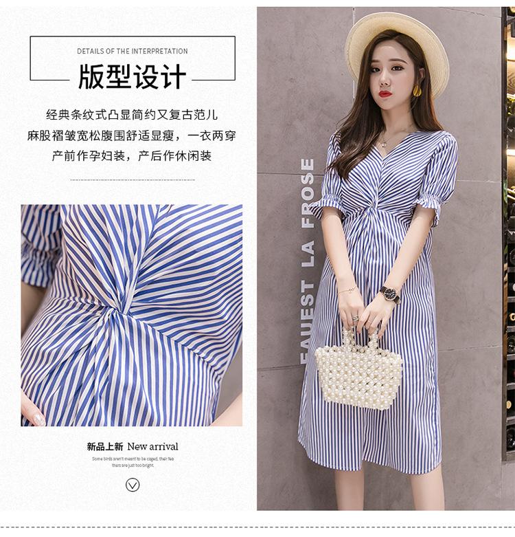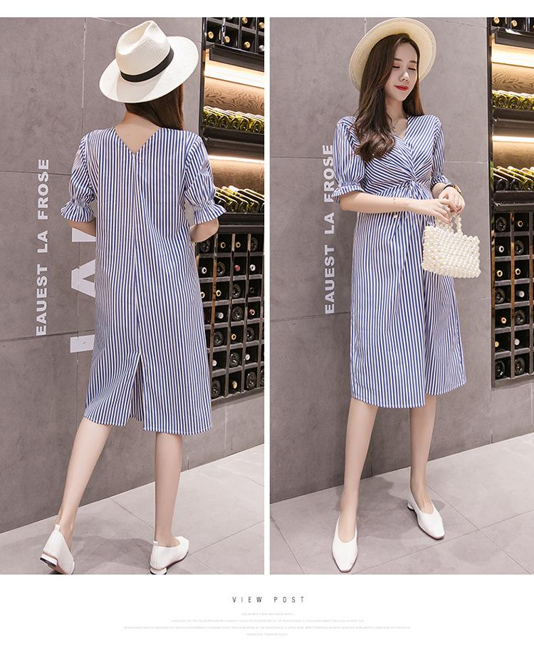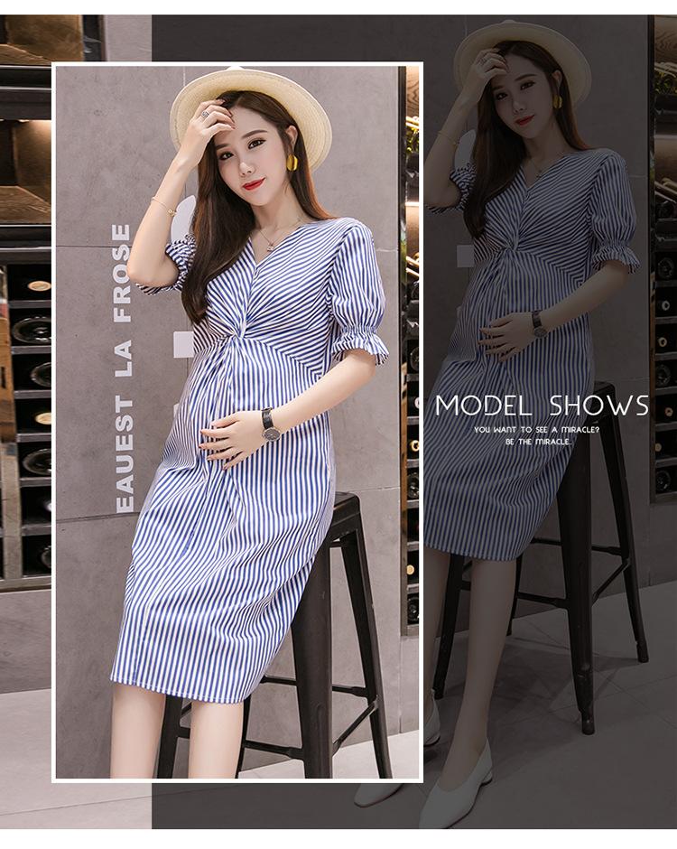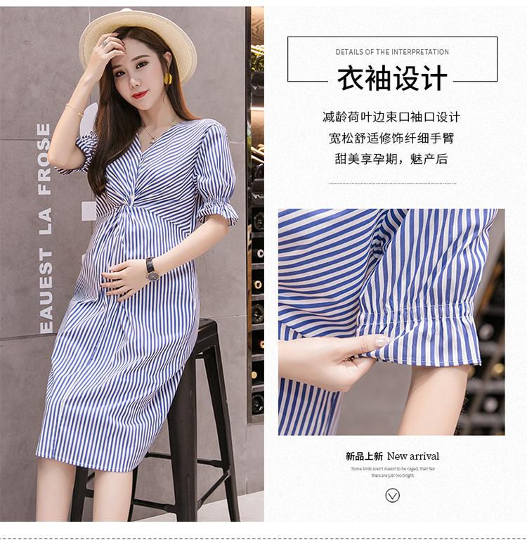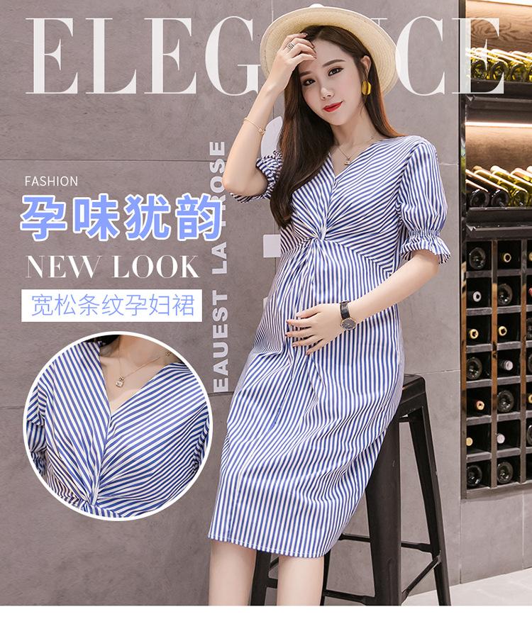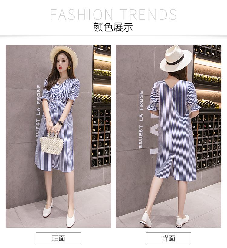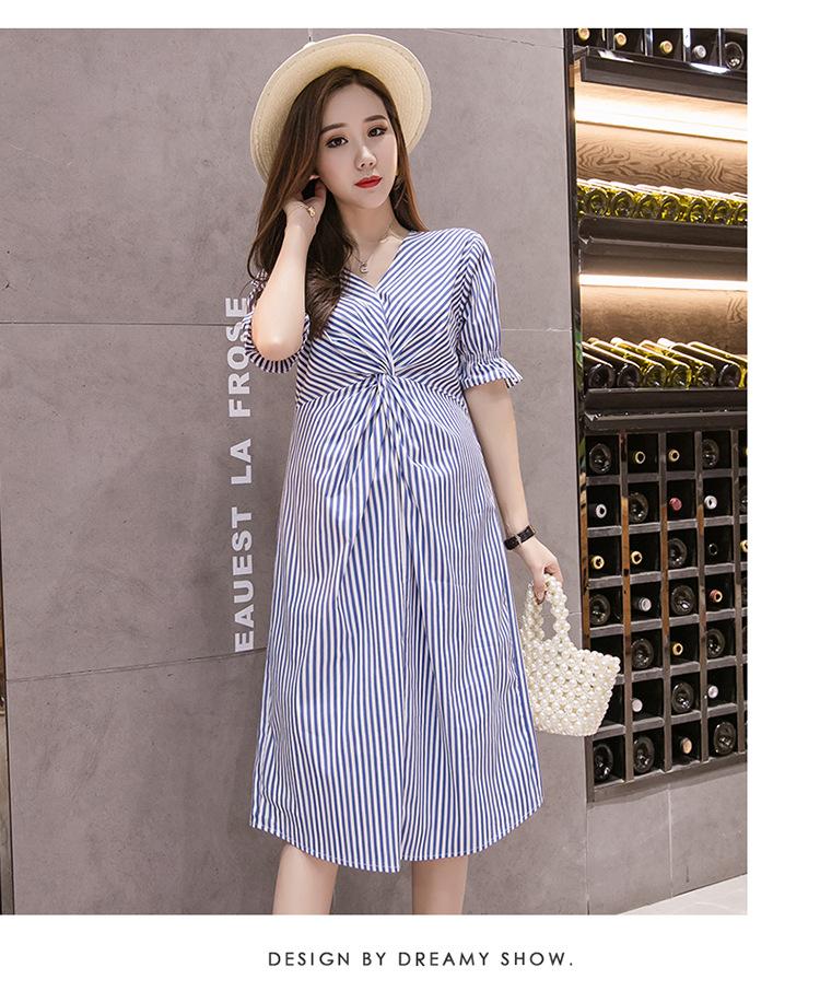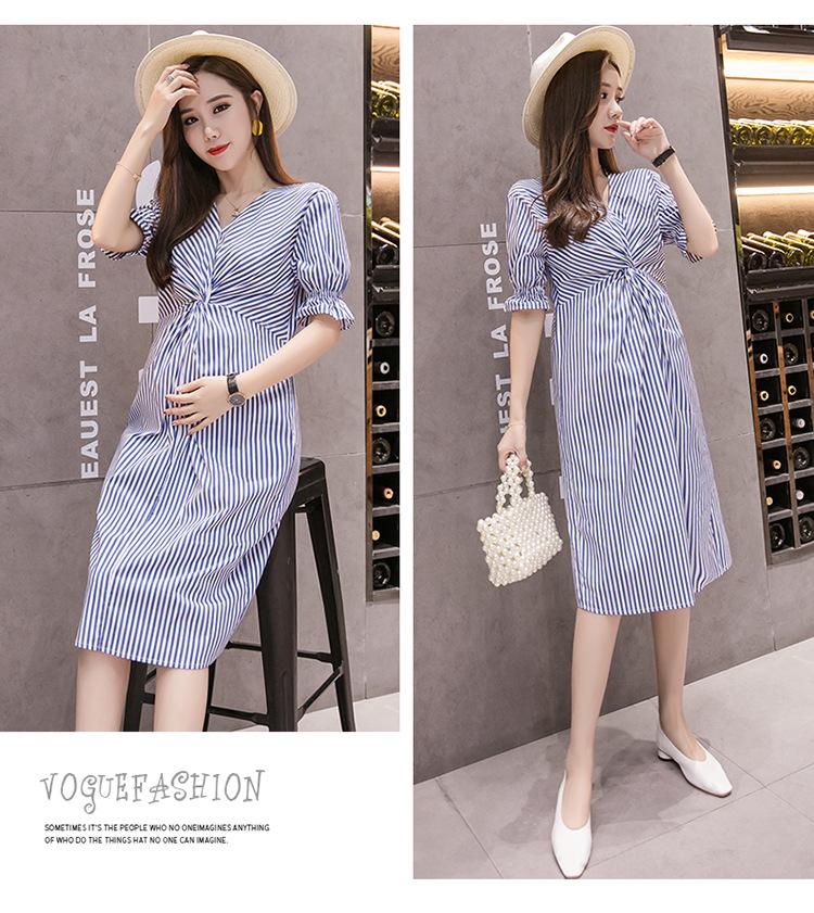 Vestido de maternidad de verano 2022, nueva moda coreana, con rayas verticales y cuello en V para embarazadas