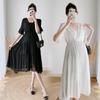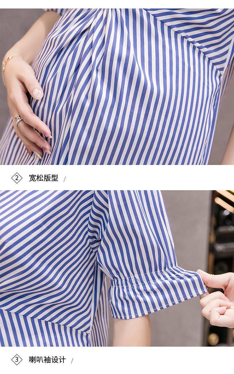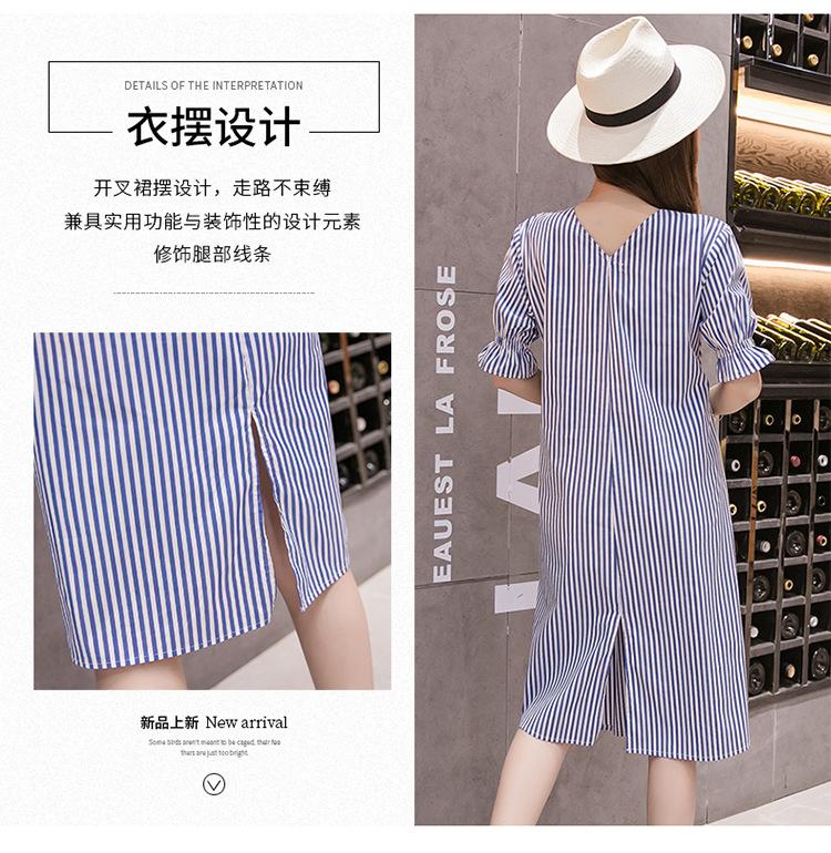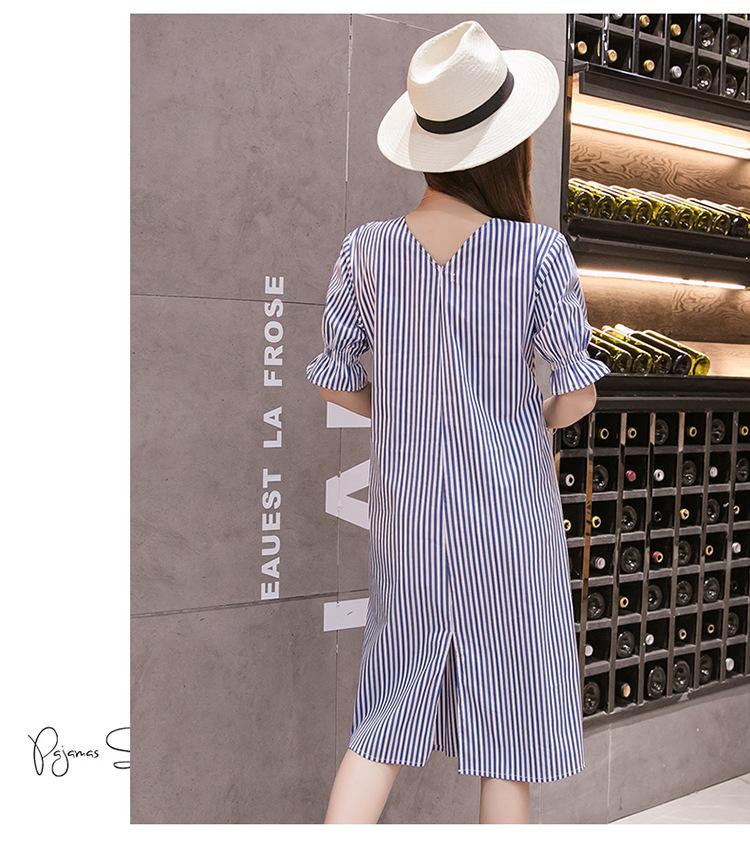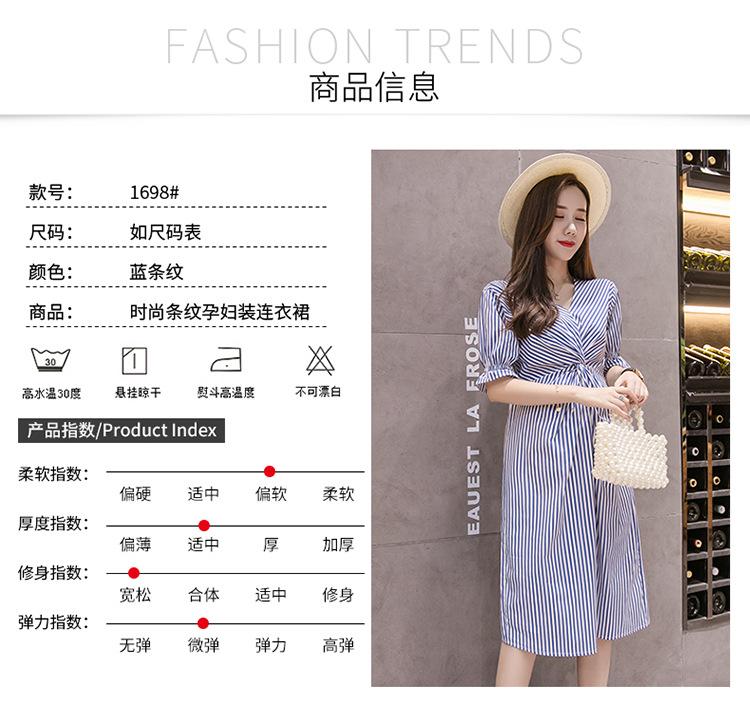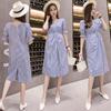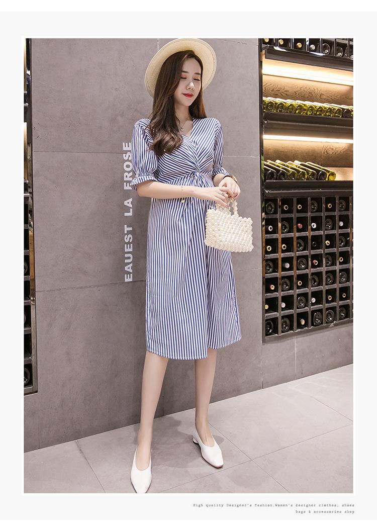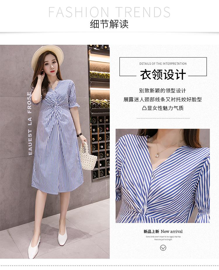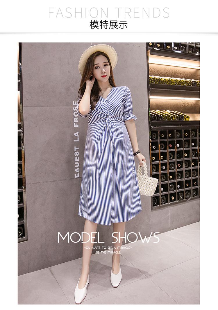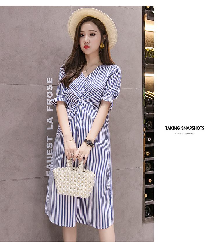 Vestido de maternidad de verano 2022, nueva moda coreana, con rayas verticales y cuello en V para embarazadas