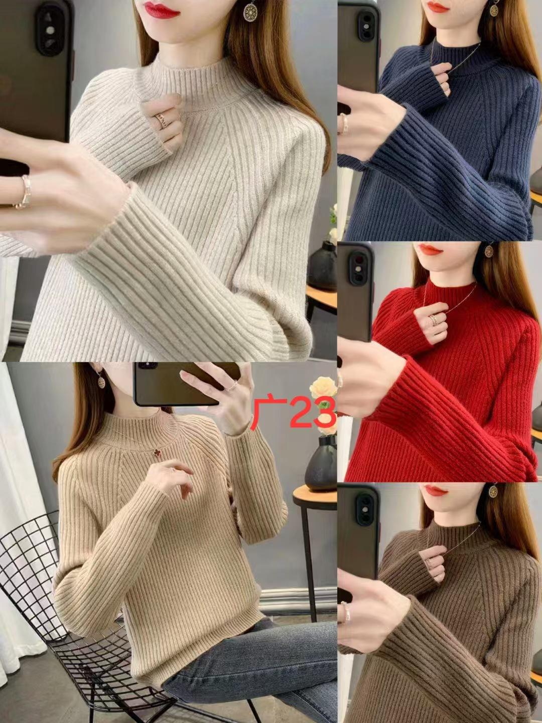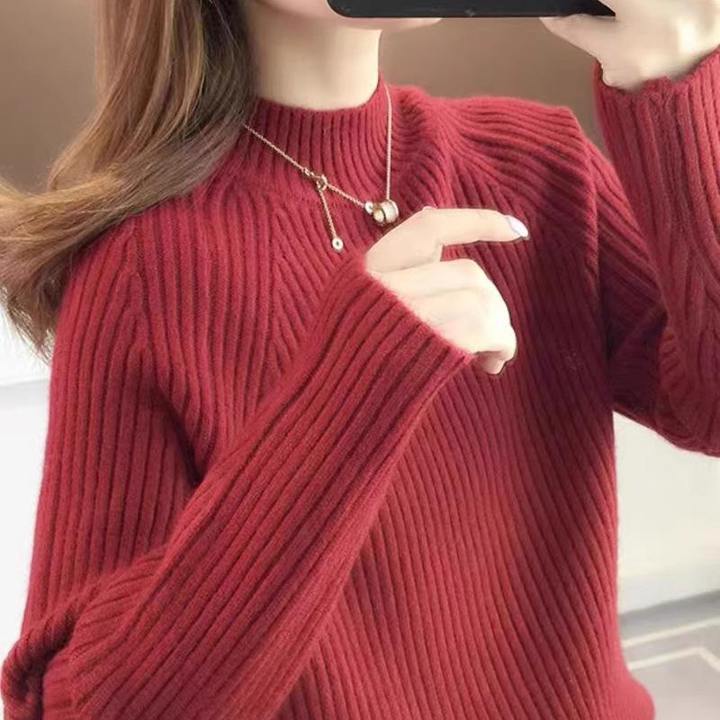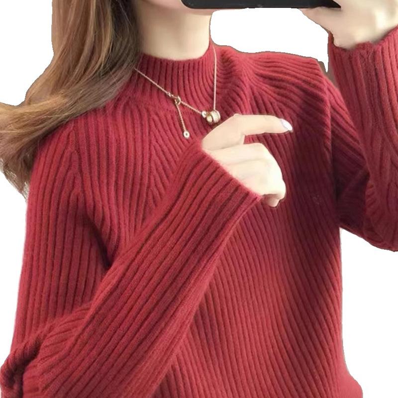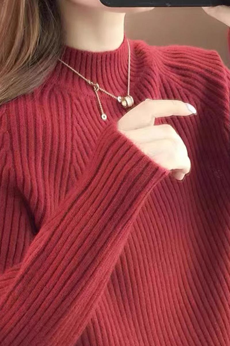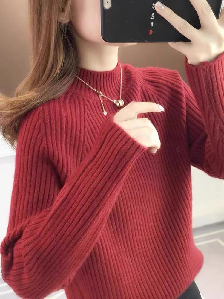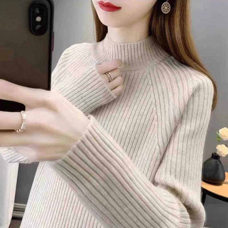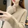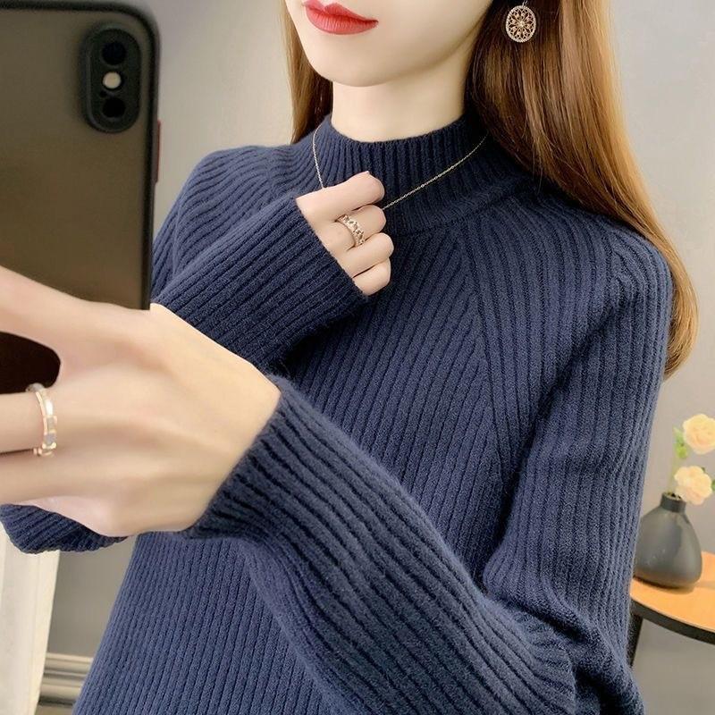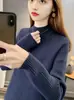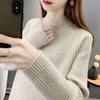 Suéter de color sólido, camisa básica para mujer, top de otoño e invierno, suéter adelgazante de manga larga con cuello alto medio, top estilo occidental