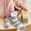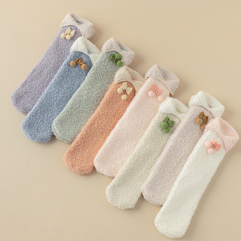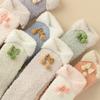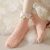 Calcetines cálidos de lana coral con lazo para mujer, calcetines de tubo medio de otoño e invierno, calcetines de suelo para dormir con forro polar grueso para niñas