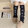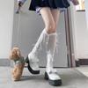 Calcetines de pantorrilla Lolita con bola de pelo de punto trenzado de pantorrilla para invierno JK para niña con calcetines largos de tubo de 40 cm
