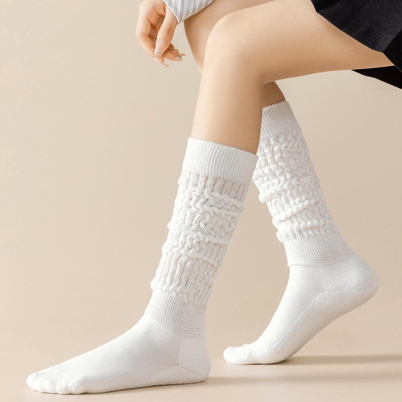 Calcetines blancos hasta la pantorrilla para mujer, otoño e invierno, calcetines de media caña, calcetines gruesos de rizo, calcetines de algodón cálidos para invierno, populares en internet, Y2K, calentadores de pierna