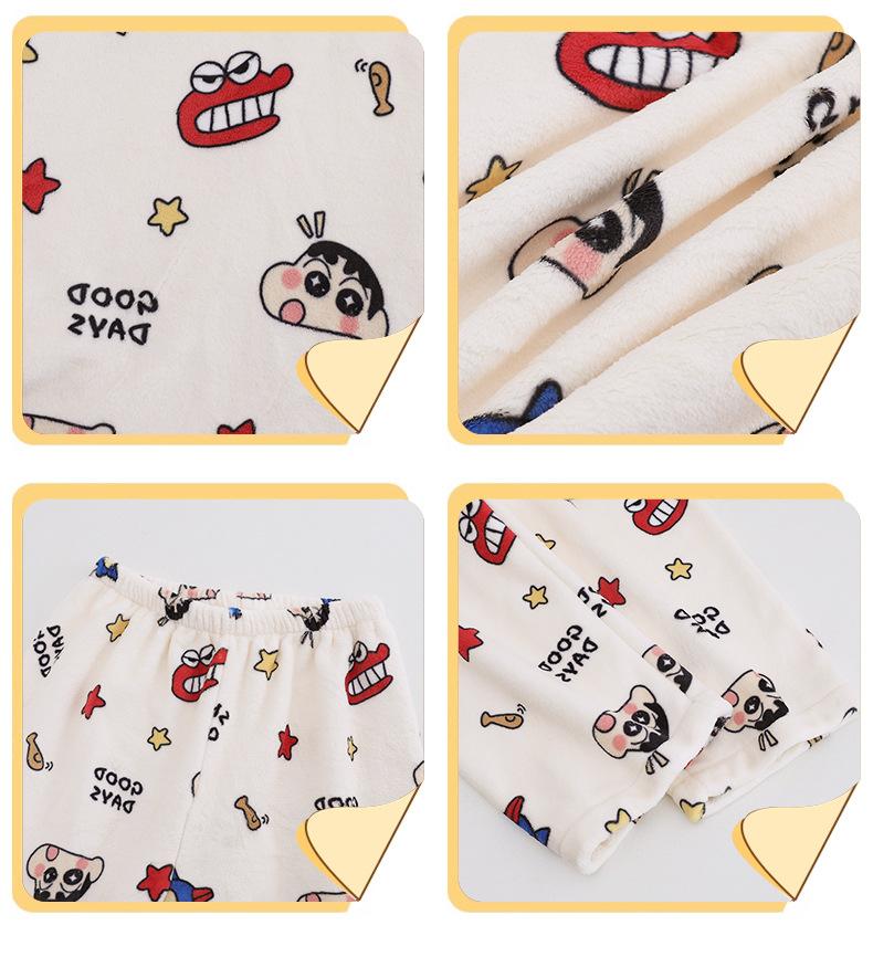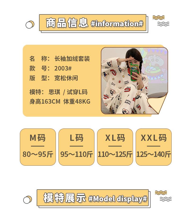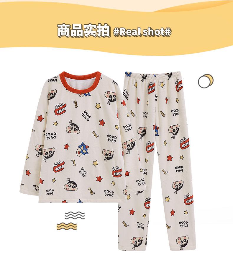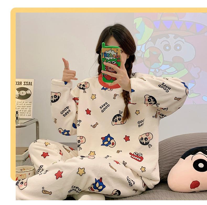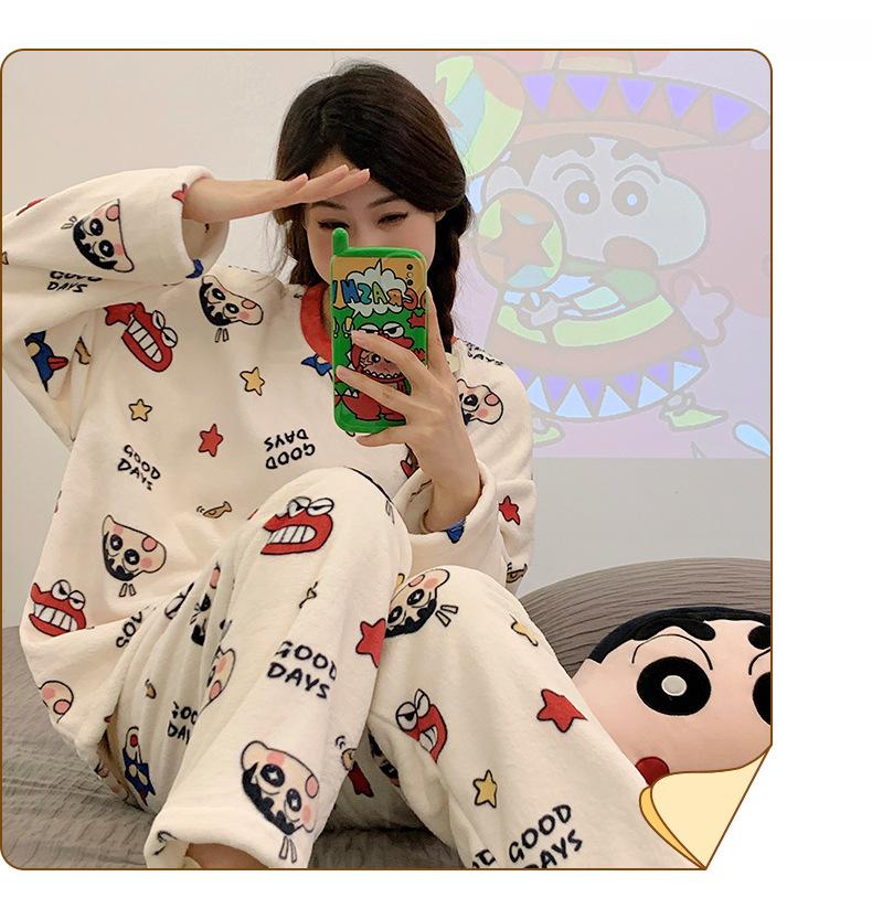 Pijamas de otoño e invierno 2024 para mujer, de manga larga, de forro polar coral, con cuello redondo, de franela estampada con dibujos animados para estudiantes, ropa para el hogar