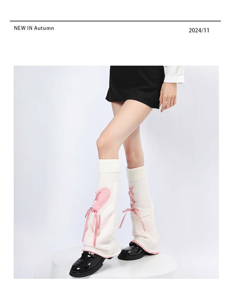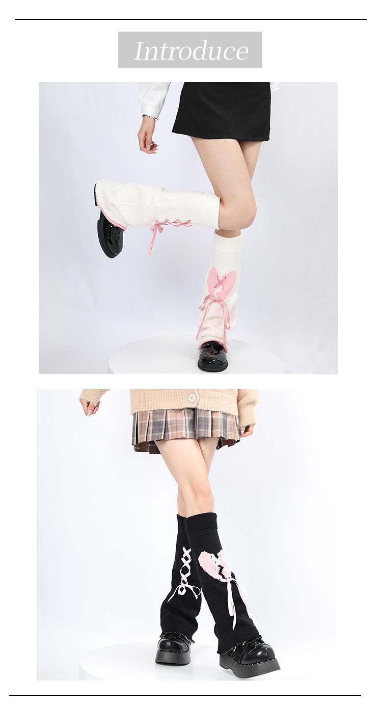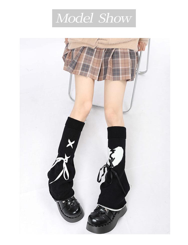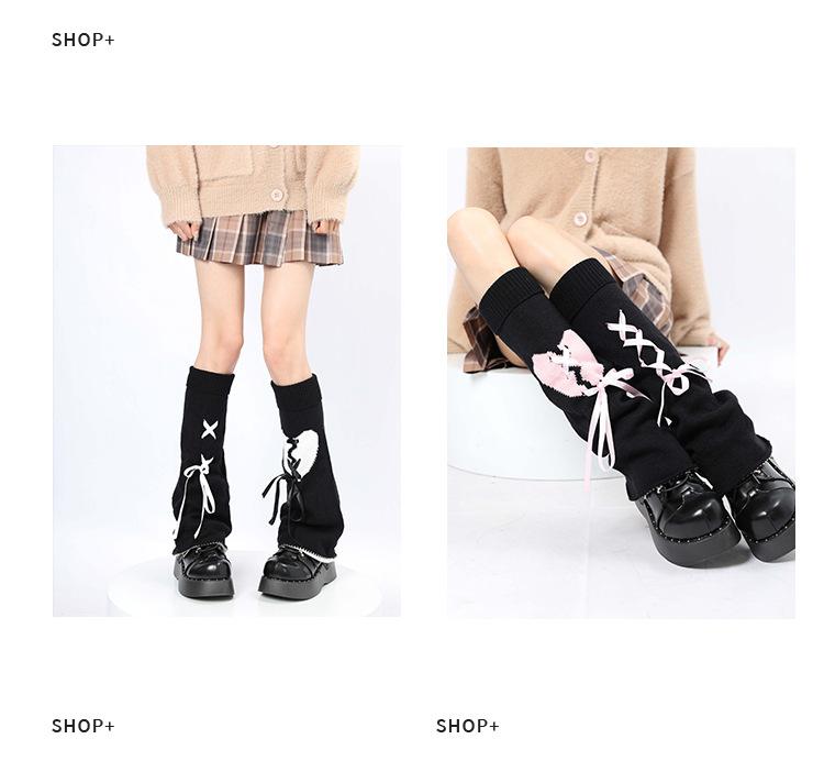Calcetines con tiras de lazo estilo japonés, estilo universitario, con cubierta de pierna ancha, calcetines apilables Lolita, cubierta de pie de punto para otoño e invierno.