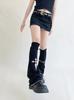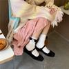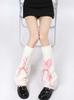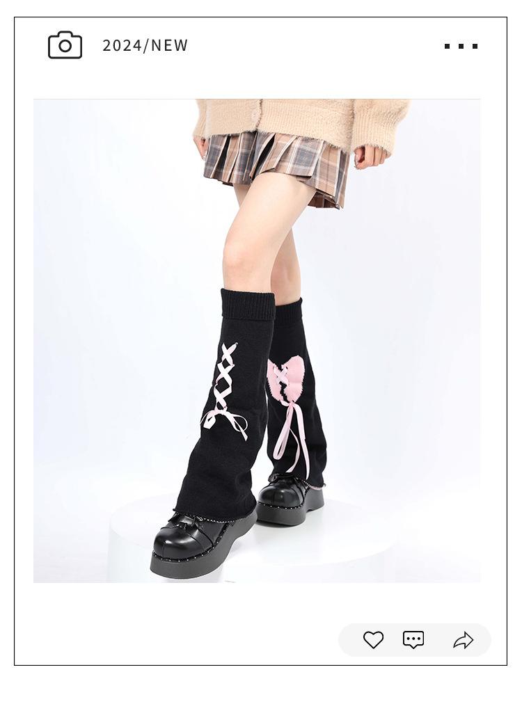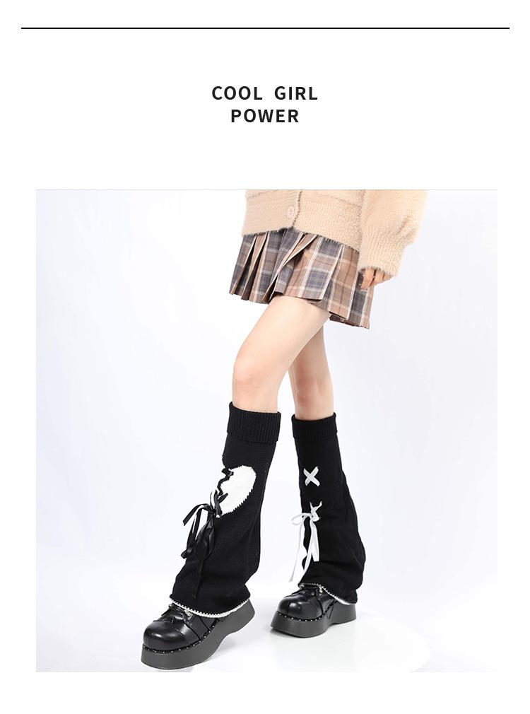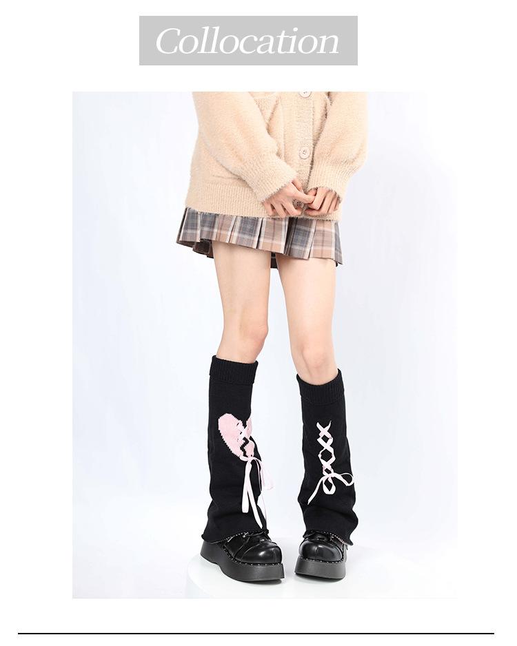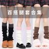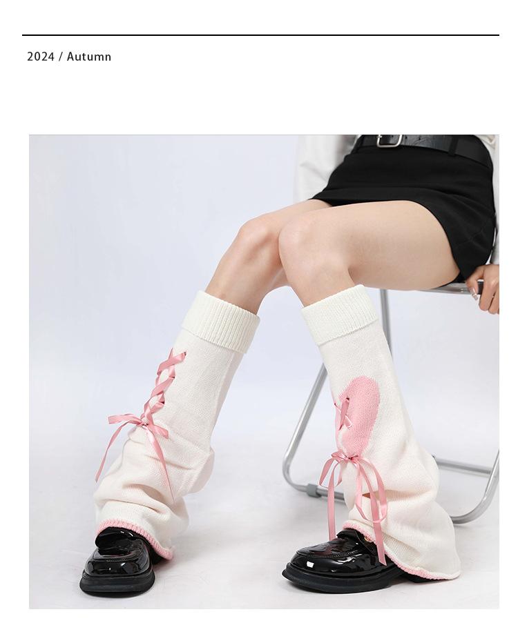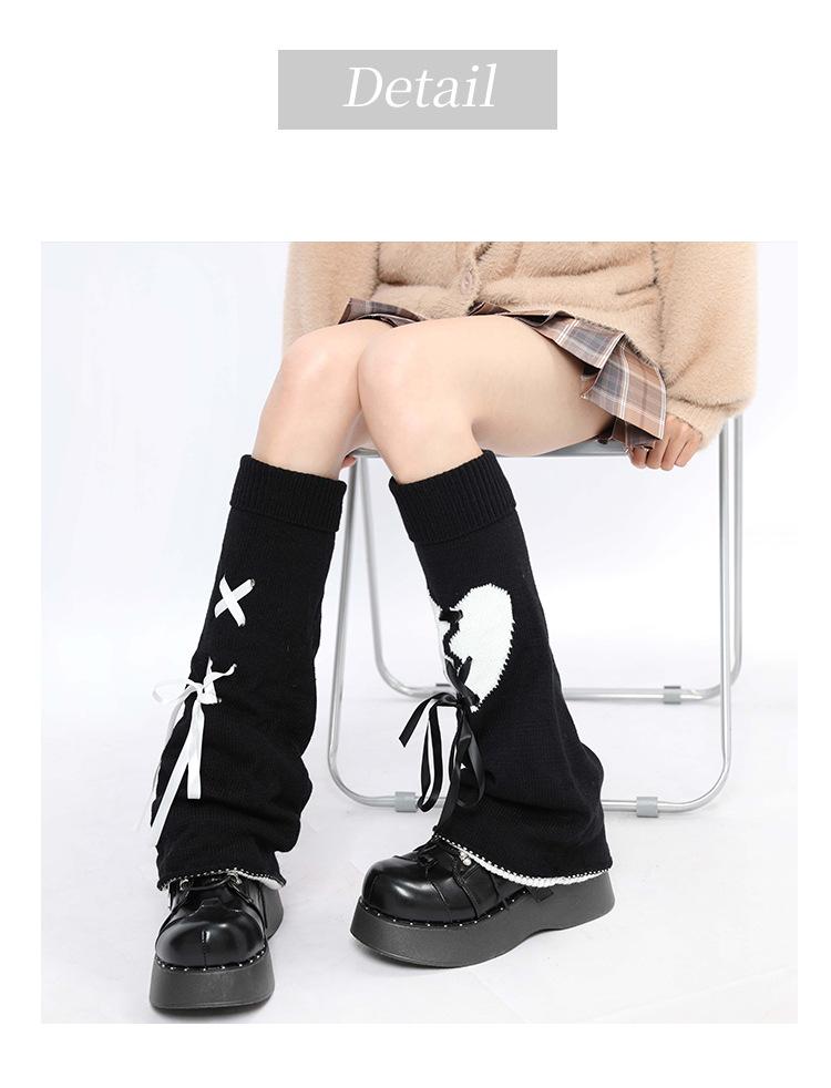 Calcetines con tiras de lazo estilo japonés, estilo universitario, con cubierta de pierna ancha, calcetines apilables Lolita, cubierta de pie de punto para otoño e invierno.