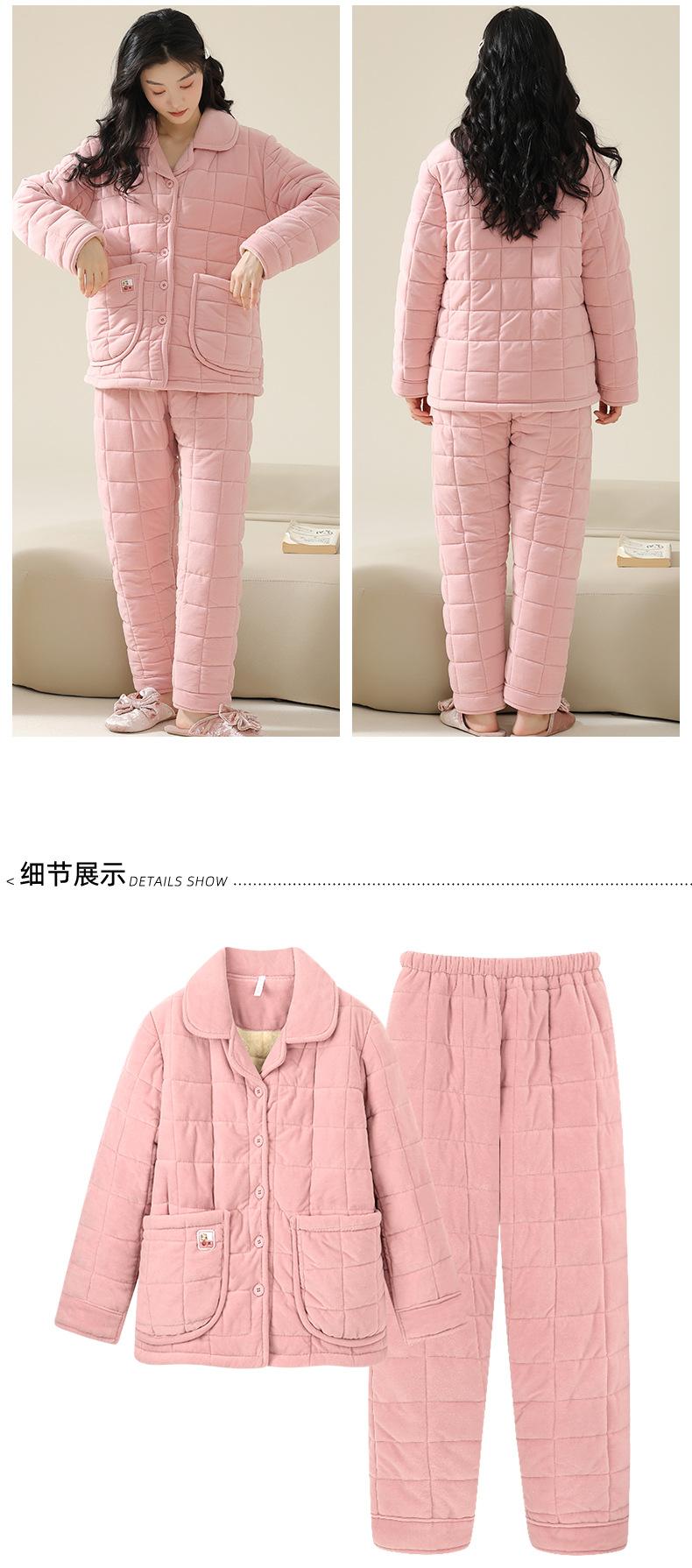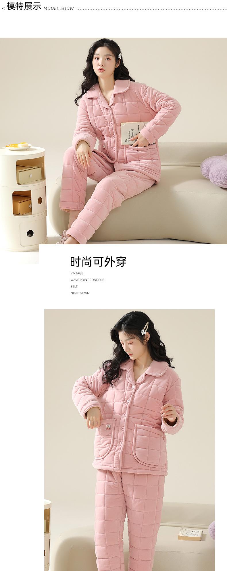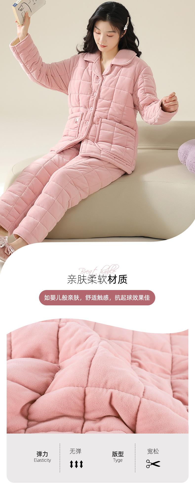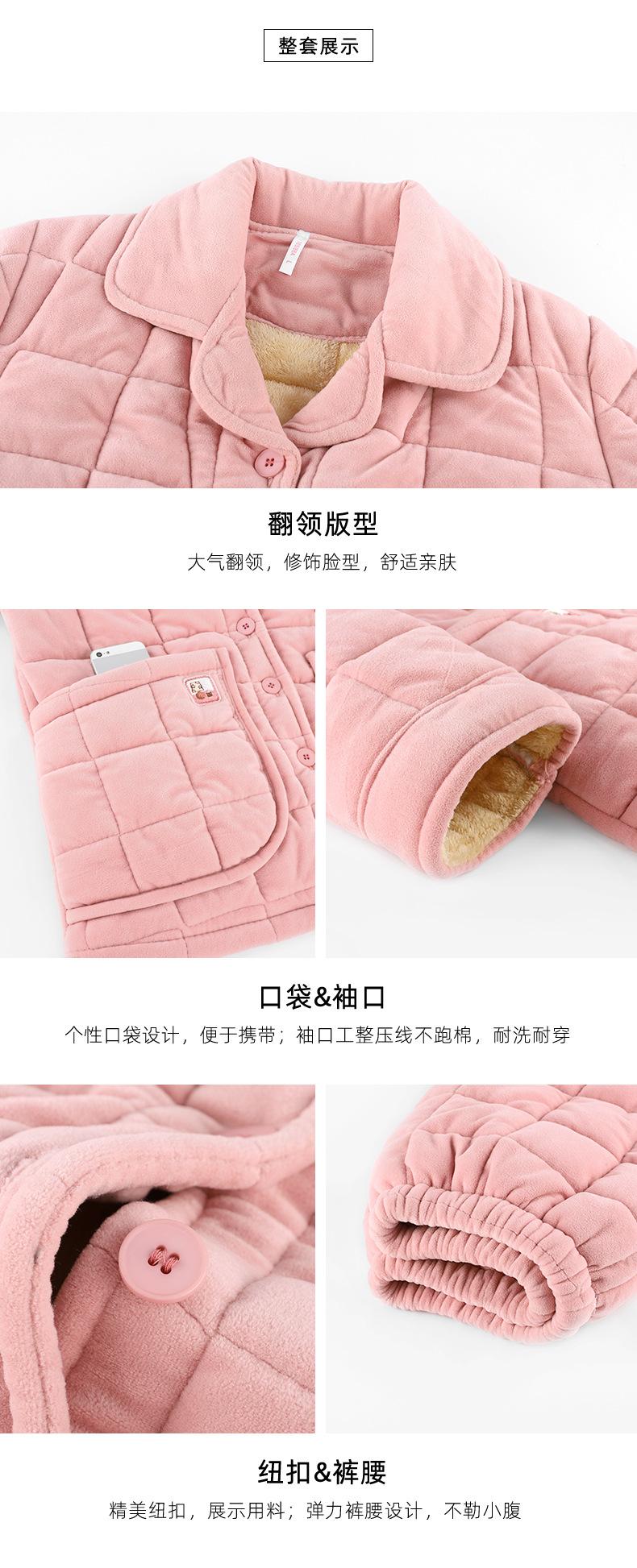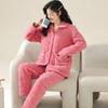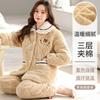 Pijamas de mujer cálidos con forro polar, de manga larga, de invierno, estilo dulce, ropa para el hogar, traje acolchado de terciopelo Bei Bei grueso de tres capas para mujer
