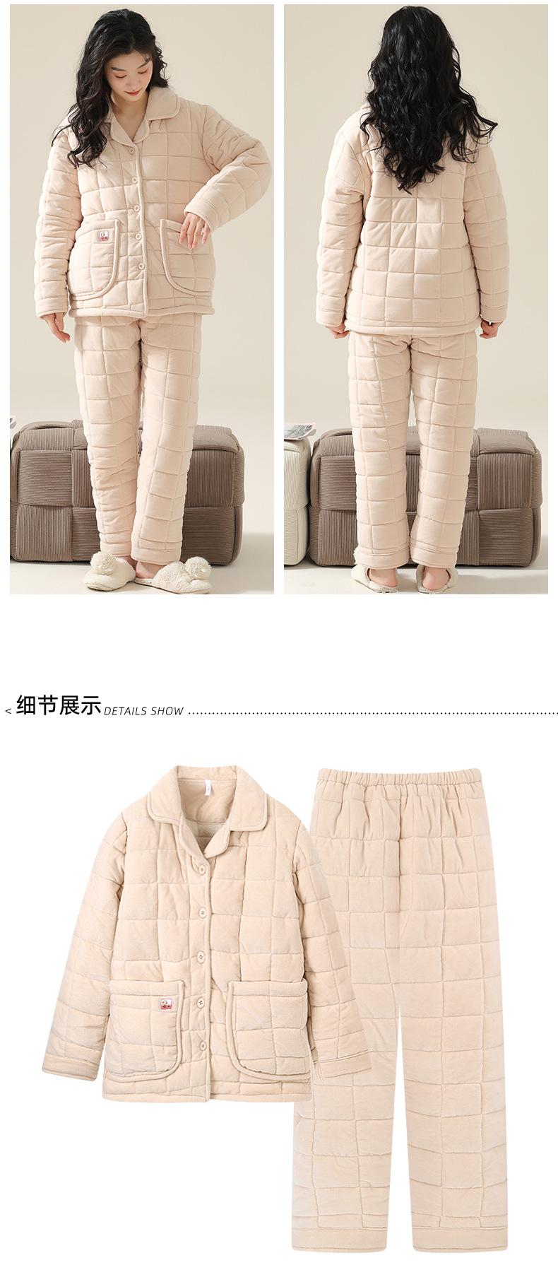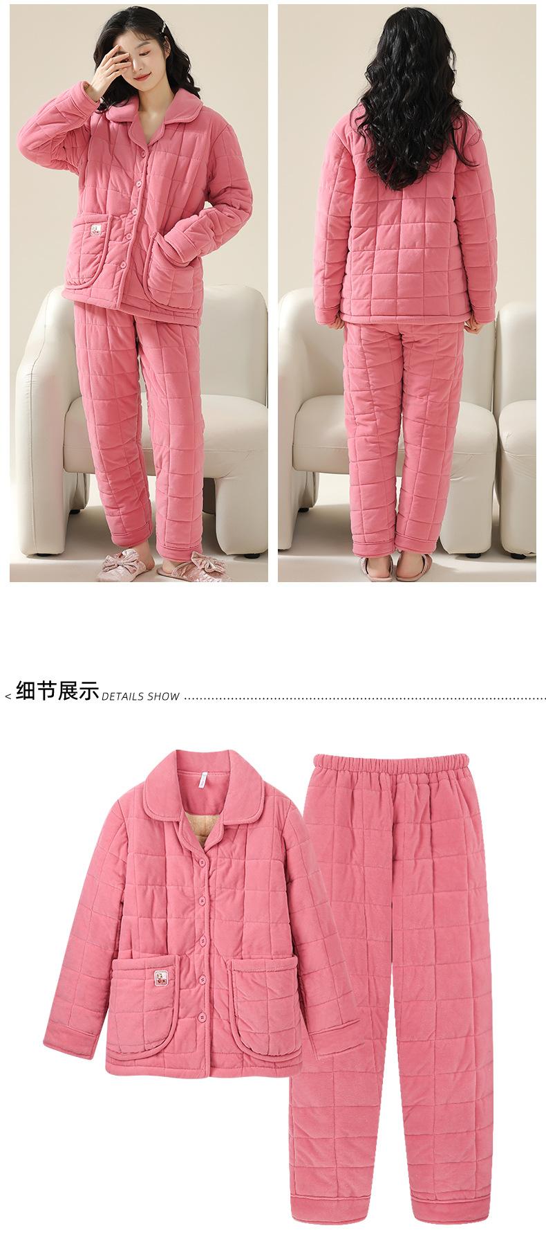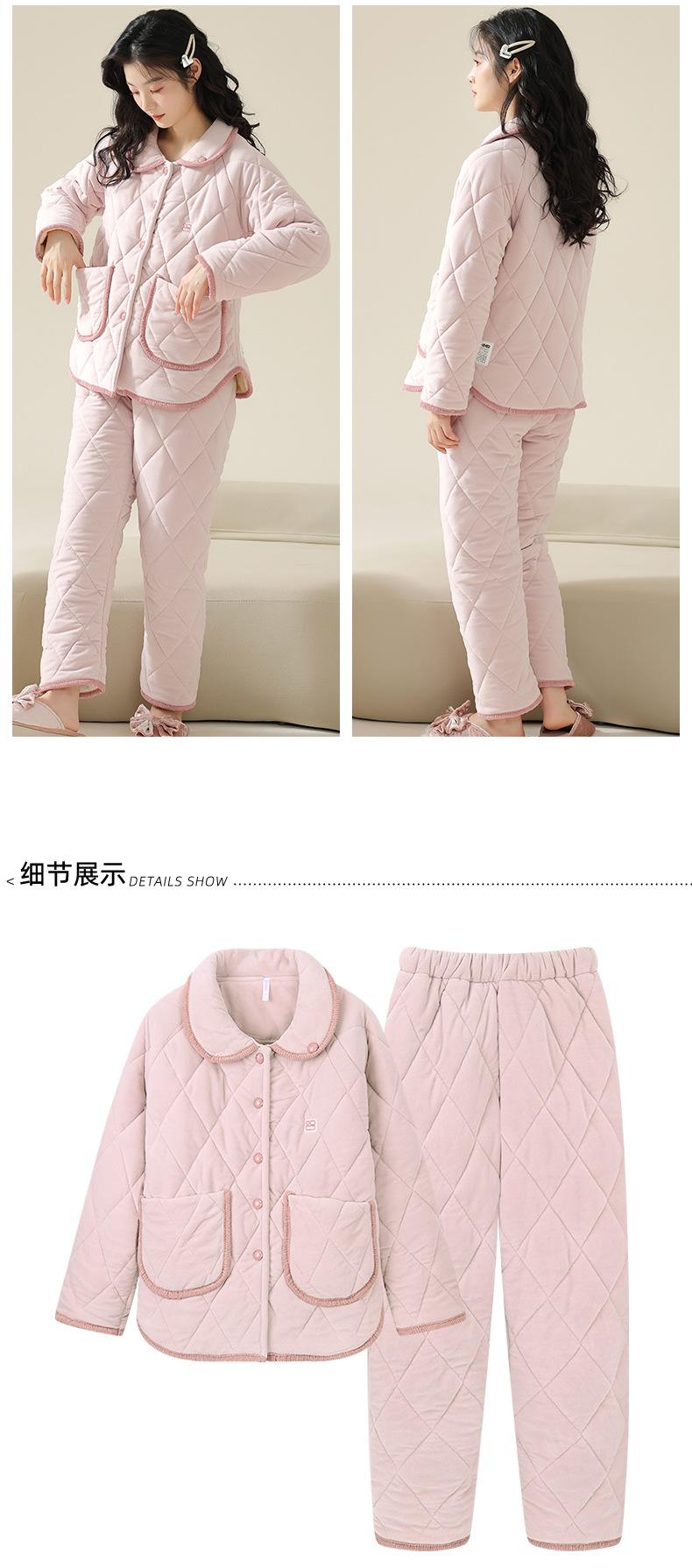 Pijamas de mujer cálidos con forro polar, de manga larga, de invierno, estilo dulce, ropa para el hogar, traje acolchado de terciopelo Bei Bei grueso de tres capas para mujer