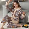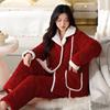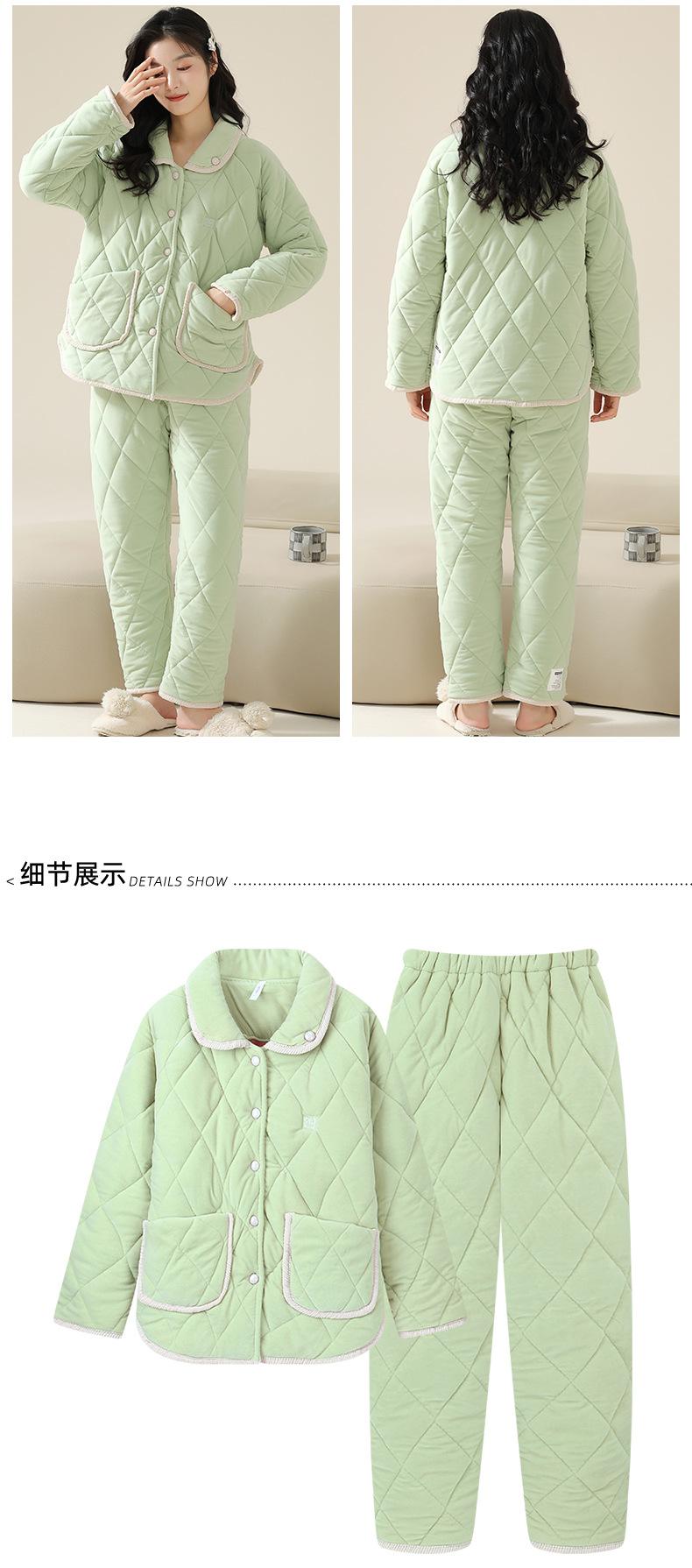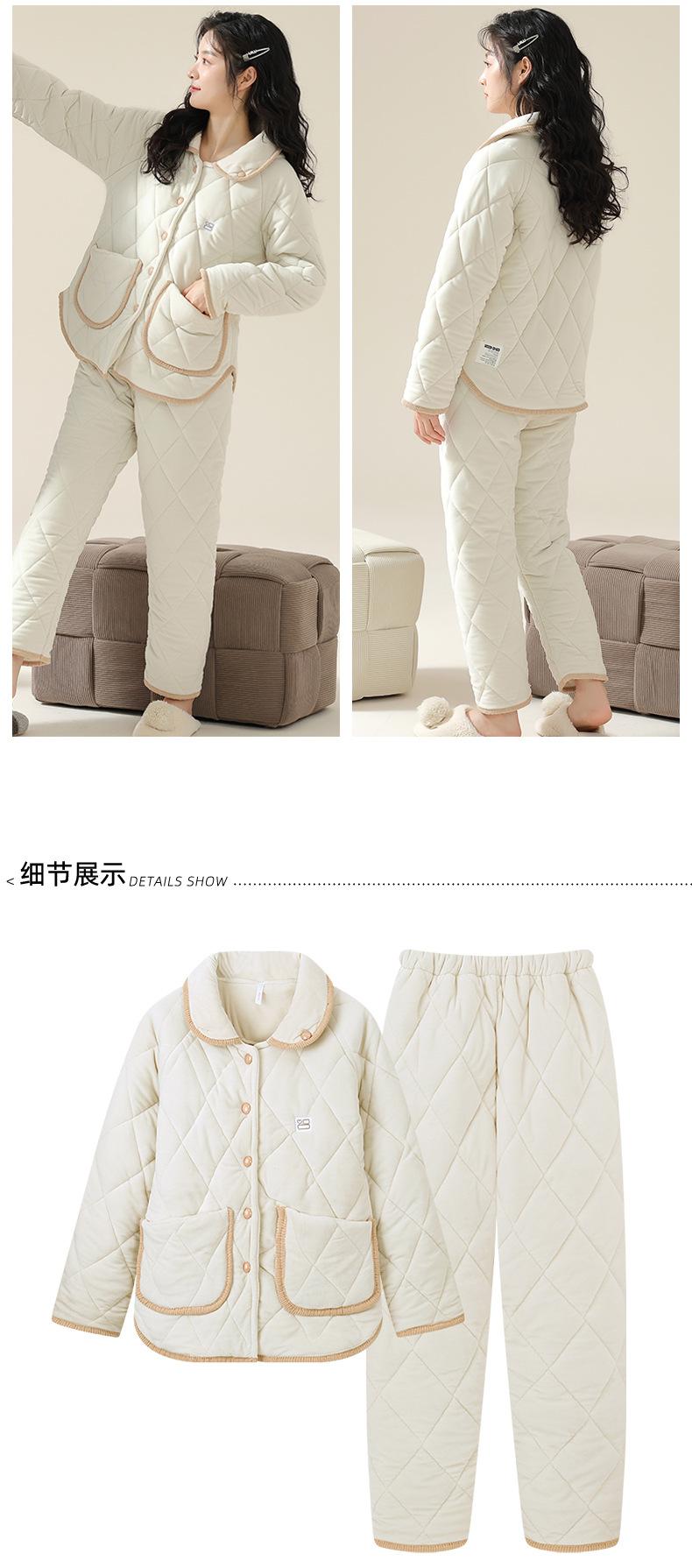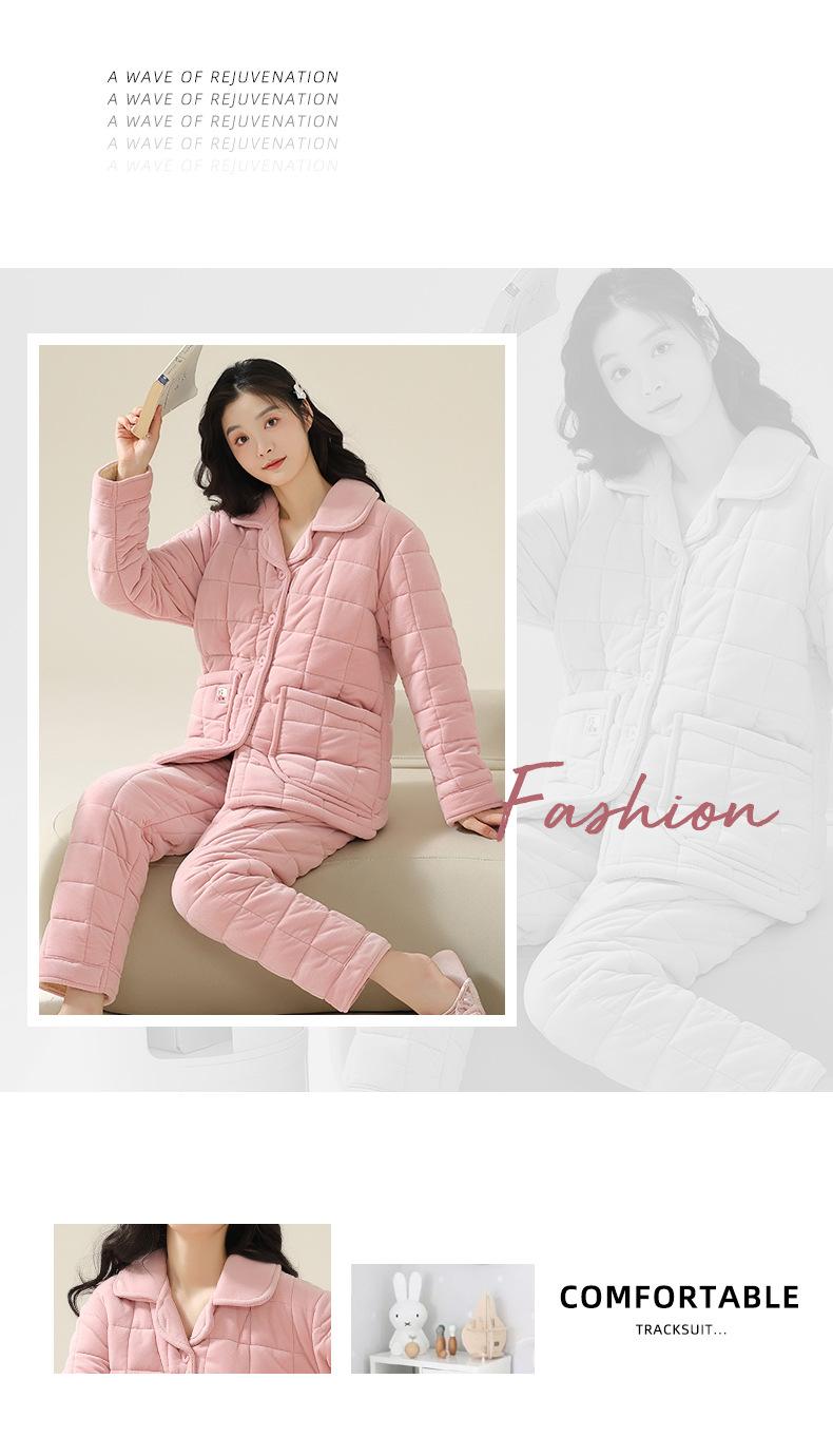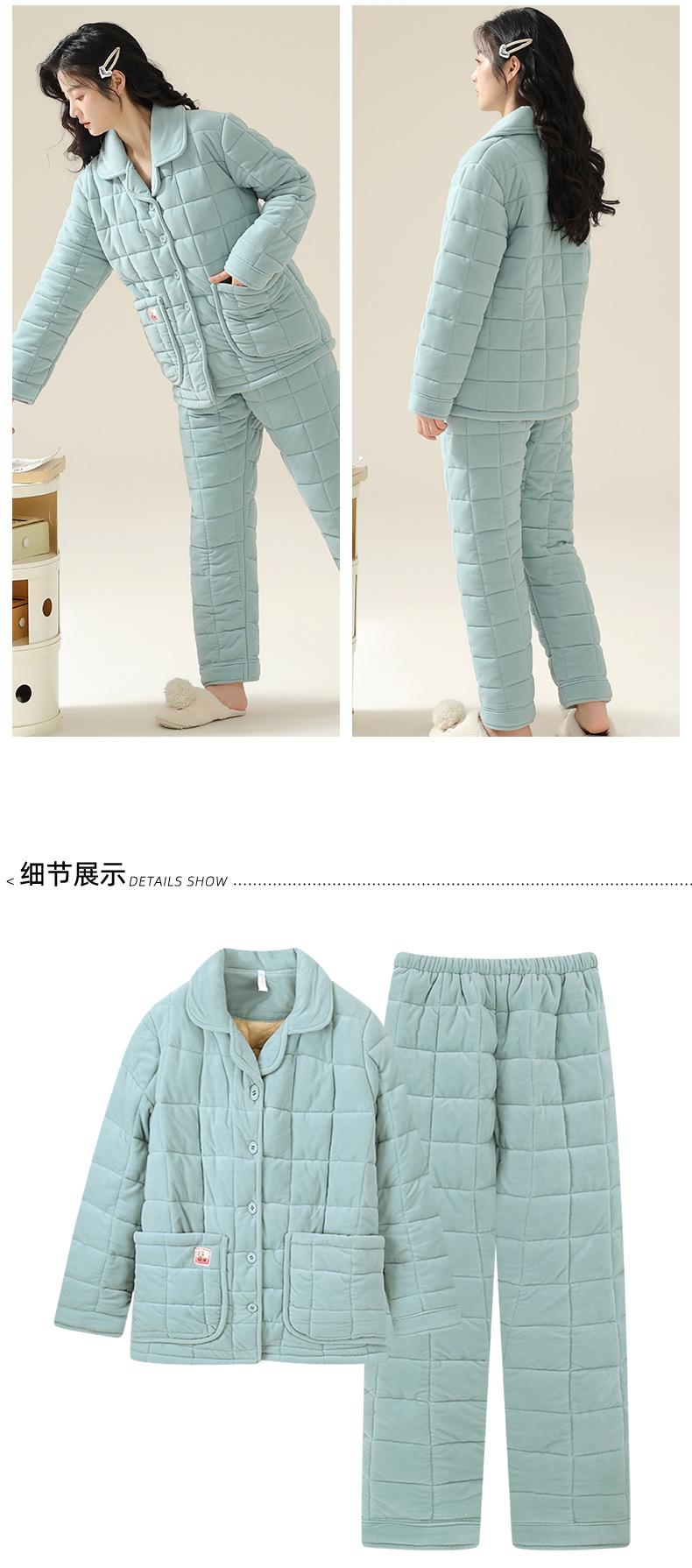 Pijamas de mujer cálidos con forro polar, de manga larga, de invierno, estilo dulce, ropa para el hogar, traje acolchado de terciopelo Bei Bei grueso de tres capas para mujer