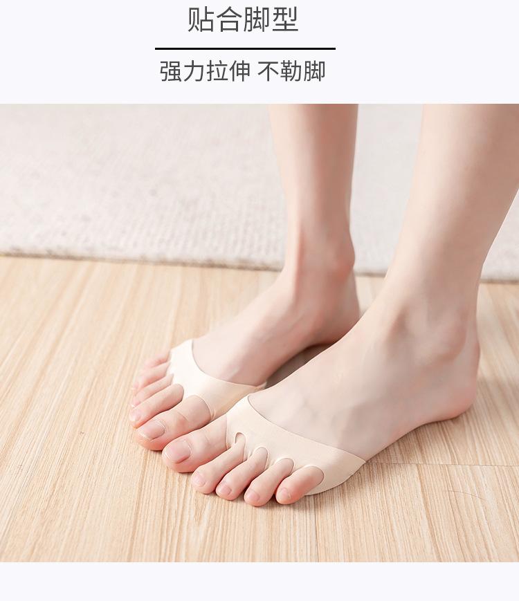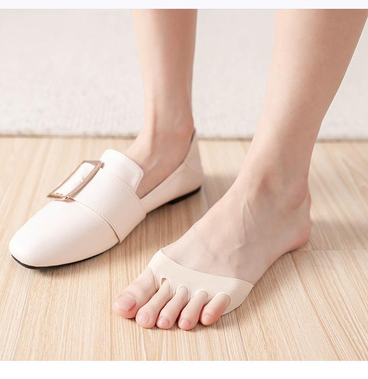 Calcetines invisibles de verano para mujer, con almohadillas para los dedos, antideslizantes, de cinco dedos y tacón alto.