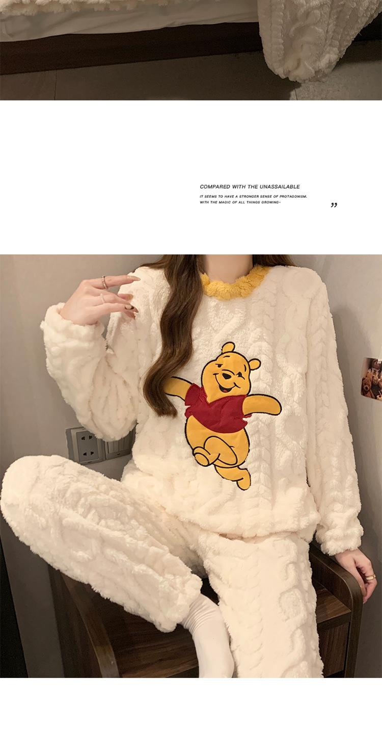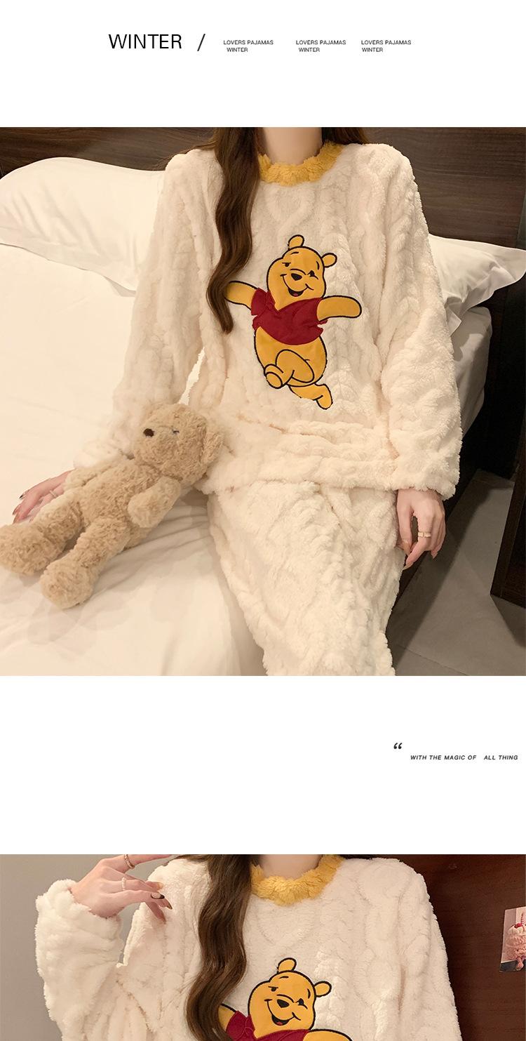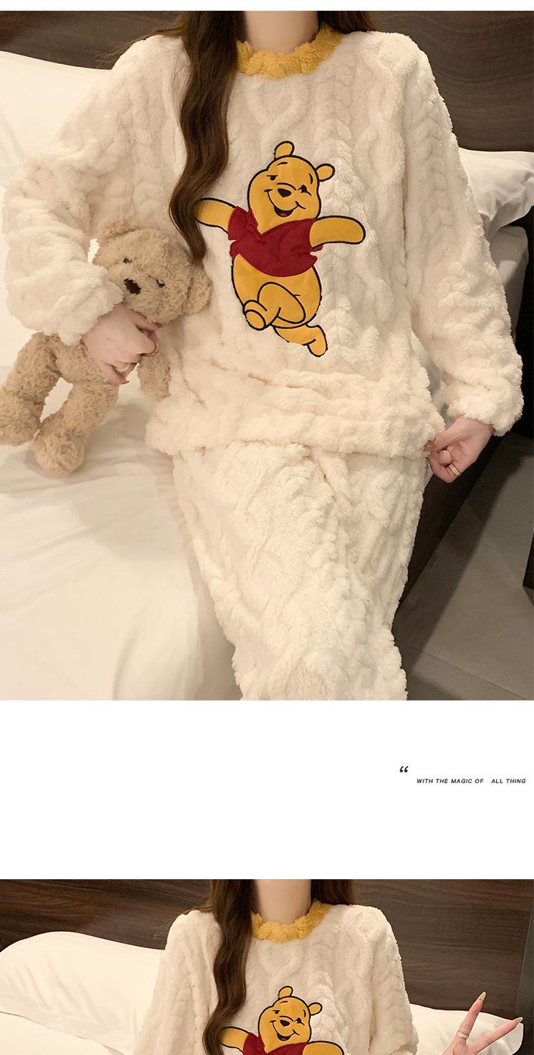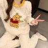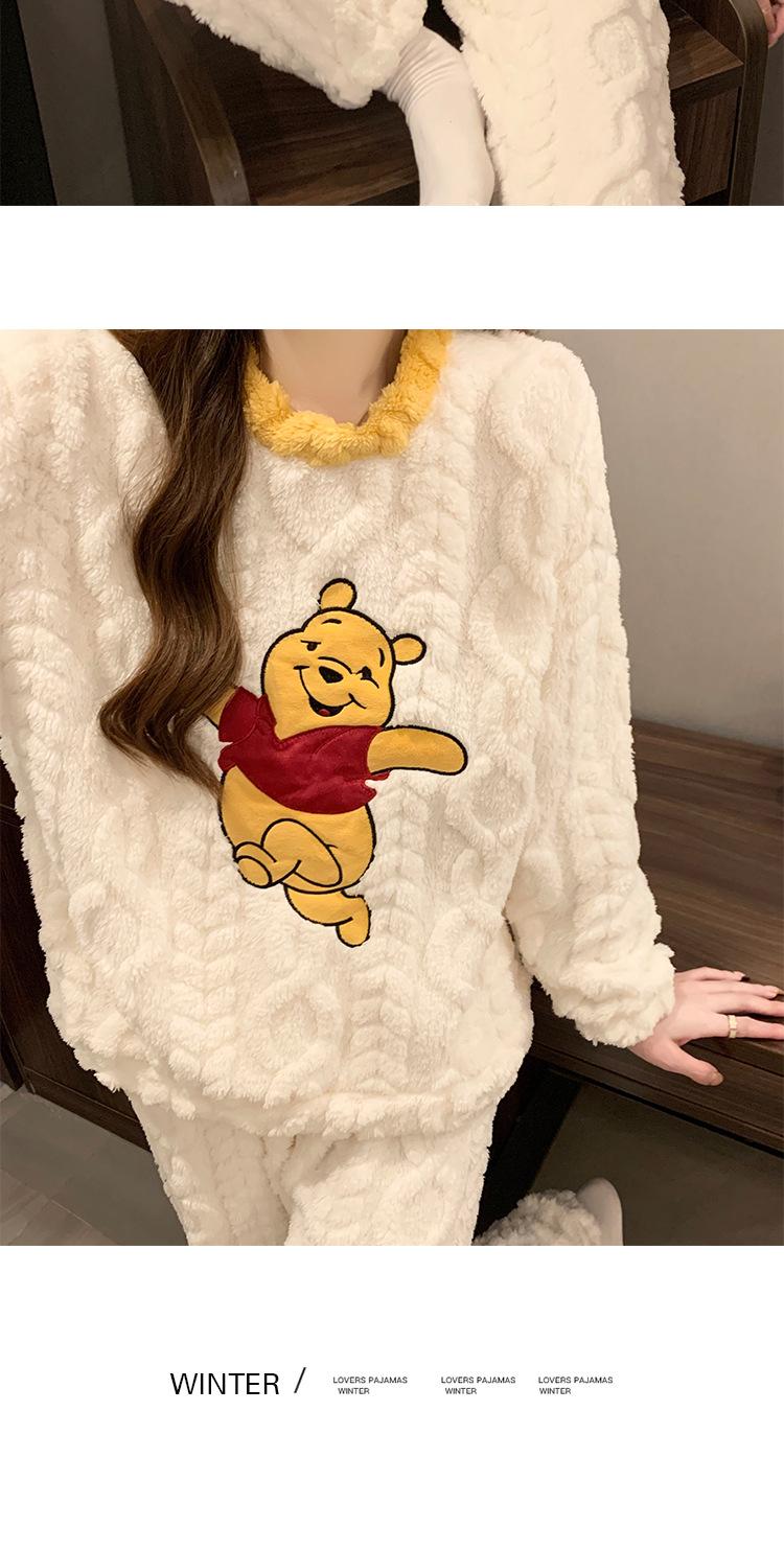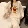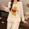 Pijamas de lana coral Winnie the Poole para mujer, otoño e invierno, forro polar grueso, cuello redondo dulce, franela, ropa para el hogar, traje al por mayor