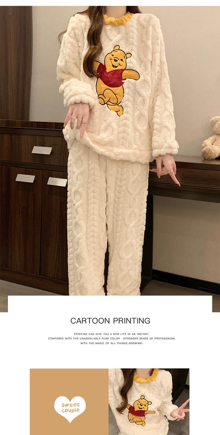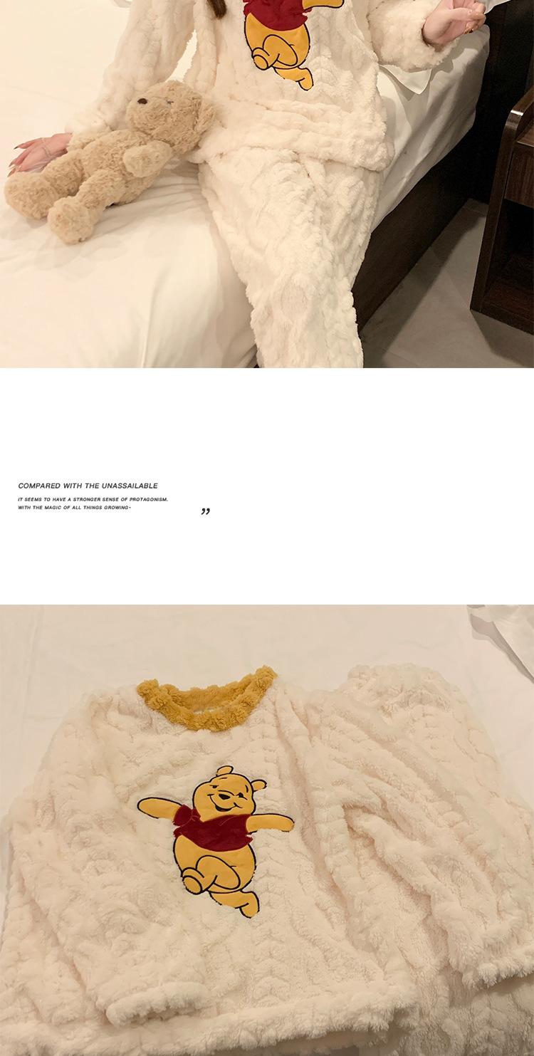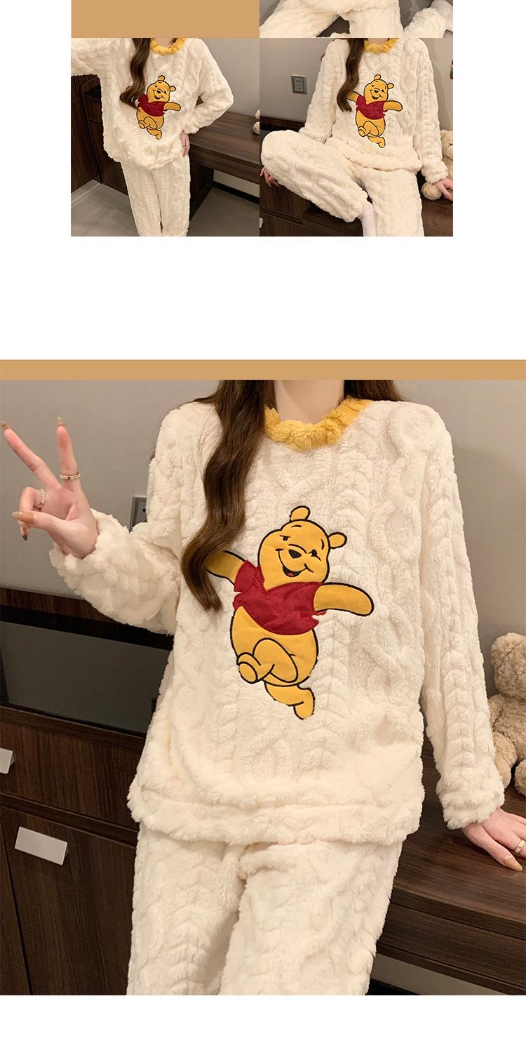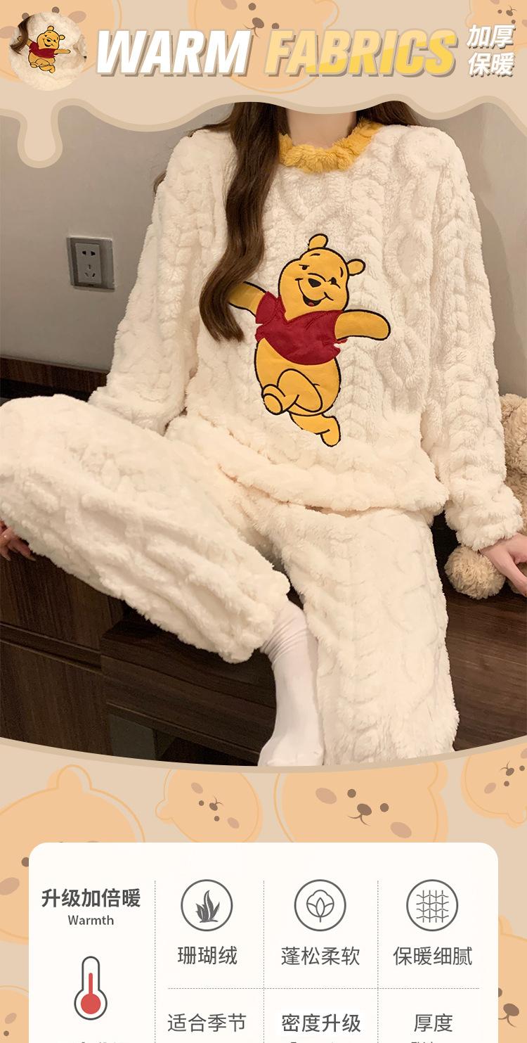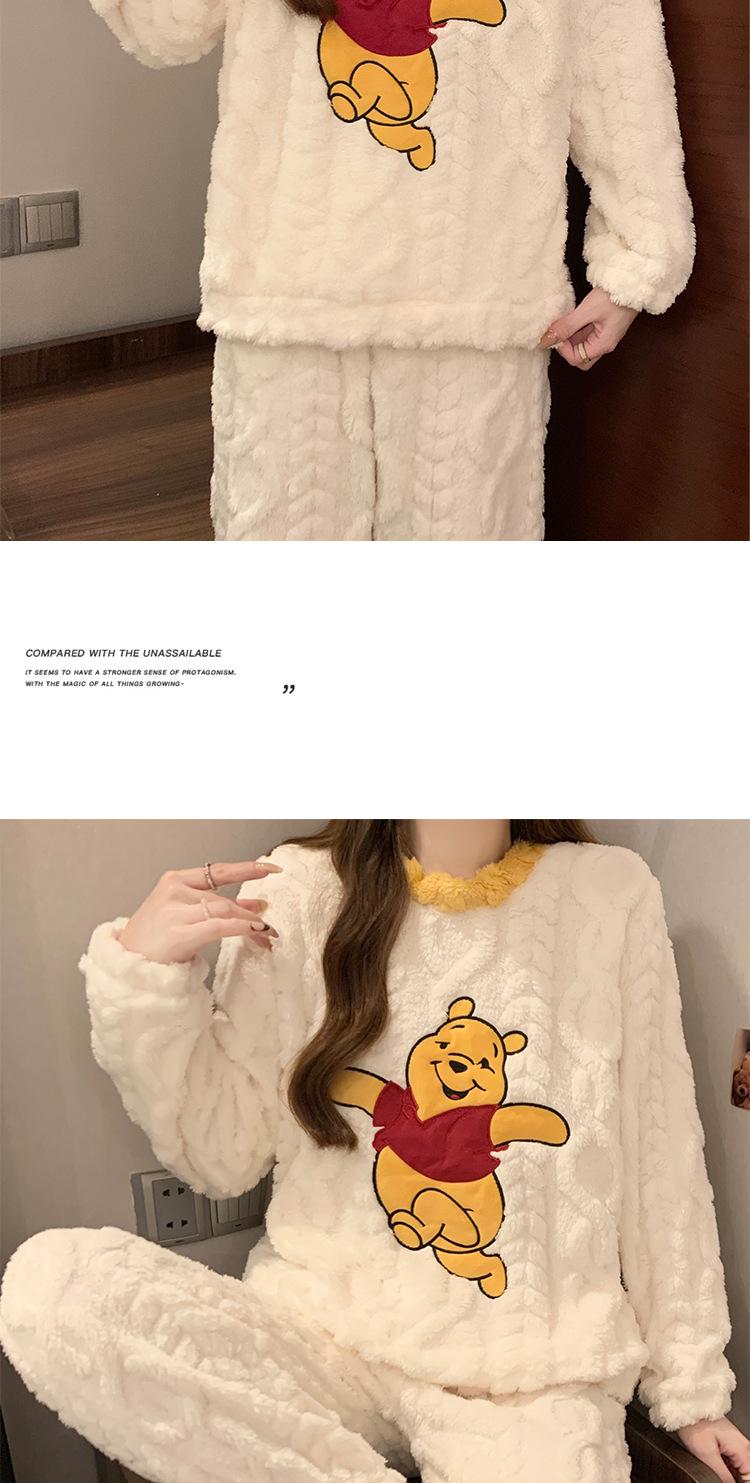 Pijamas de lana coral Winnie the Poole para mujer, otoño e invierno, forro polar grueso, cuello redondo dulce, franela, ropa para el hogar, traje al por mayor