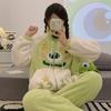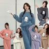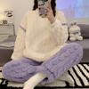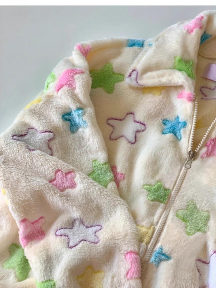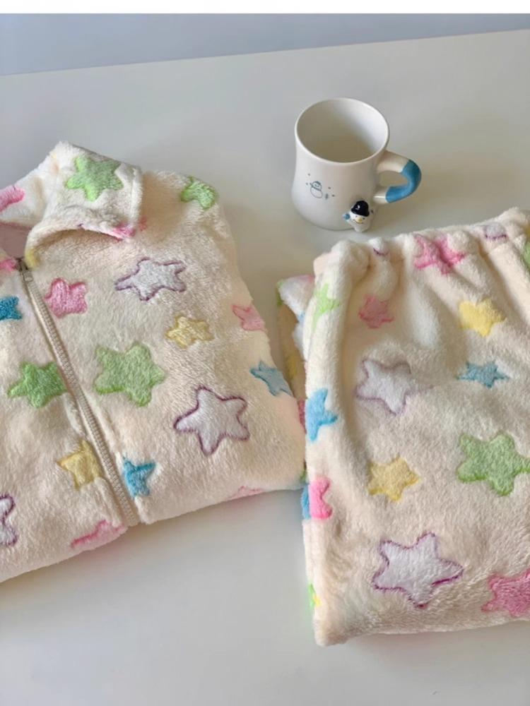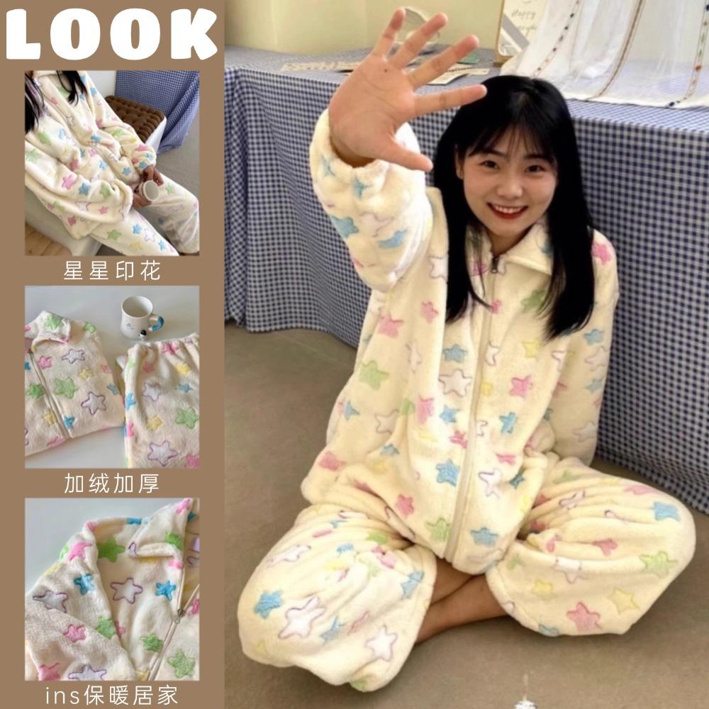 Pijama de manga larga de polar coral con estampado de estrellas de estilo coreano para mujer, nuevo traje de invierno de felpa gruesa con forro polar para el hogar, talla grande