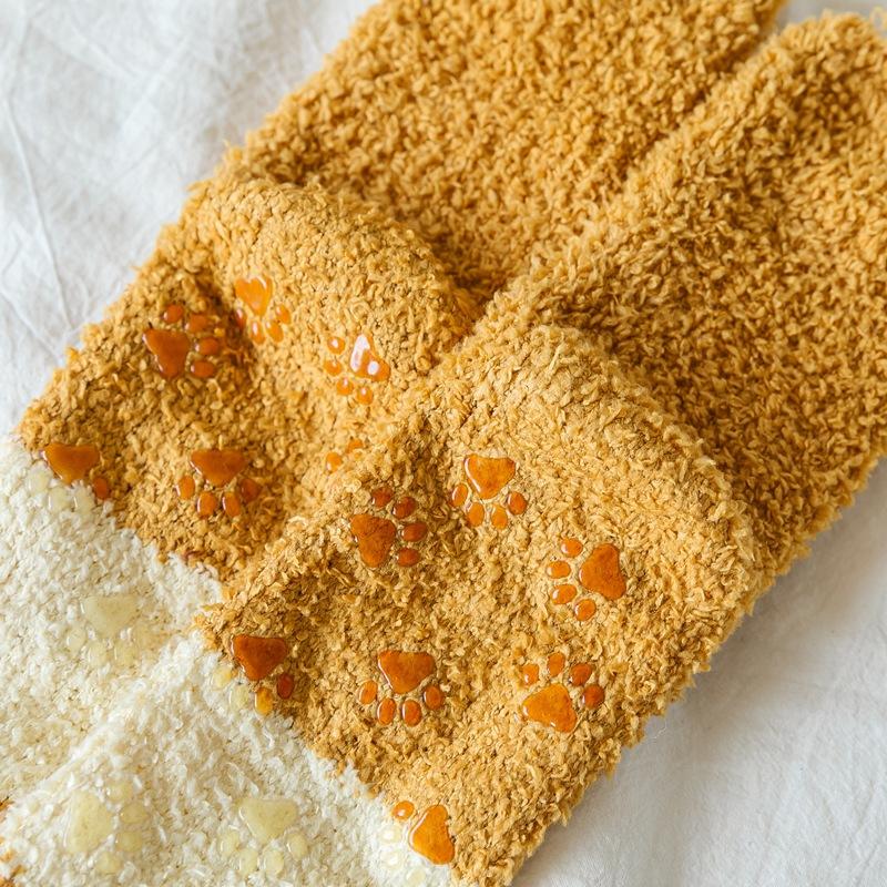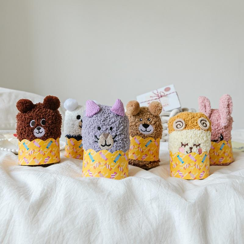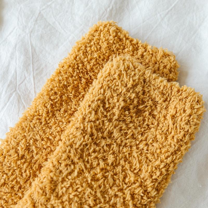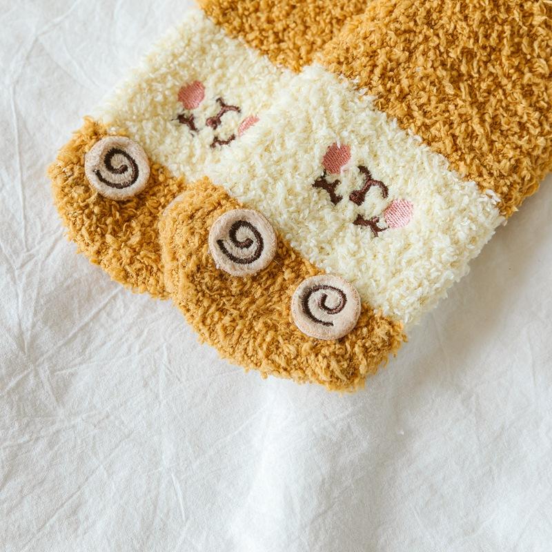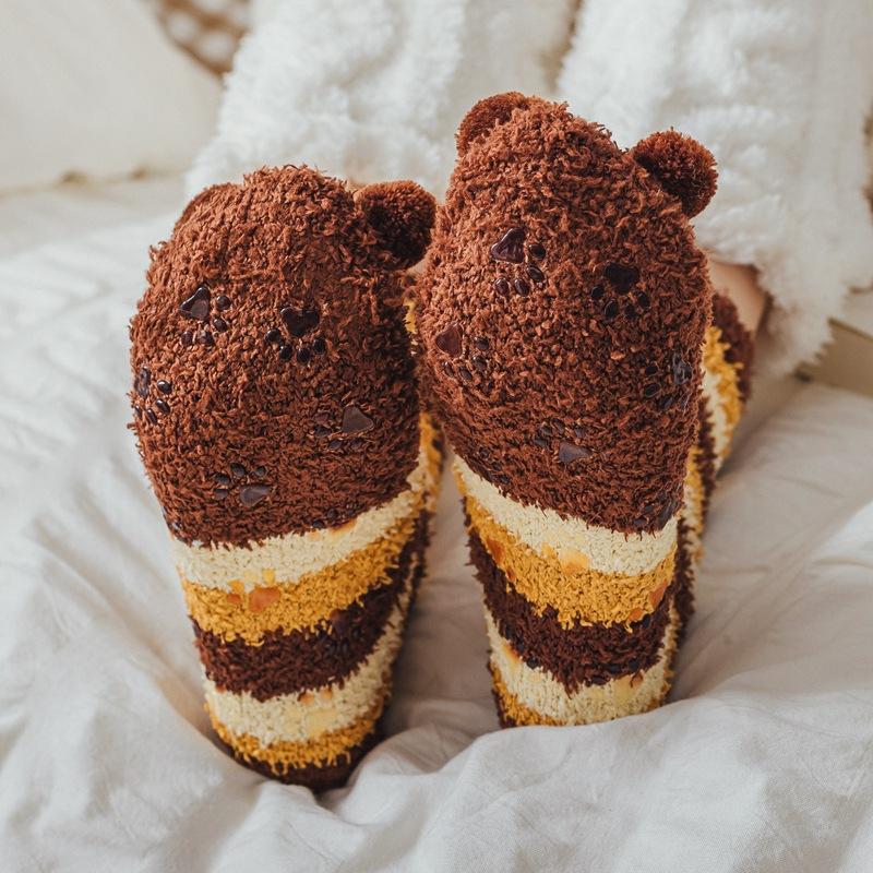 Calcetines de lana coral con dibujos animados para mujer, otoño e invierno, con forro polar, gruesos, cálidos y bonitos, para dormir en casa.